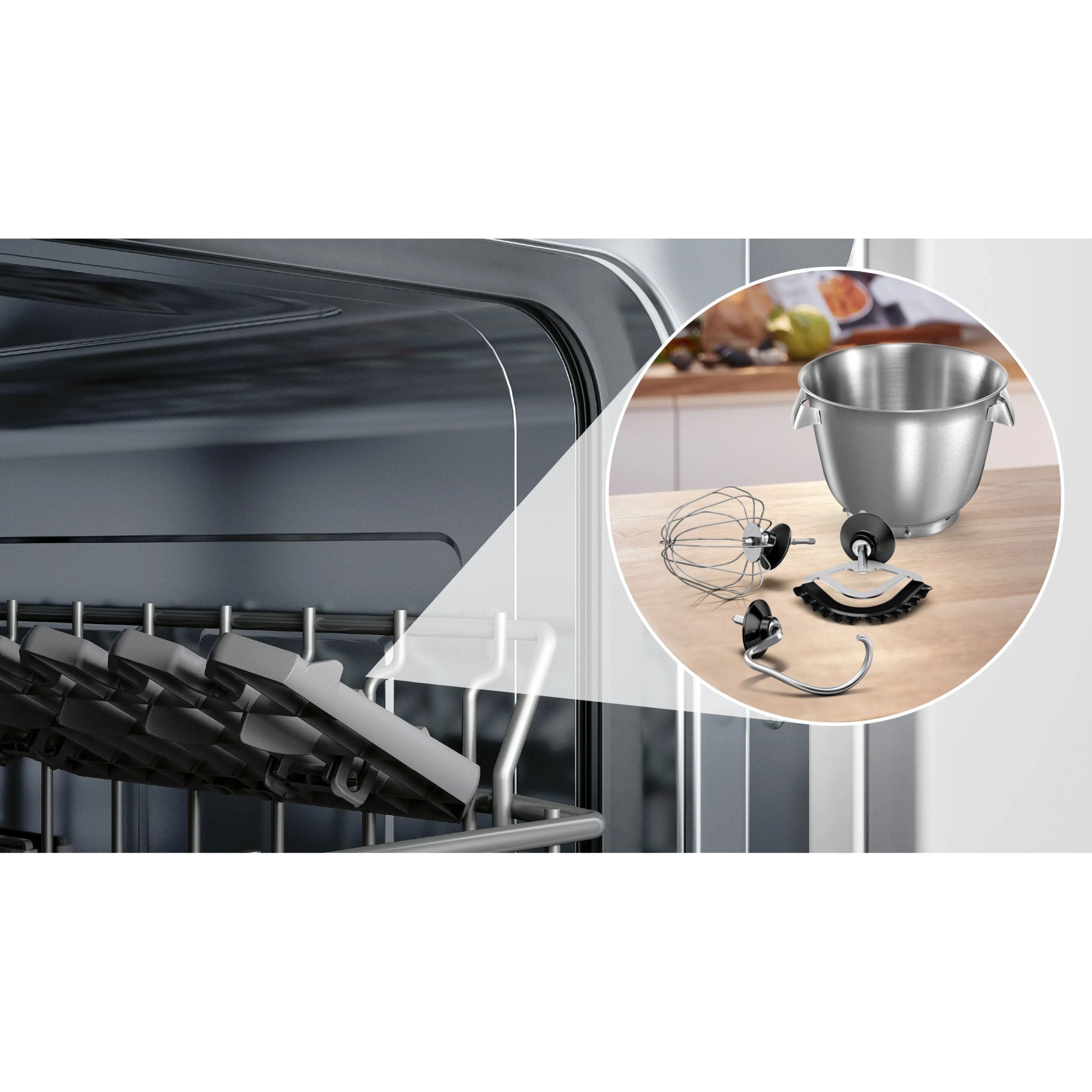 De obicei, curățarea robotului după prepararea aluatului durează destul de mult. Acum te bucuri de confort chiar și după prepararea aluaturilor. Cele mai multe accesorii sunt lavabile în mașina de spălat vase asigurându-ți mai mult confort în utilizare și mai multă economie de timp.