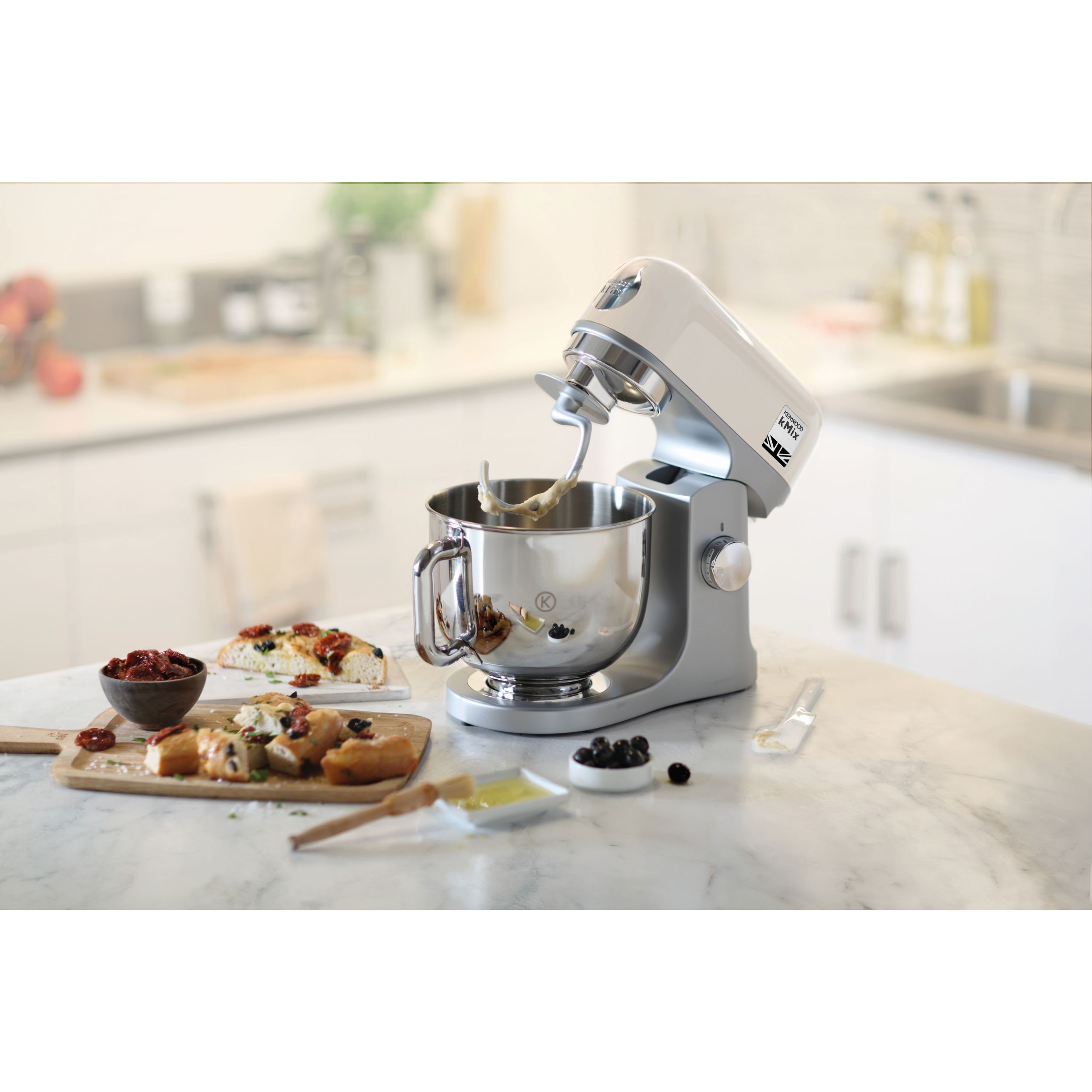 (EOL) Robot de bucătărie planetar KENWOOD kMix KMX750AAW - 0W20011426, 1000W (6 trepte și Turbo), Vas inox 5l, Set patiserie (tel 16 brațe, cârlig, paletă K), Soft Start, G9.26kg, All White