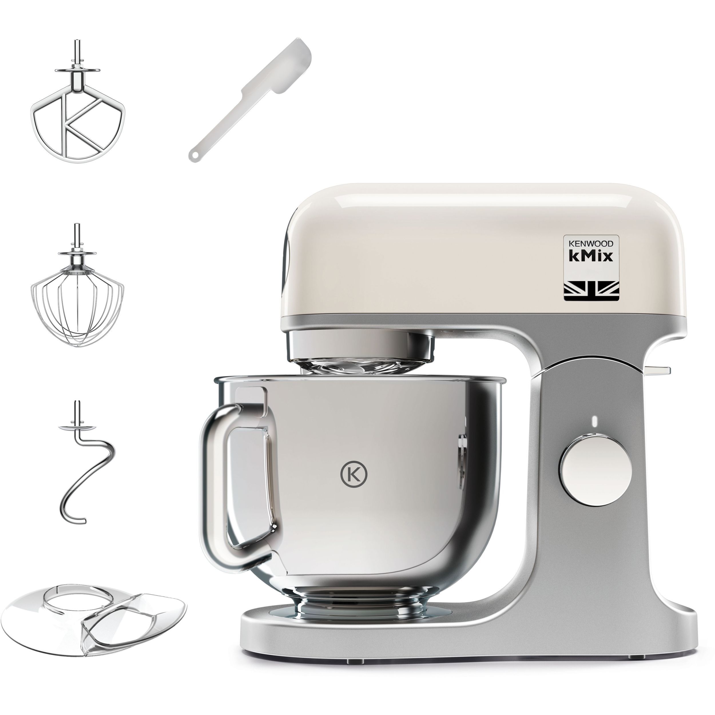 Robot de bucătărie planetar KENWOOD kMix KMX751ACR - 0W20011522, 1000W (6 trepte și Turbo), Vas inox 5l, Corp aluminiu turnat, Set patiserie (tel 16 brațe, cârlig, paletă K), G8.86kg, Calm Cream