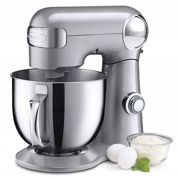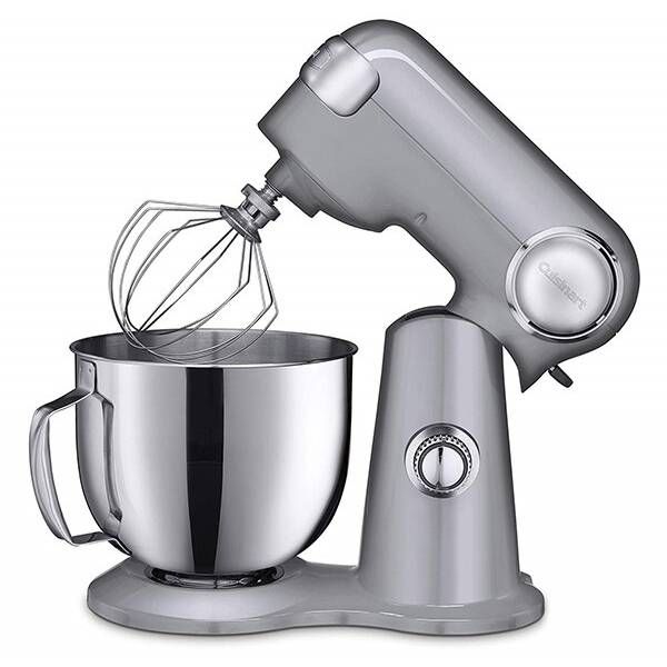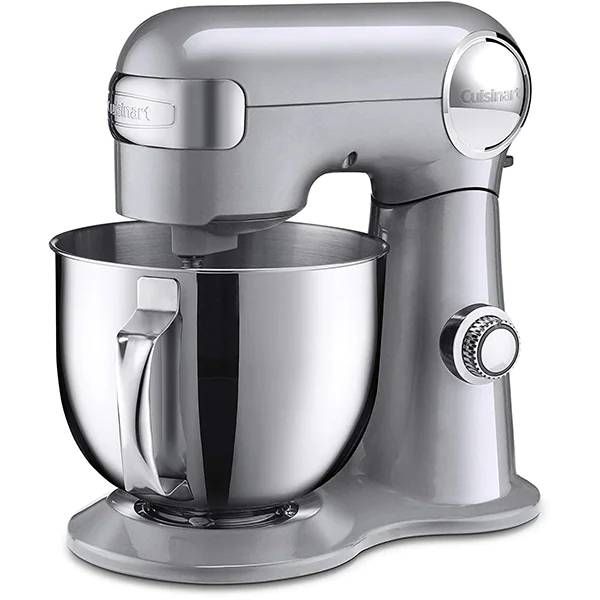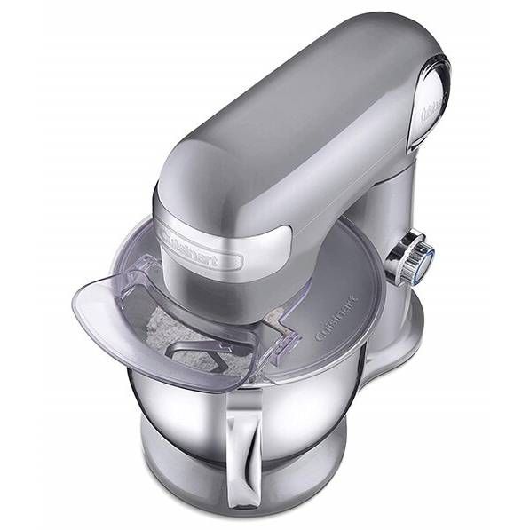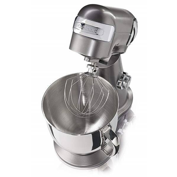 Mixer cu bol Cuisinart SM50E, 500W (12 trepte), Bol 5L din oțel inoxidabil, Corp din aluminiu turnat, Protecție anti-stropire, Paletă, Cârlig pentru aluat, Tel, Argintiu