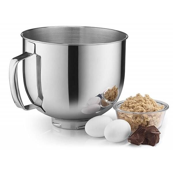 Bolul sau dispune de o capacitate generoasa de 5 litri si previne varsarea continutului in timpul functionarii cu ajutorul protectiei anti-stropiredin dotare. -Mixerul vine impreuna cu tot echipamentul necesar, avand inclus in pachet un tel, o paleta si un carlig pentru aluat.