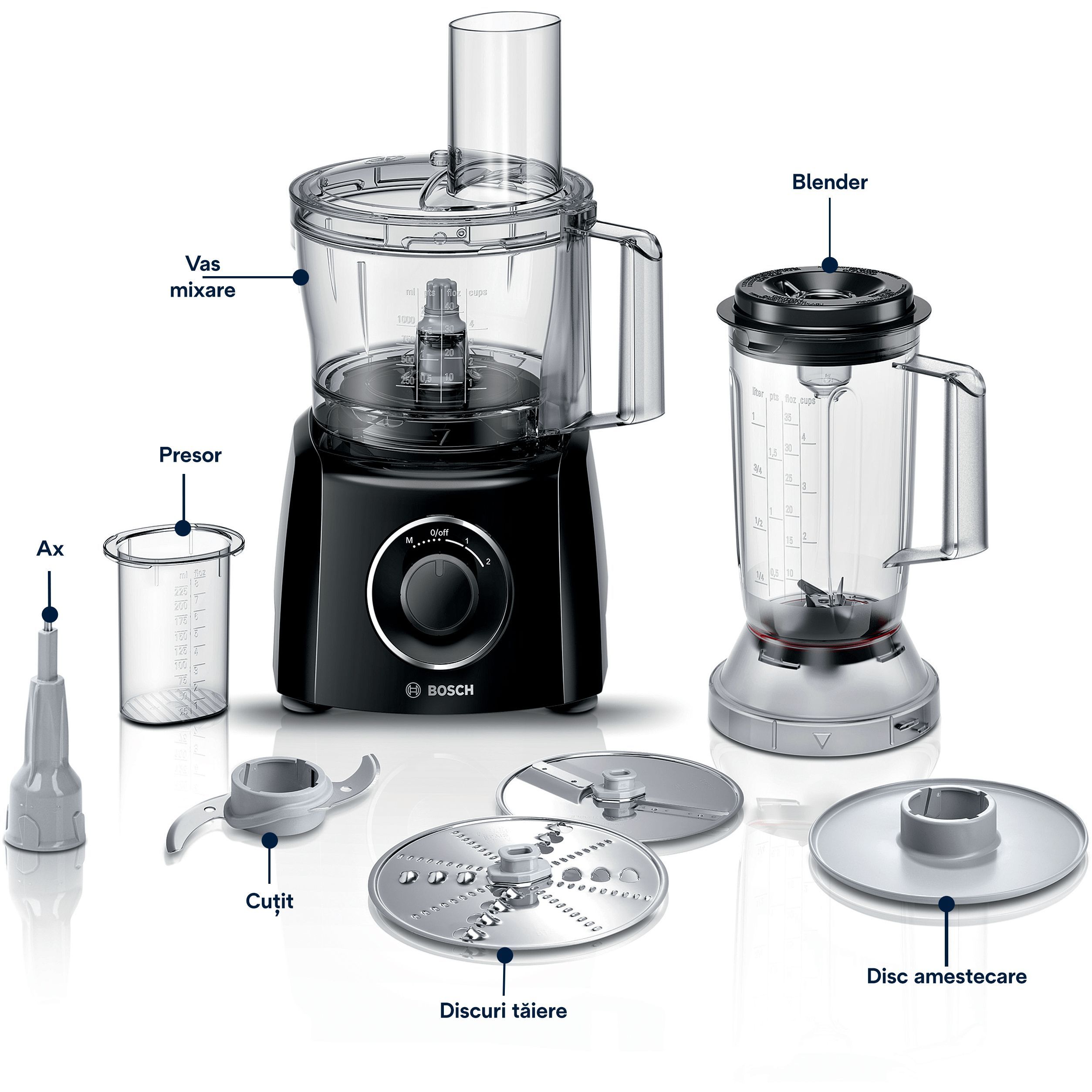 - Peste 30 de funcţii: tocare, răzuire, mixare şi multe altele – datorită accesoriilor versatile, precum cuţitul multifuncţional din oţel inoxidabil şi cuţitul MultiLevel6;