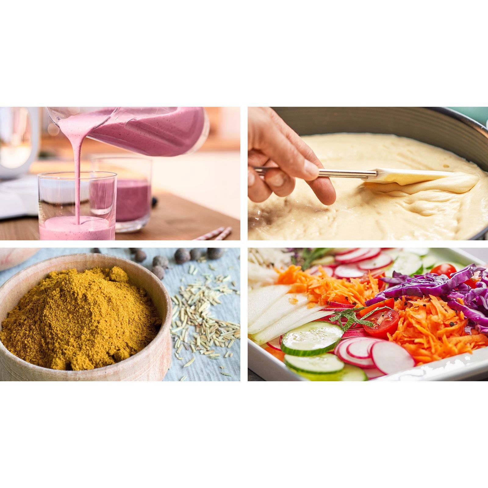 Cauți un aparat versatil care să înlocuiască diferite ustensile de bucătărie? Răzuiește legumele sau toacă fructele rapid, procesează aluaturi ușoare, prepară un smoothie delicios, toacă ceapă, răzuiește morcovi, macină boabe de cafea sau toacă ierburi aromatice. Cu ajutorul accesoriilor incluse, robotul de bucătărie este alegerea potrivită pentru o mulțime de preparate.