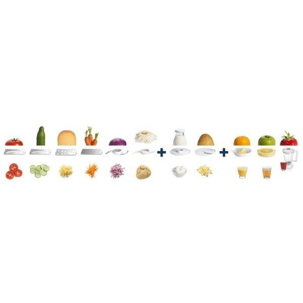 Peste 35 de funcții de tocare, frământare etc. Un singur dispozitiv care te ajută să pregătești compoziția pentru preparatele tale? Indiferent că toci ceapă sau fructe, răzuiești legume sau amesteci smoothie-uri, datorită unei game largi de accesorii precum cuțitul universal din oțel inoxidabil sau cuțitul MultiLevel6, compoziția ta va fi pregătită rapid.