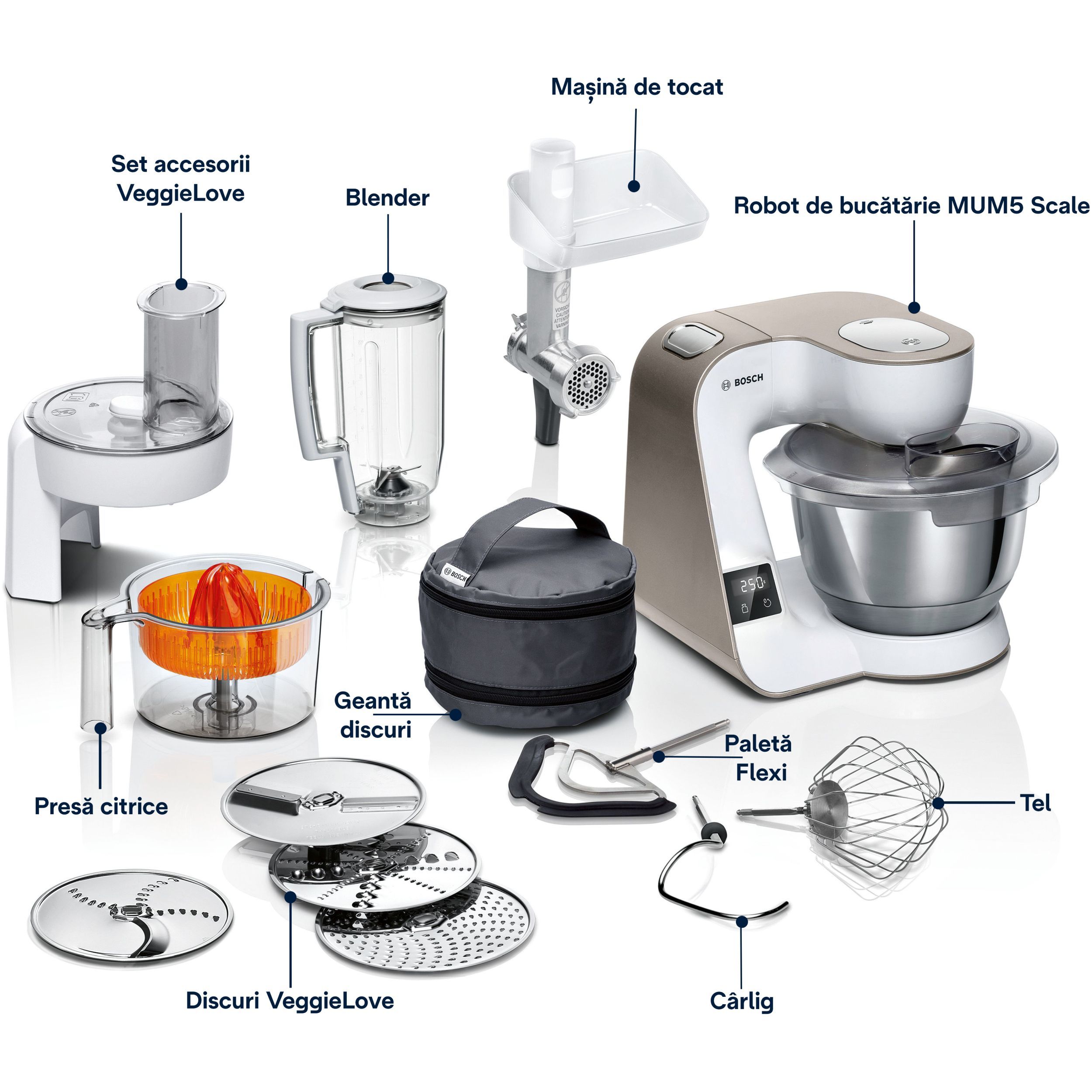 Fiecare are anumite preferințe în ceea ce privește pregătirea diferitelor compoziții. Dacă nu este deja inclus accesoriul de care ai nevoie, poți alege dintr-o gamă largă de accesorii opționale precum cel de înghețată, râșniță, accesoriu pentru fursecuri, mașină de tocat carne, Cube Cutter și altele. BOSCH are accesoriile potrivite nevoilor tale.
