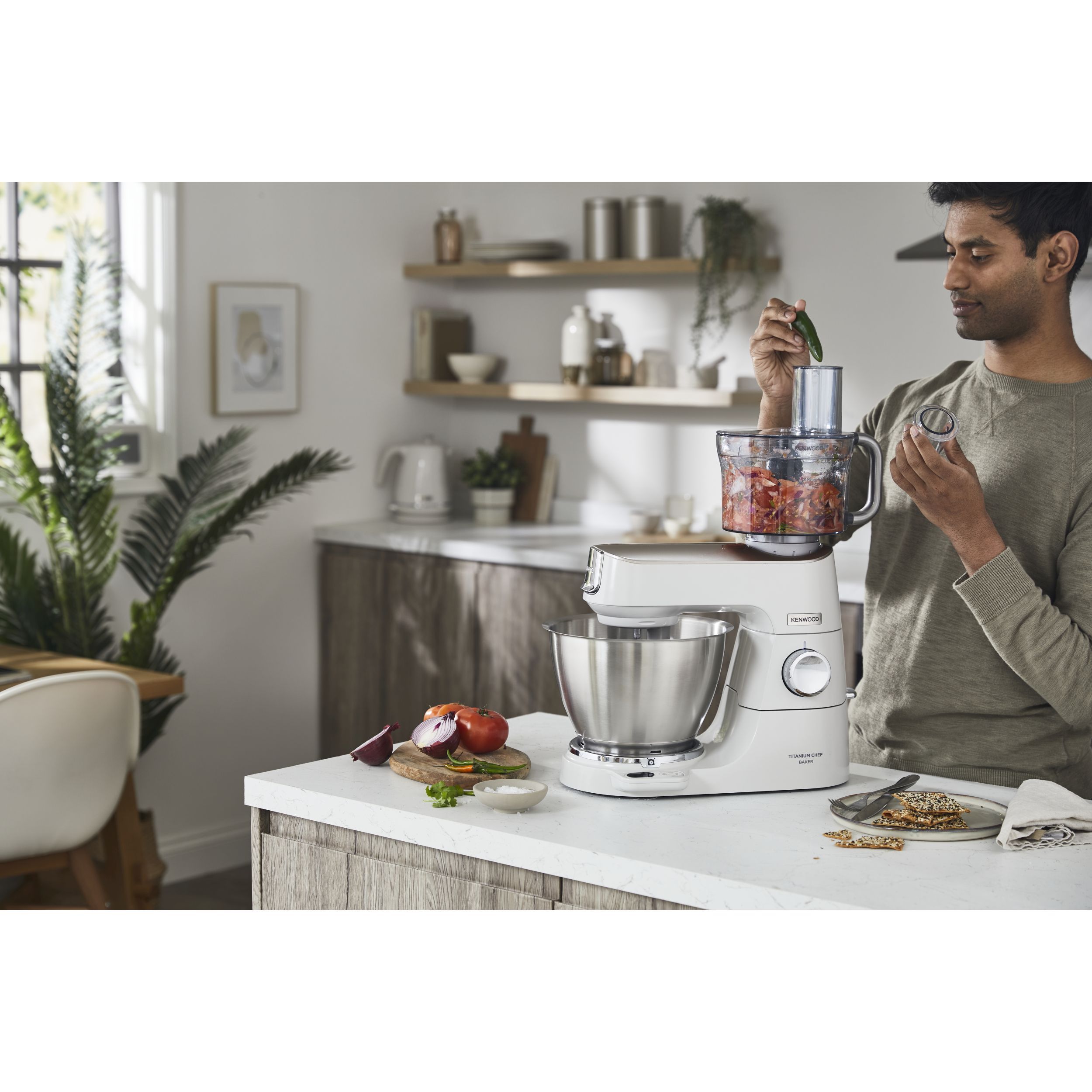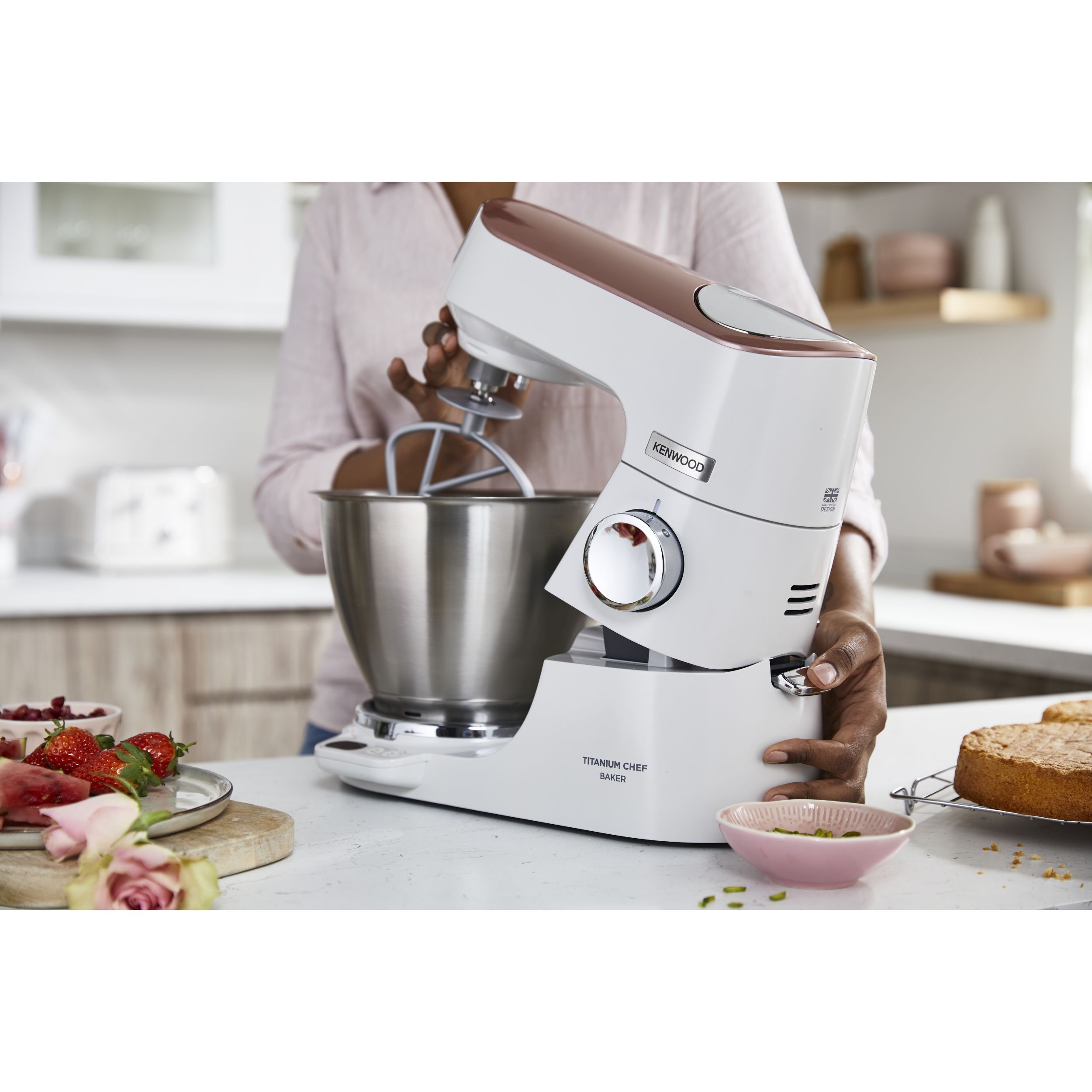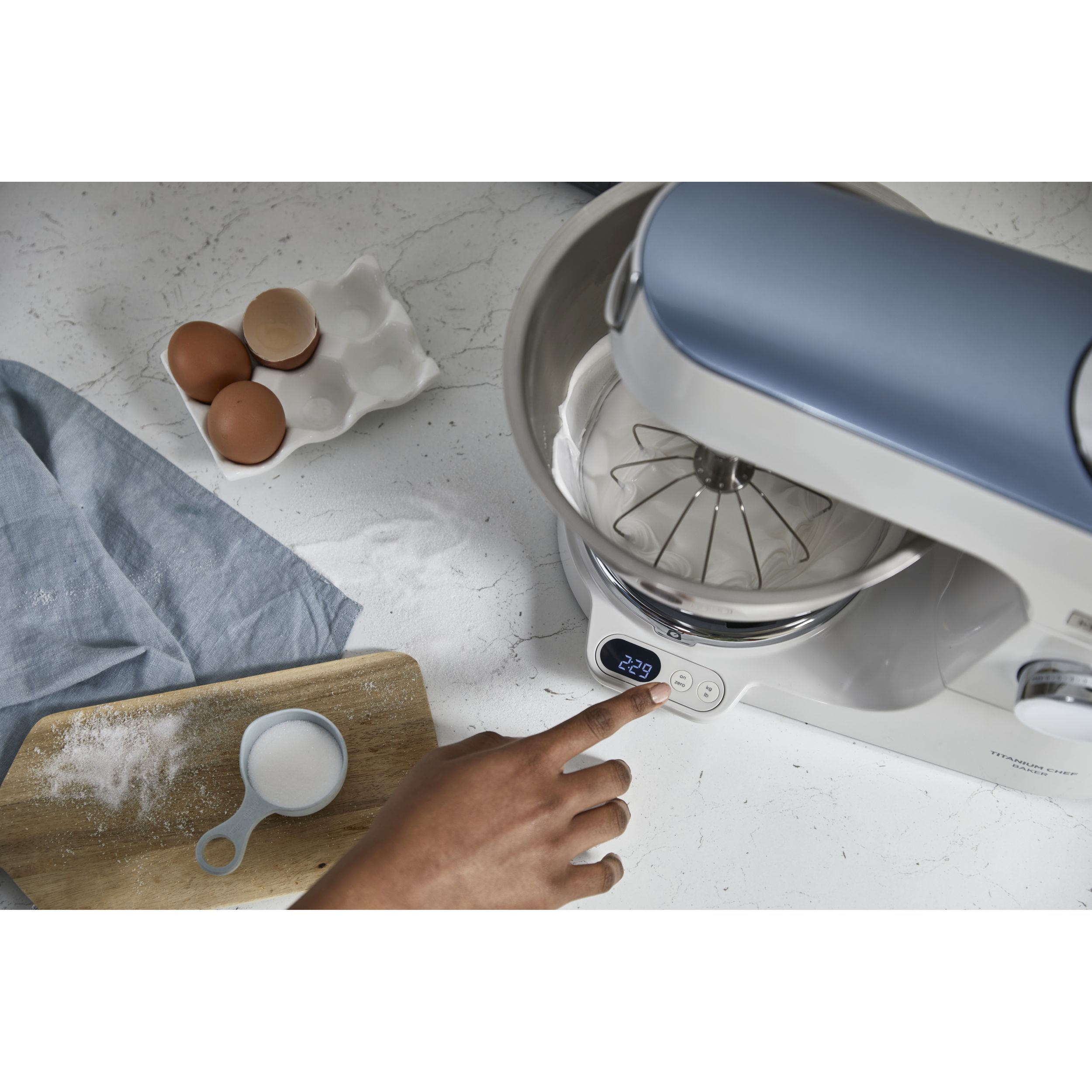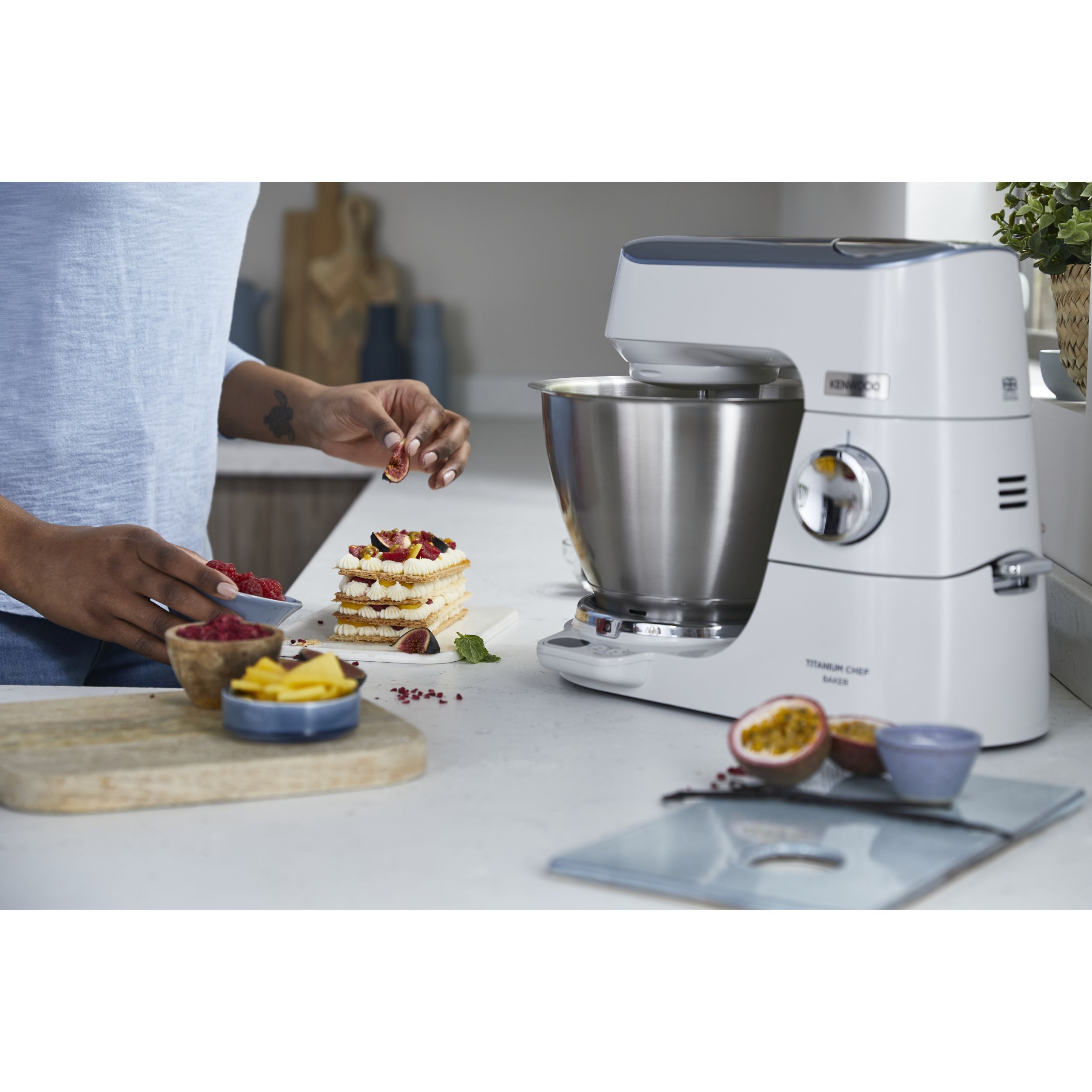 Precizia gătitului începe cu robotul de bucătărie KENWOOD Titanium Chef Baker. Gătitul devine o plăcere neîntreruptă atunci când cântăriți ingredientele direct în vas sau folosiți o funcție de pliere delicată pentru bezele sau mousse. În plus, vă puteți personaliza aparatul Chef Baker cu 8 culori diferite PopTops disponibile pentru achiziționare.