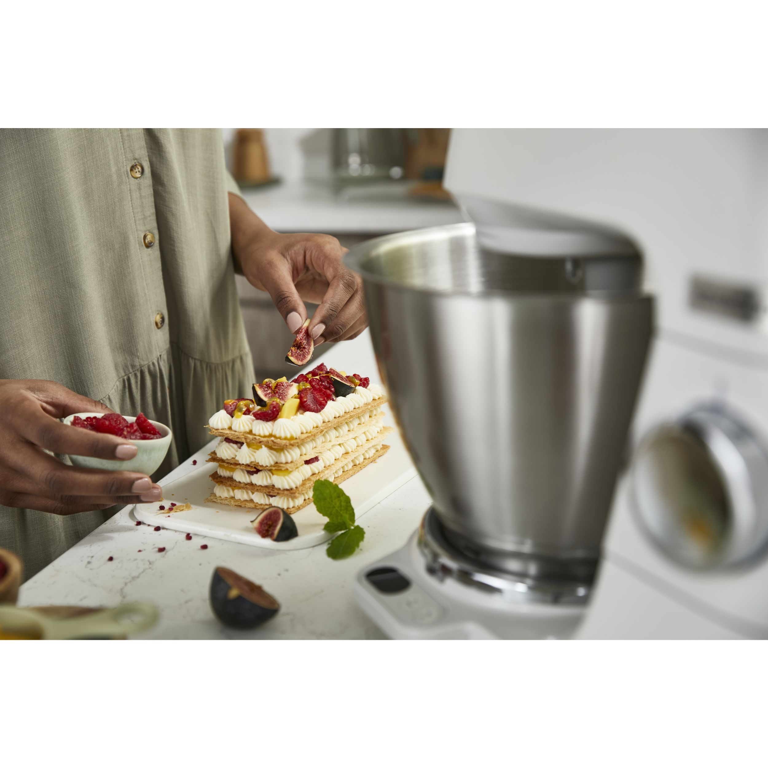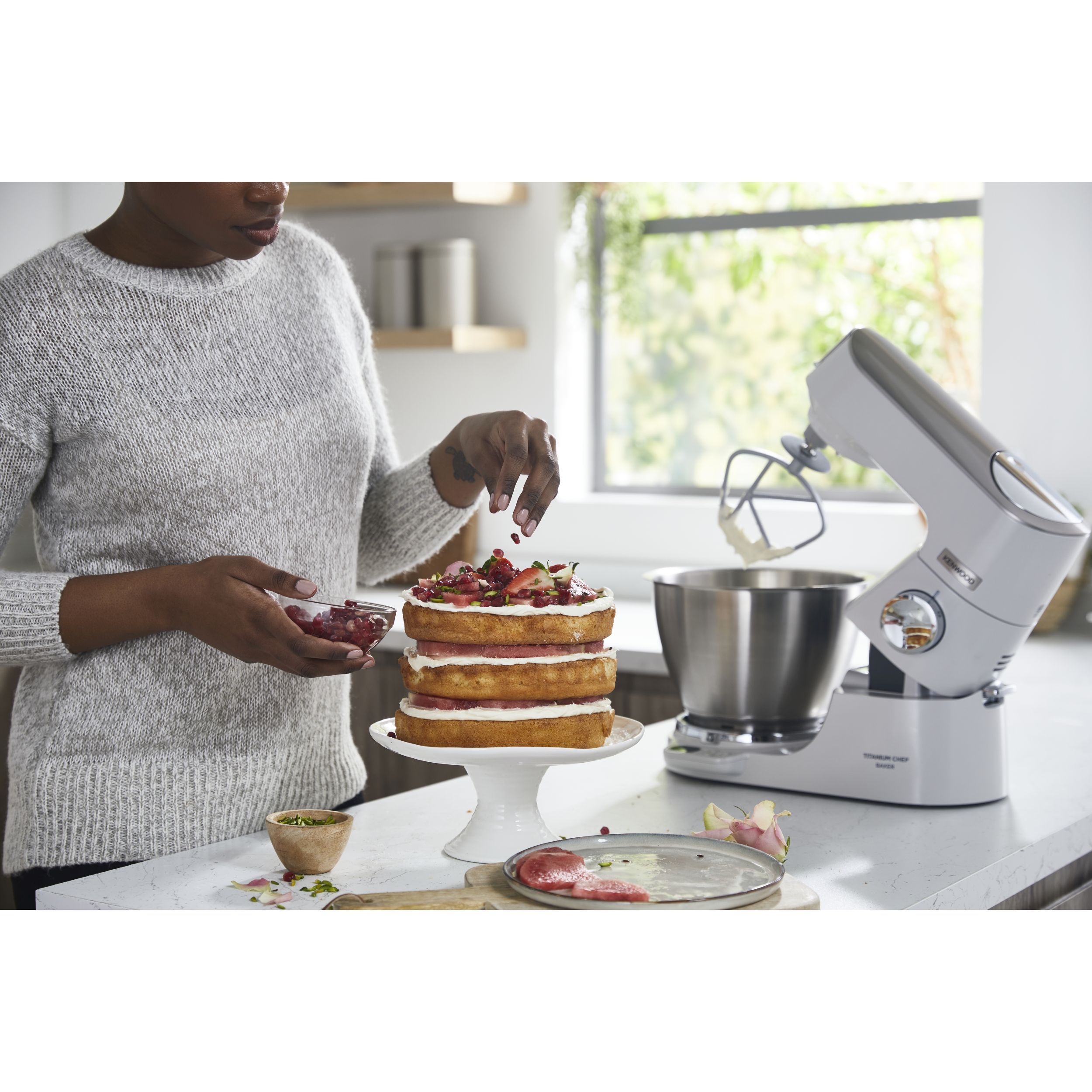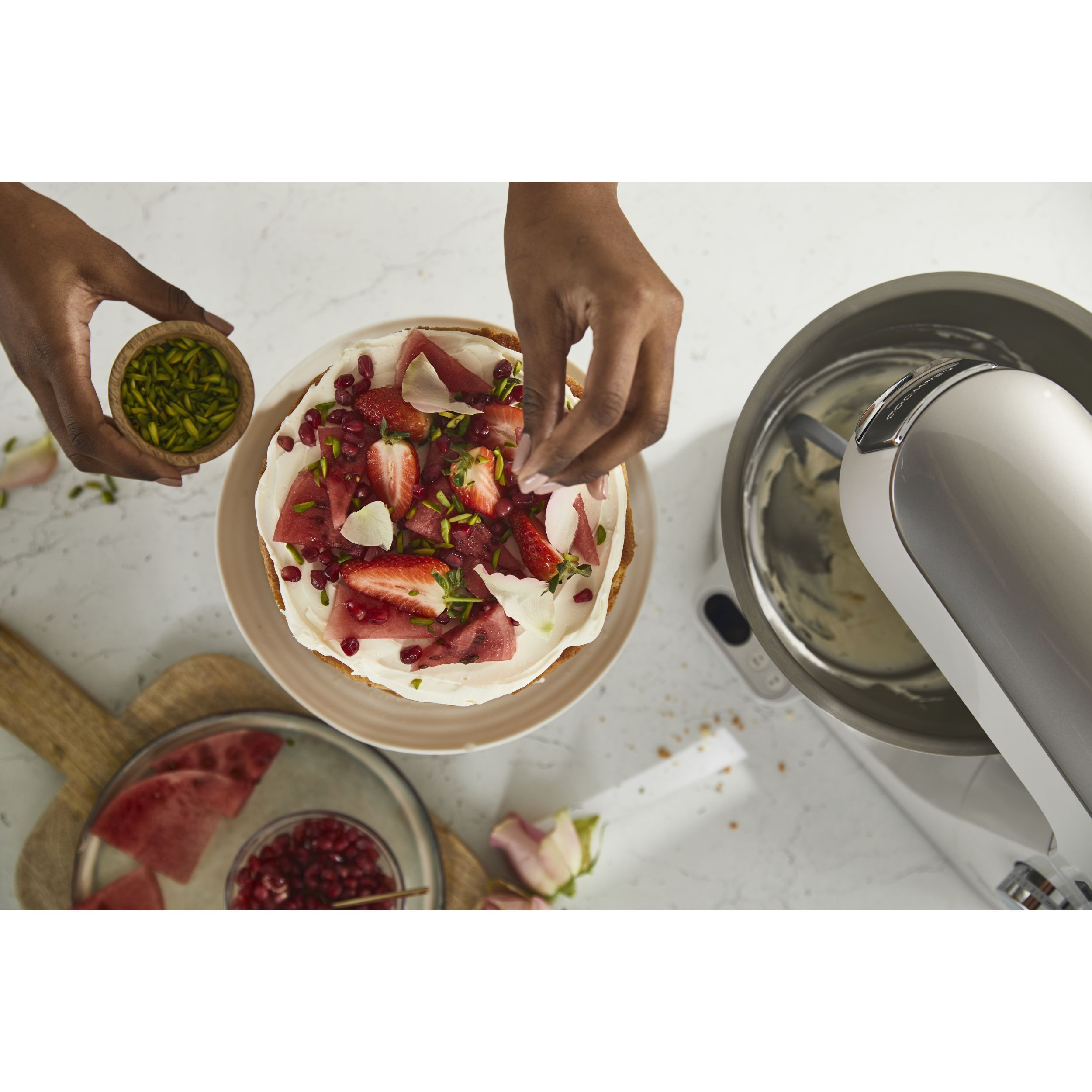 Precizia gătitului începe cu robotul de bucătărie KENWOOD Titanium Chef Baker. Gătitul devine o plăcere neîntreruptă atunci când cântăriți ingredientele direct în vas sau folosiți o funcție de pliere delicată pentru bezele sau mousse. În plus, vă puteți personaliza aparatul Chef Baker cu 8 culori diferite PopTops disponibile pentru achiziționare.