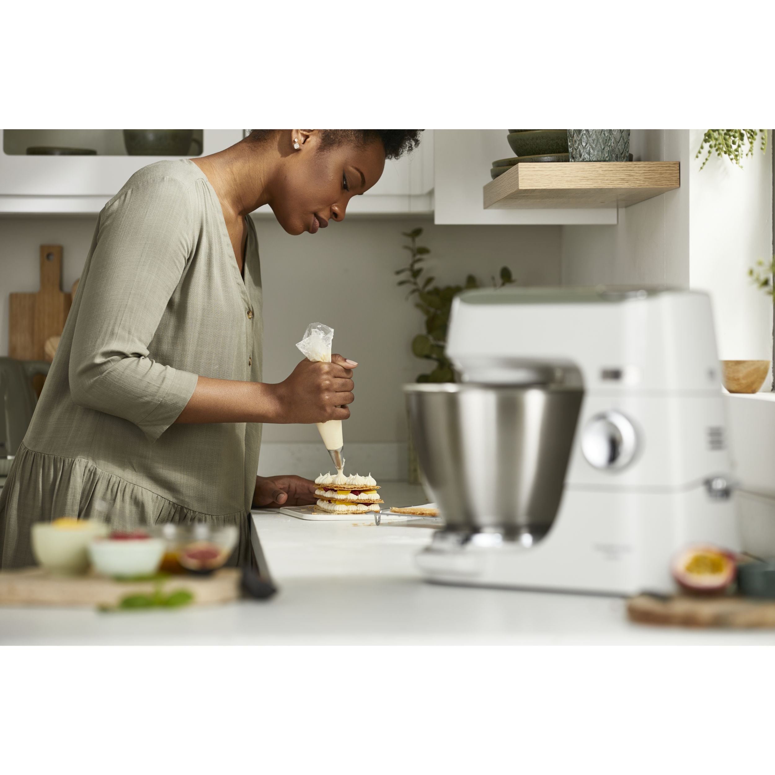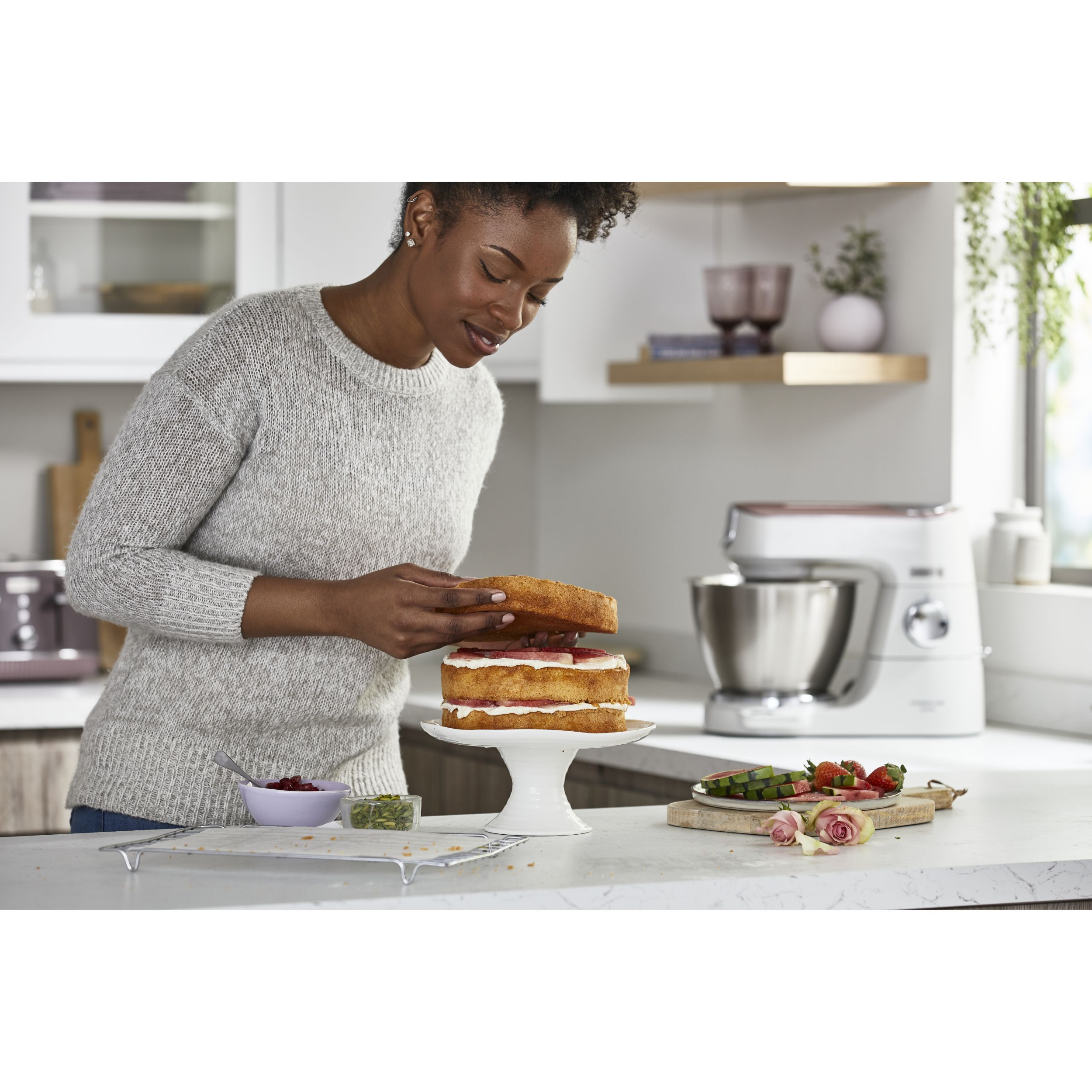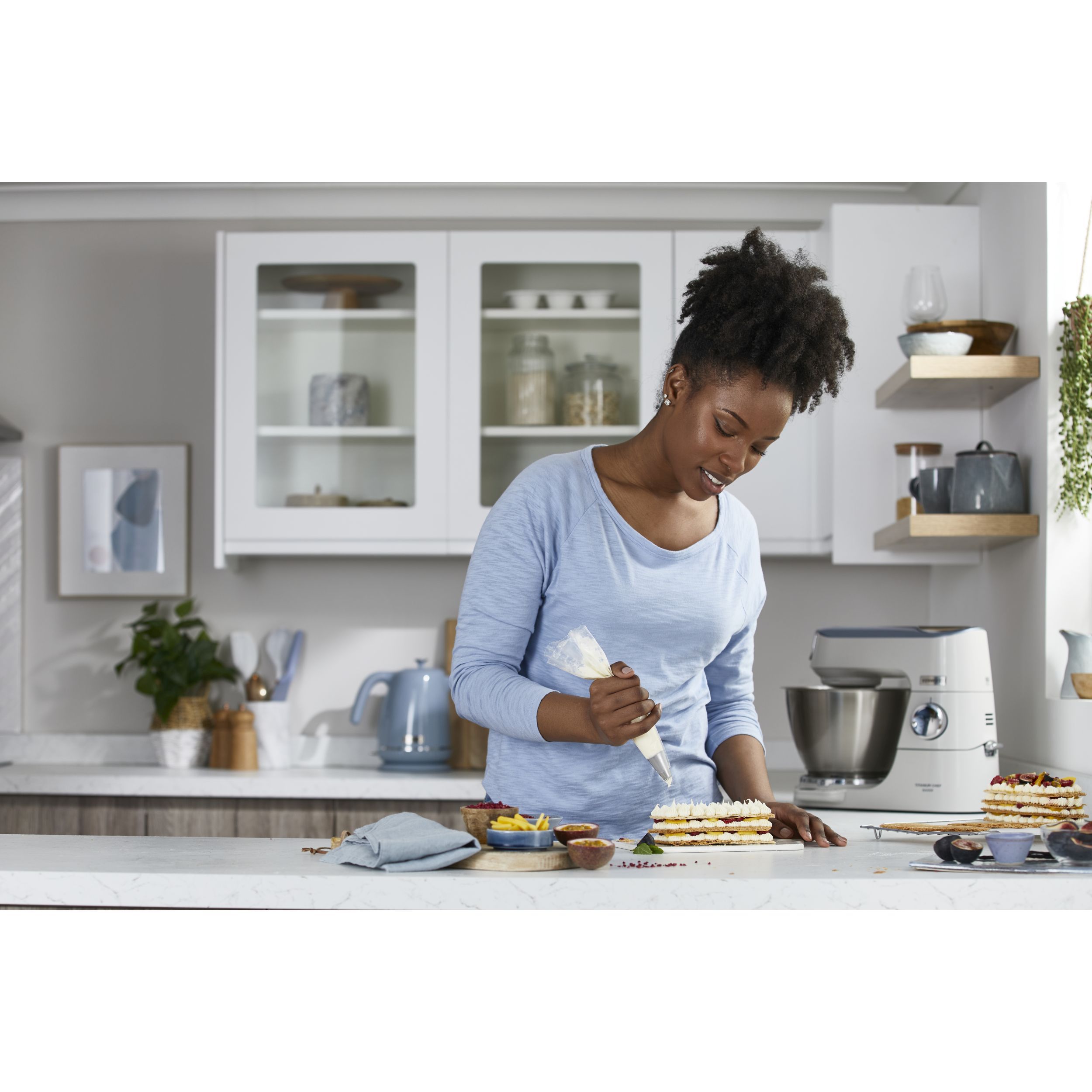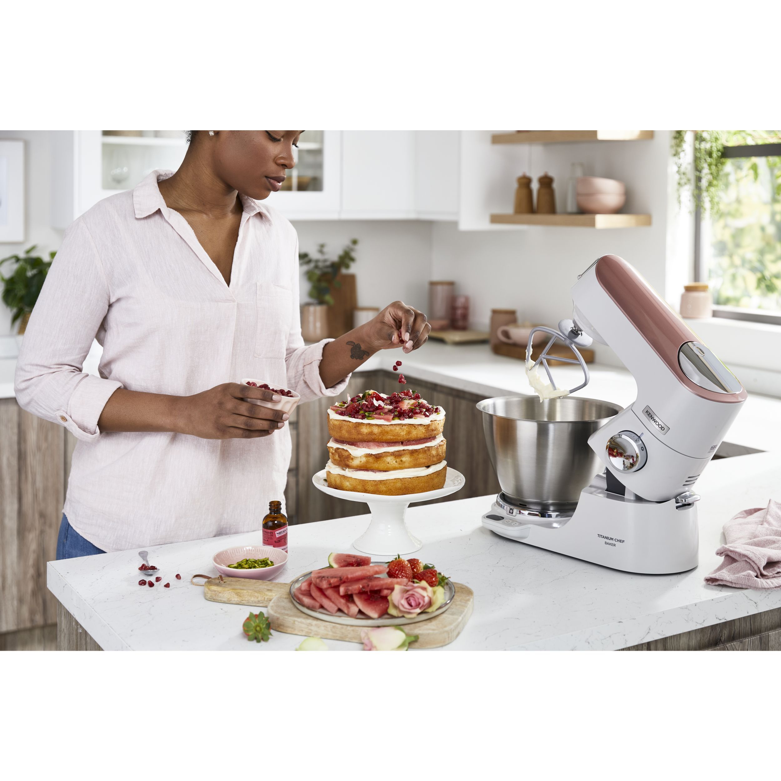 Precizia gătitului începe cu robotul de bucătărie KENWOOD Titanium Chef Baker. Gătitul devine o plăcere neîntreruptă atunci când cântăriți ingredientele direct în vas sau folosiți o funcție de pliere delicată pentru bezele sau mousse. În plus, vă puteți personaliza aparatul Chef Baker cu 8 culori diferite PopTops disponibile pentru achiziționare.