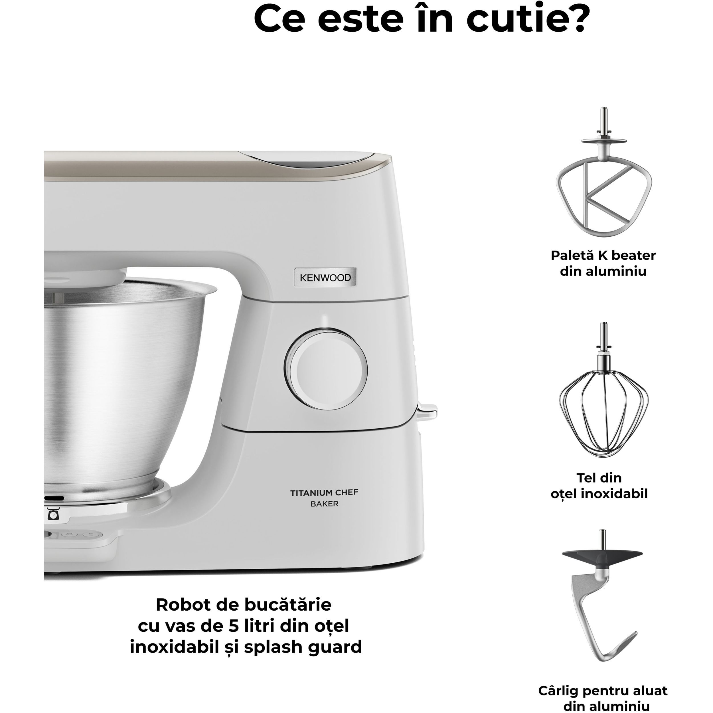 K-Beater, semnătura noastră, însoțește încă două instrumente de gătit din aluminiu: un cârlig pentru aluat și tel. Toate sunt încercate, testate și ușor de spălat manual.