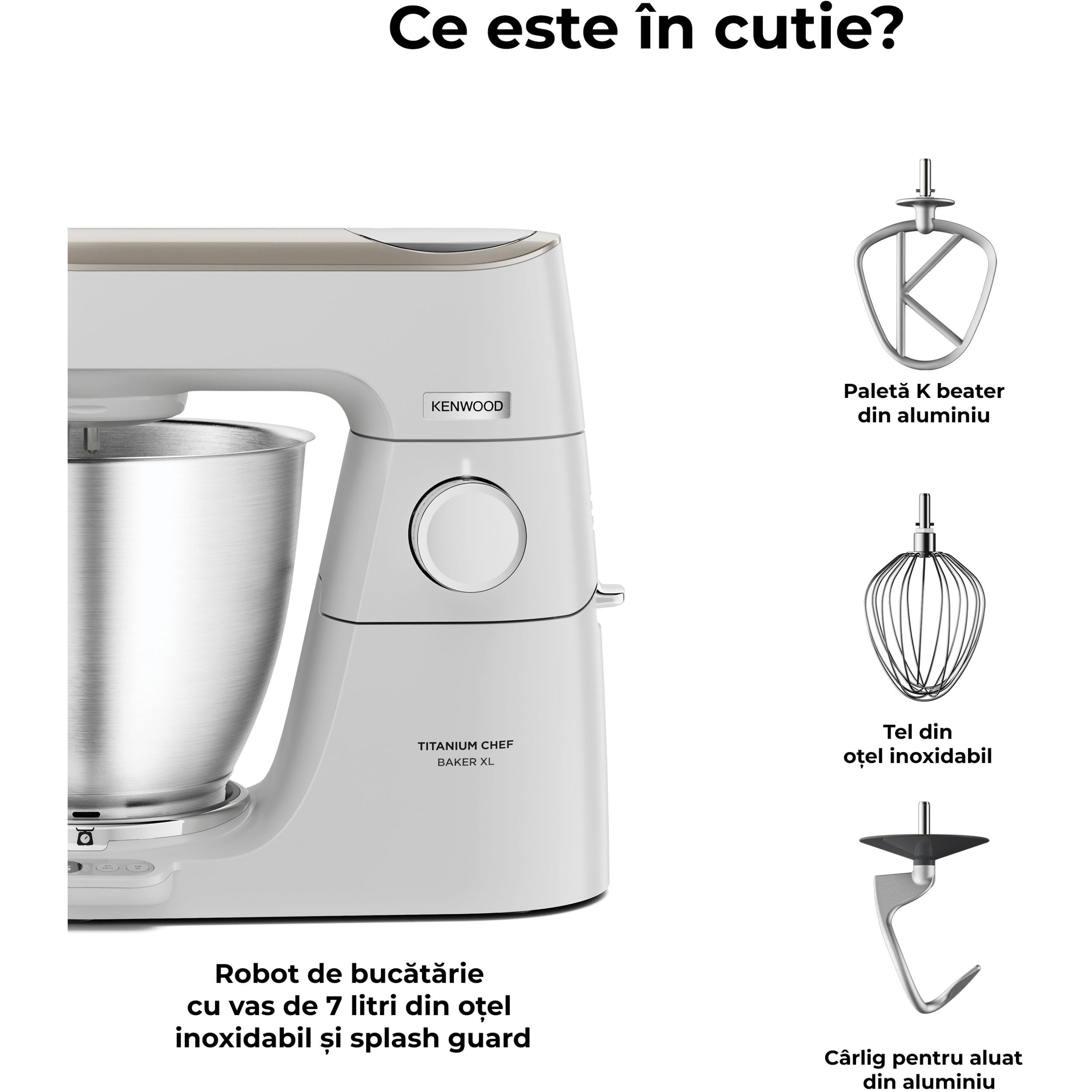 K-Beater, semnătura noastră, însoțește încă două instrumente de gătit din aluminiu: un cârlig pentru aluat și tel. Toate sunt încercate, testate și ușor de spălat manual.