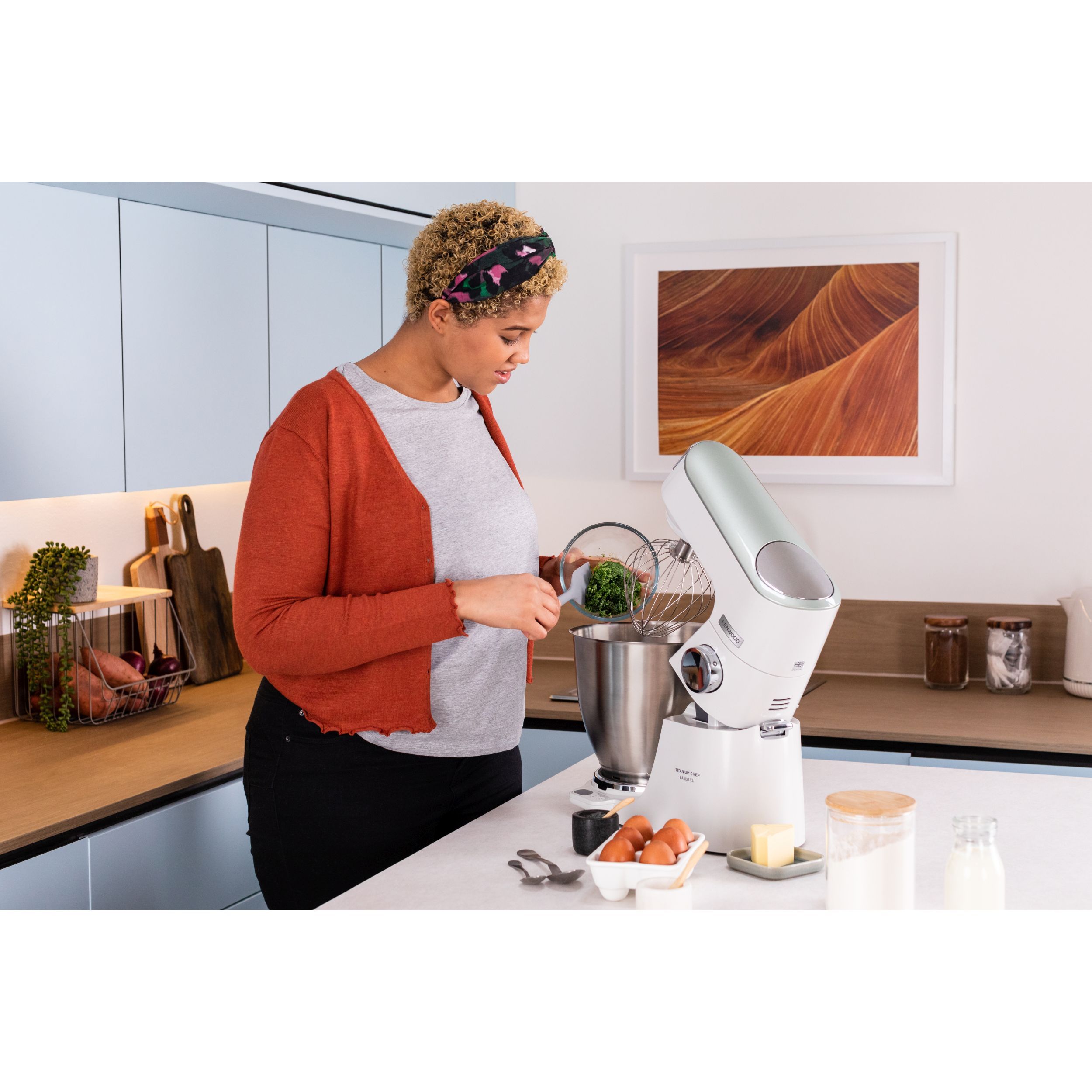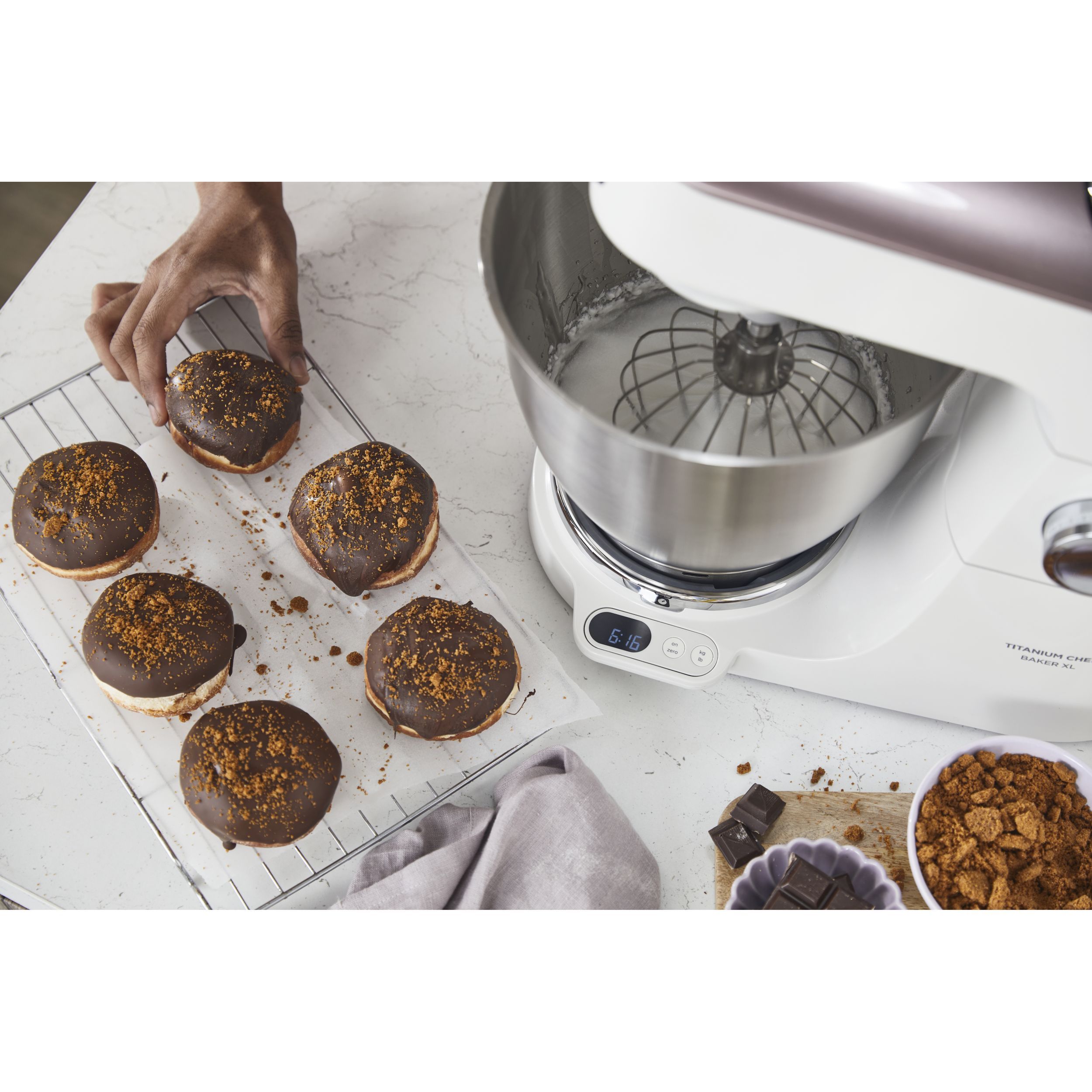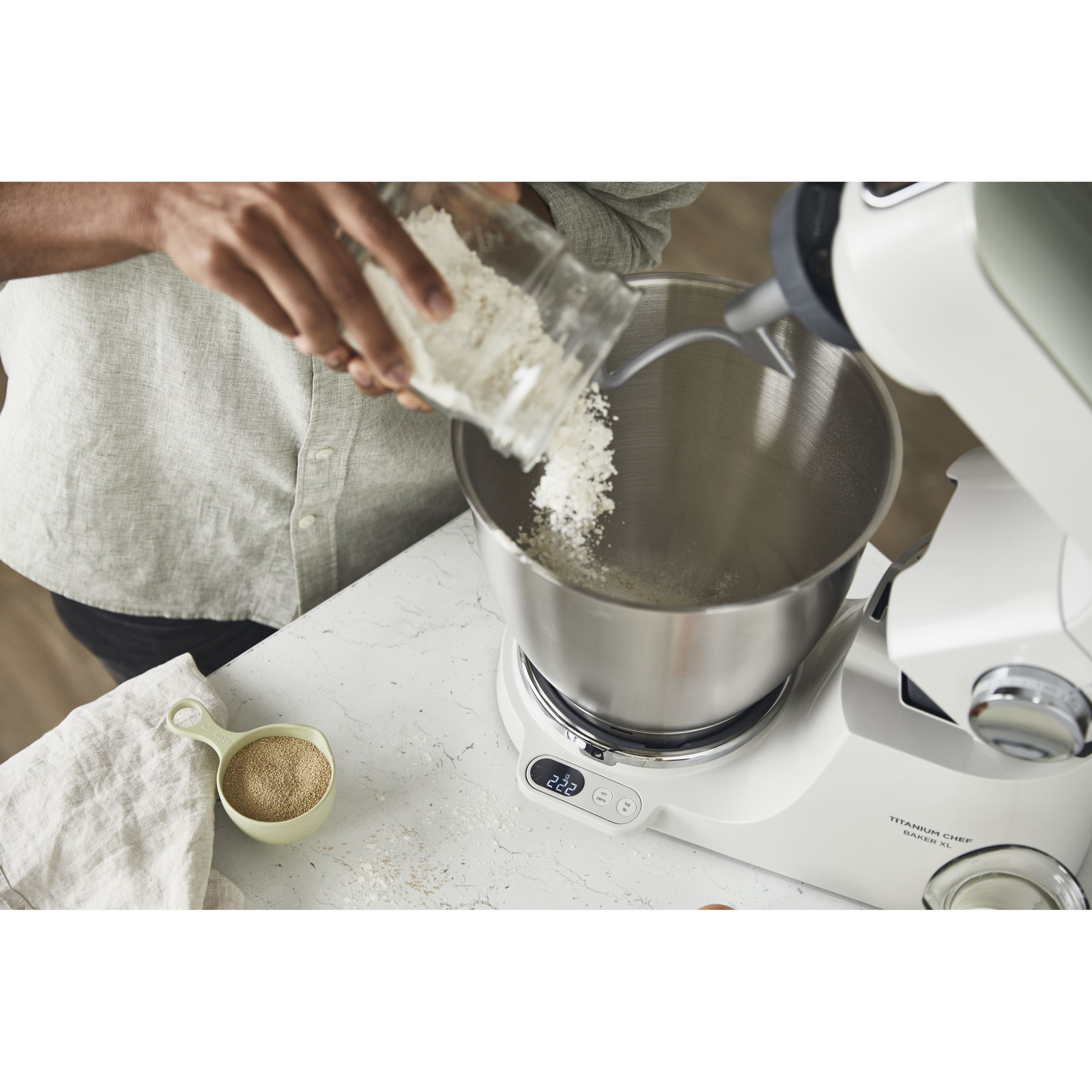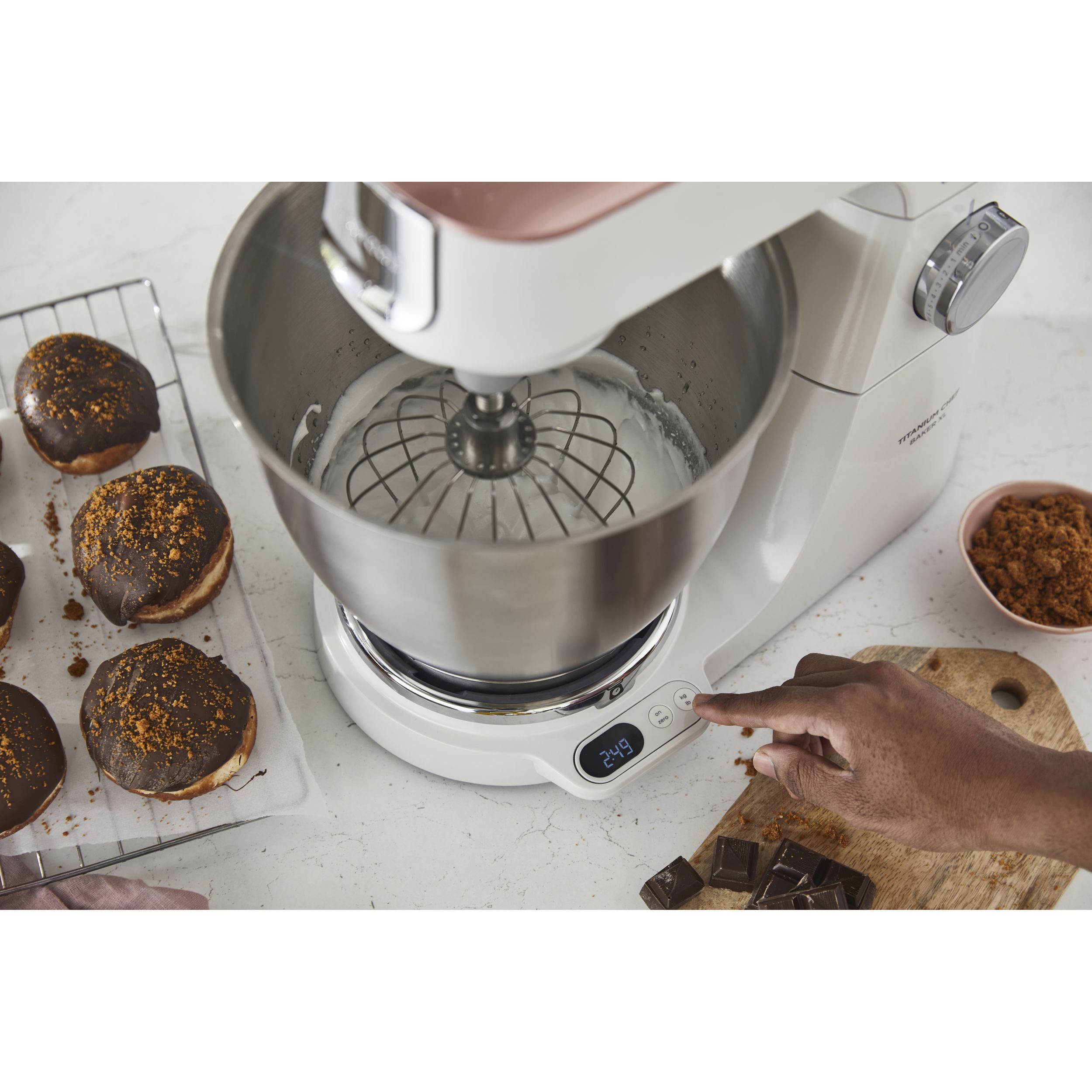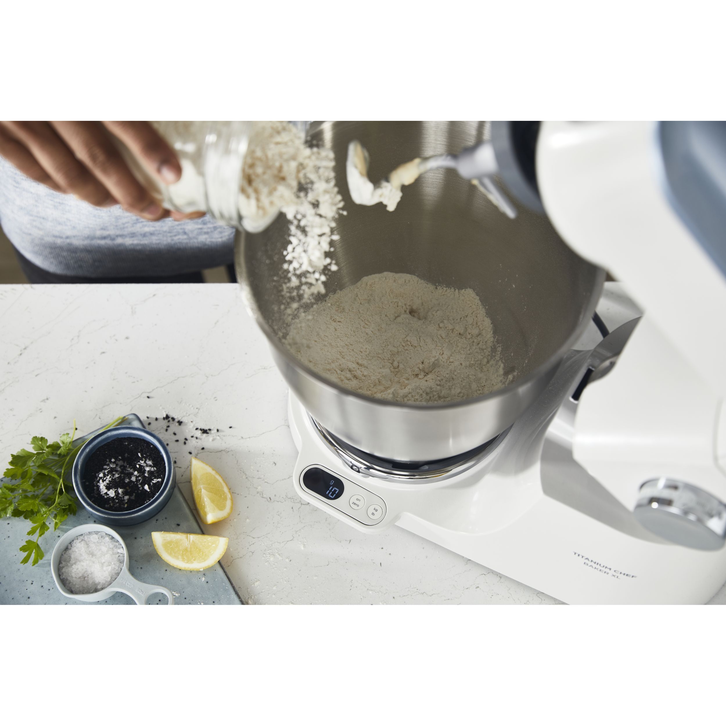 Precizia gătitului începe cu robotul de bucătărie KENWOOD Titanium Chef Baker XL. Gătitul devine o plăcere neîntreruptă atunci când cântăriți ingredientele direct în vas, folosiți un vas suplimentar și o funcție de pliere delicată pentru bezele sau mousse. Acesta este un aparat cu stil și substanță.