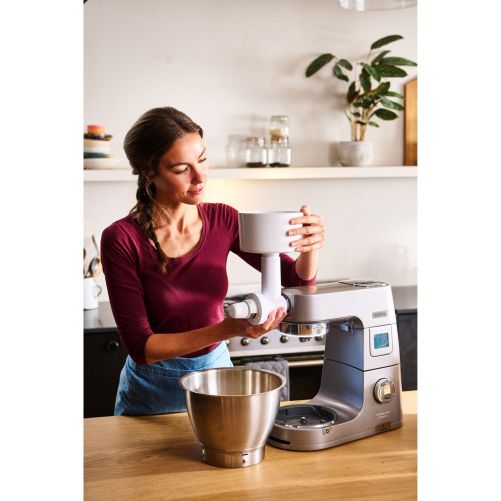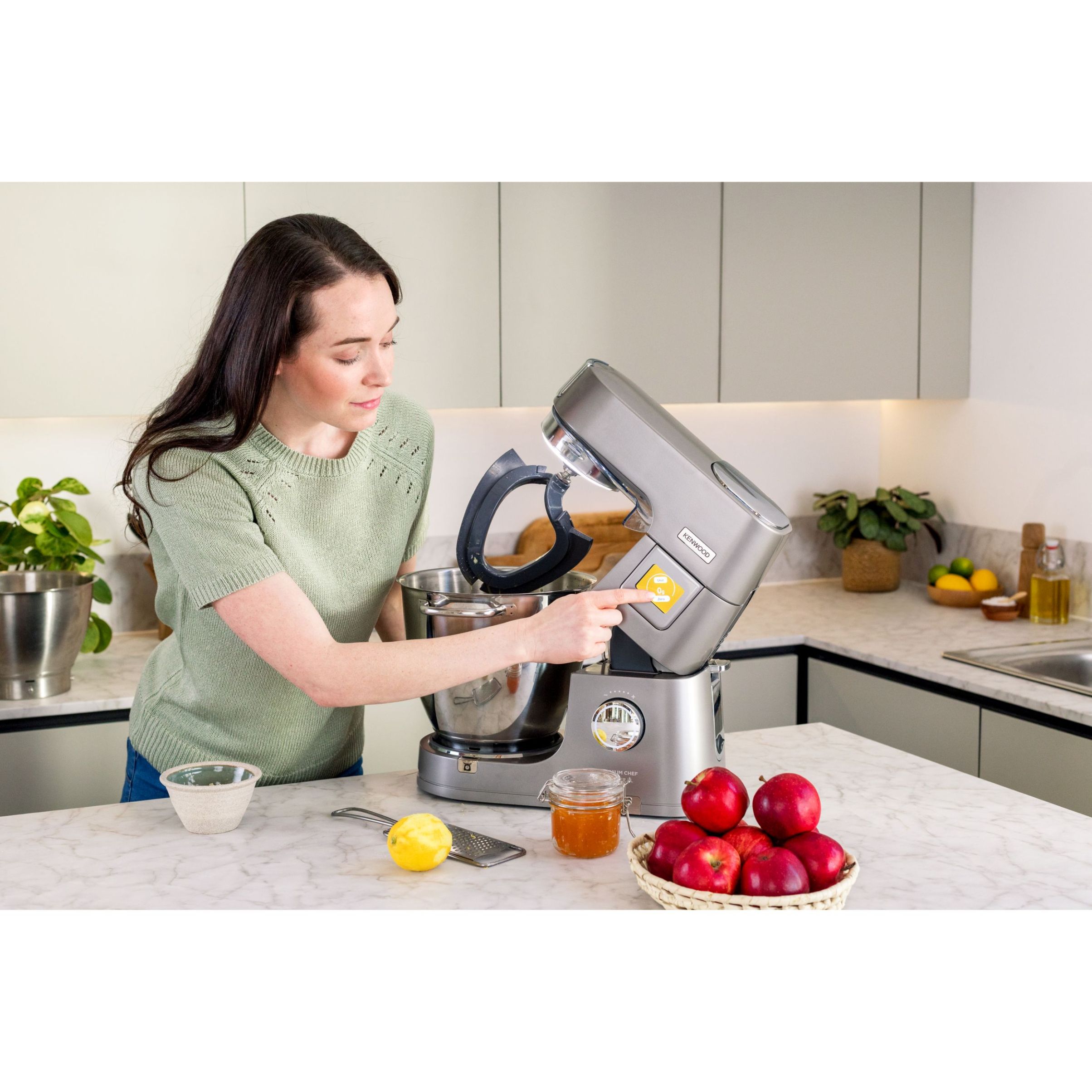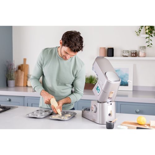 În lumea bucătăriei, inspirația și creativitatea sunt la fel de importante precum este și preparatul obținut. Astfel, robotul de bucătărie Titanium Chef Patissier XL reprezint un ajutor de nădejde în bucătărie, oferind versatilitate mâncărurilor. Chef Patissier XL este conceput pentru entuziaștii culinari care caută profesionalism și perfecțiune în bucătăria proprie. Robotul eficient, ergonomic și versatil este rezultatul anilor de cercetare în inginerie, deschizând noi orizonturi culinare în crearea unei game largi de preparate. Conectați-vă la aplicația mobilă KENWOOD World pentru inspirație culinară pas cu pas, topiți rapid ciocolata cu ajutorul sistemului de încălzire și măsurați ingredientele direct în vasul robotului cu cântarul EasyWeigh încorporat. Robust și rezistent, Titanium Chef Patissier XL va sta în siguranță pe blatul de lucru chiar și atunci cand framântați cele mai mari cantități de aluat, iar sistemul de iluminare al vasului vă ajuta să aveți 100% control asupra preparatelor.