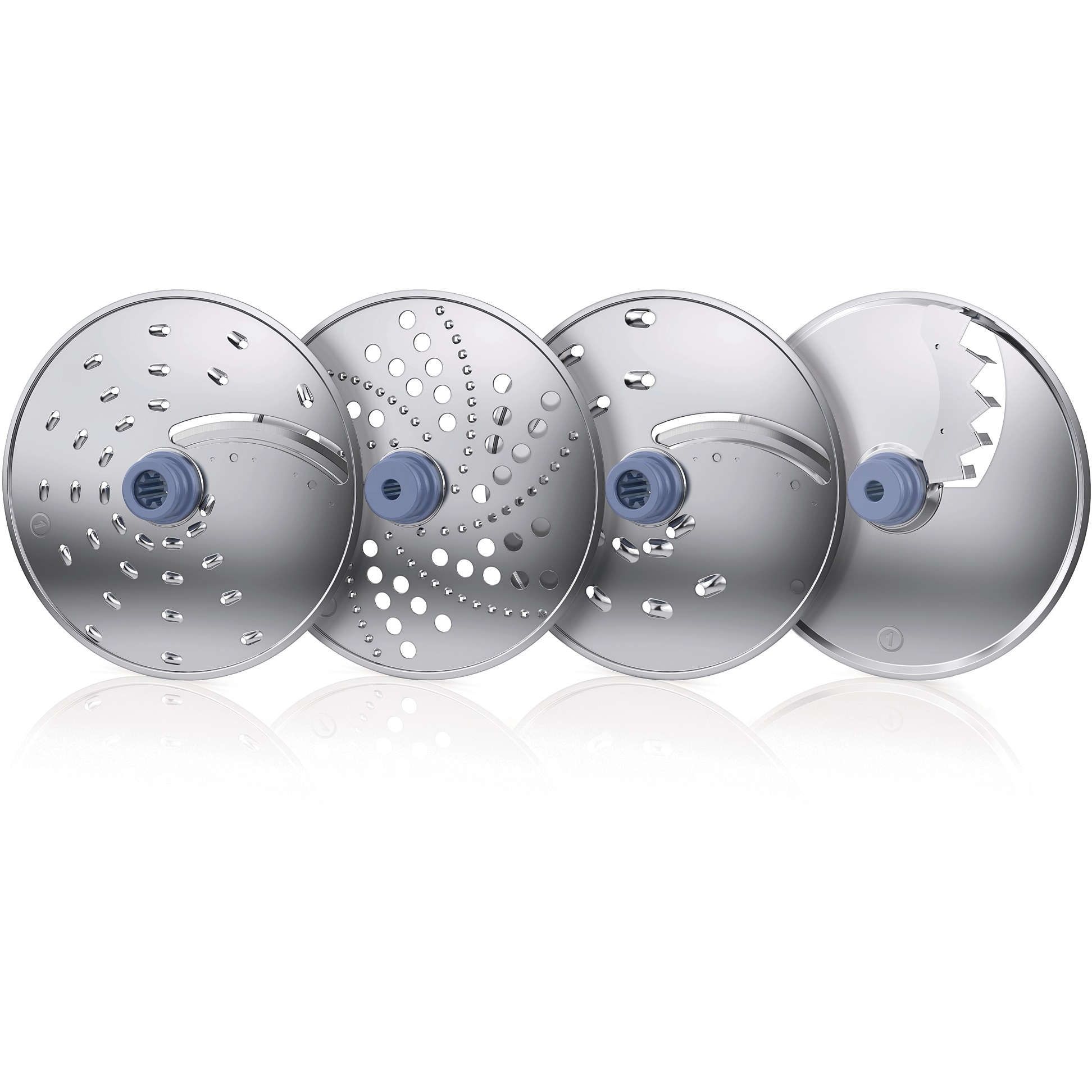 Accesorii pentru a îndeplini cu uşurinţă peste 28 de funcţii. Accesoriile - lavabile în maşina de spălat vase - constau într-un instrument de frământat pentru amestecarea şi frământarea aluatului. Un cuţit din oţel inoxidabil pentru prepararea cărnii şi a legumelor. Diverse accesorii de disc pentru radere şi măcinare. Un recipient de 1 l rezistent la şocuri pentru amestecarea, zdrobirea şi agitarea diverselor ingrediente. Un disc de emulsifiere pentru prepararea alimentelor precum frişca şi maioneza. O râşniţă pentru măcinarea boabelor de cafea, de exemplu.