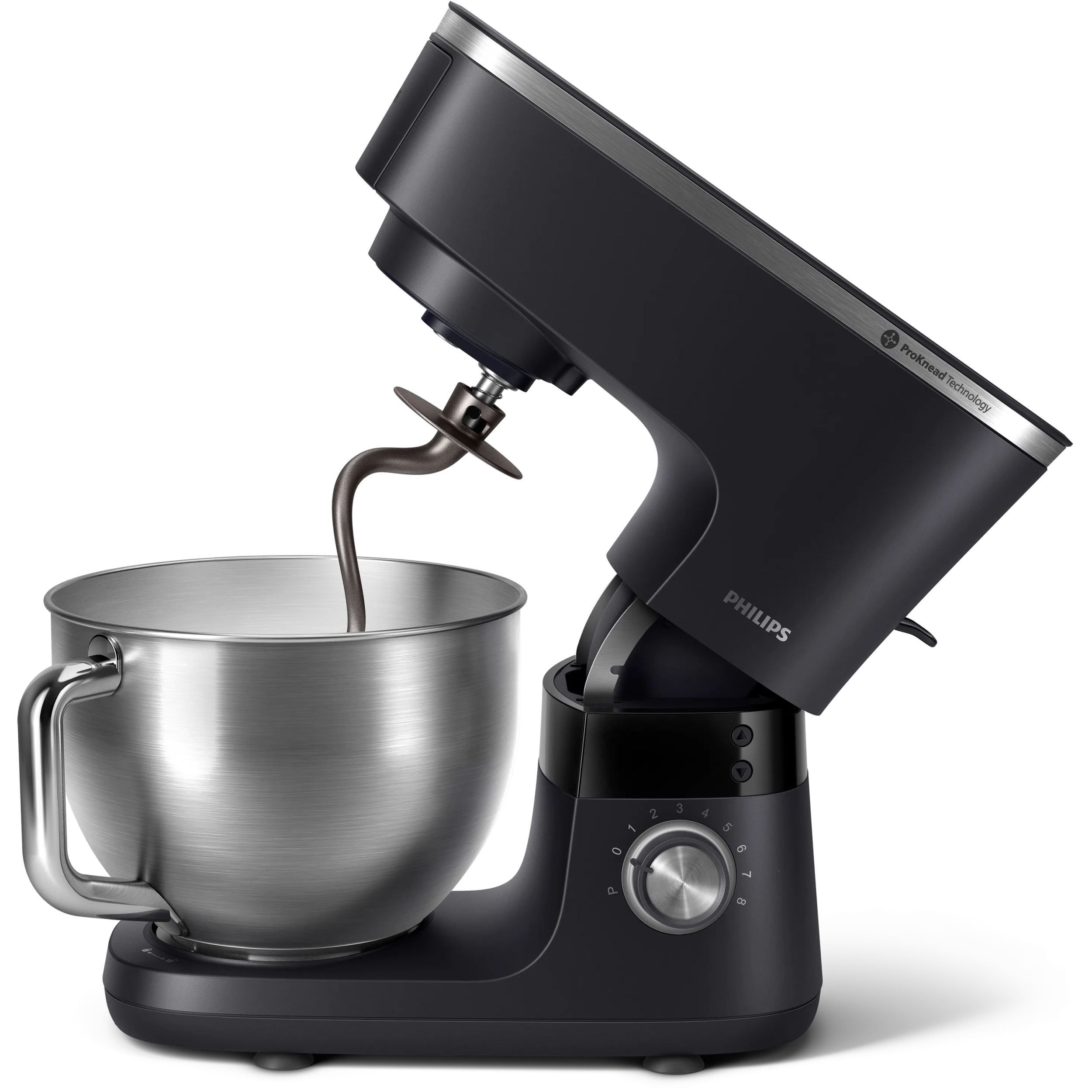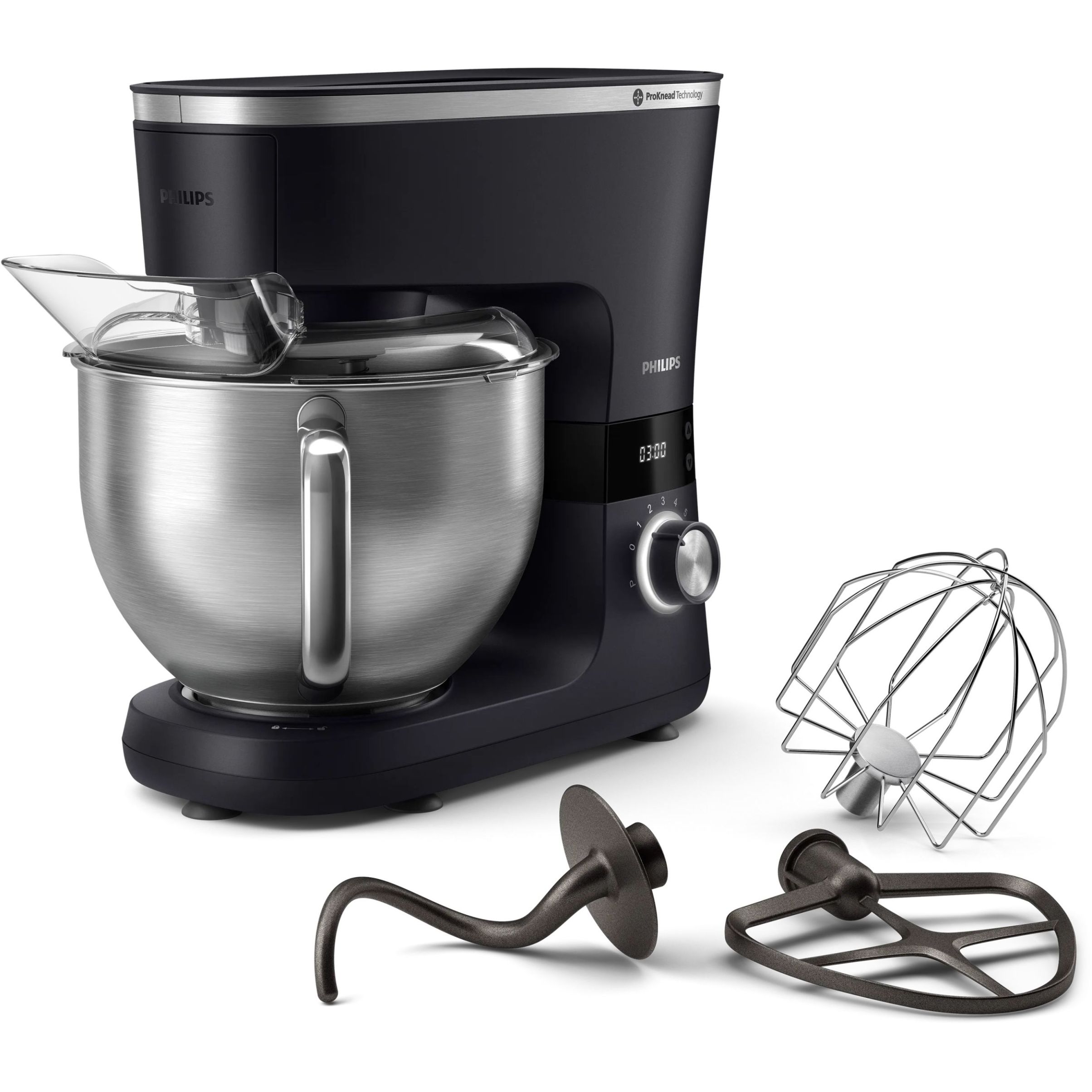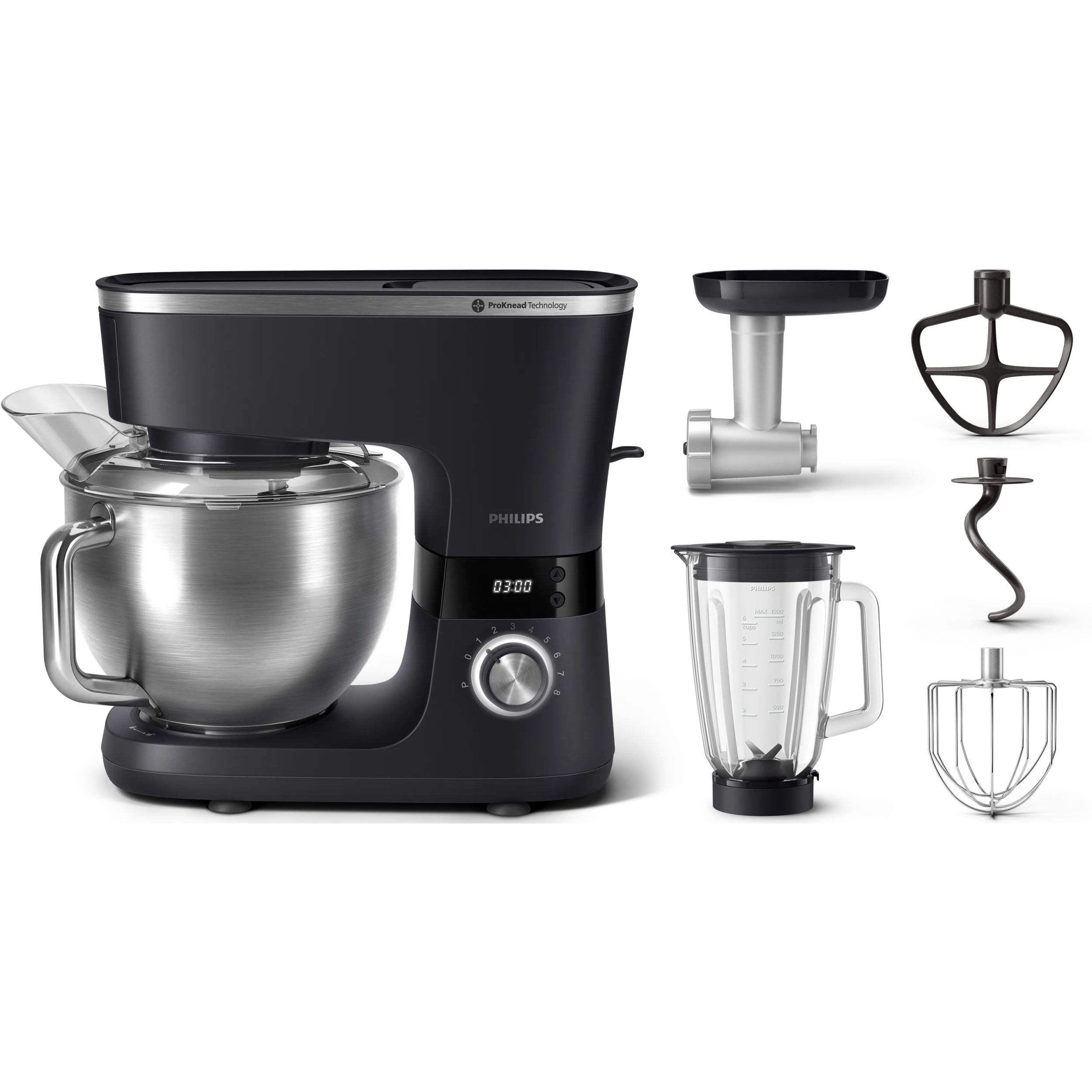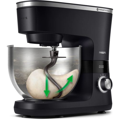 Robot de bucătărie planetar Philips Seria 7000 HR7962/21, 1000W (8 trepte, Pulse), Bol inox 5.5l, Blender sticlă 1.5l, ProKnead, Timer, Iluminare, Bază metalică, Protecție termică motor, HomeID, G9.93kg