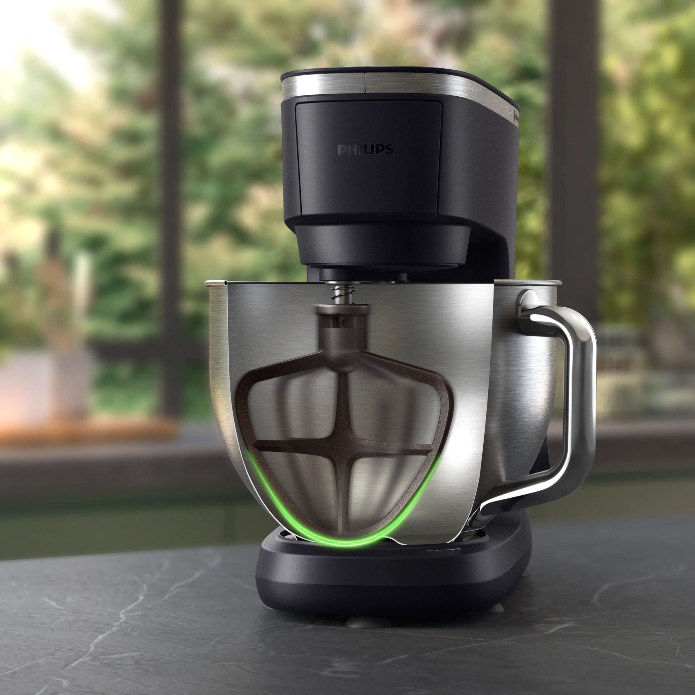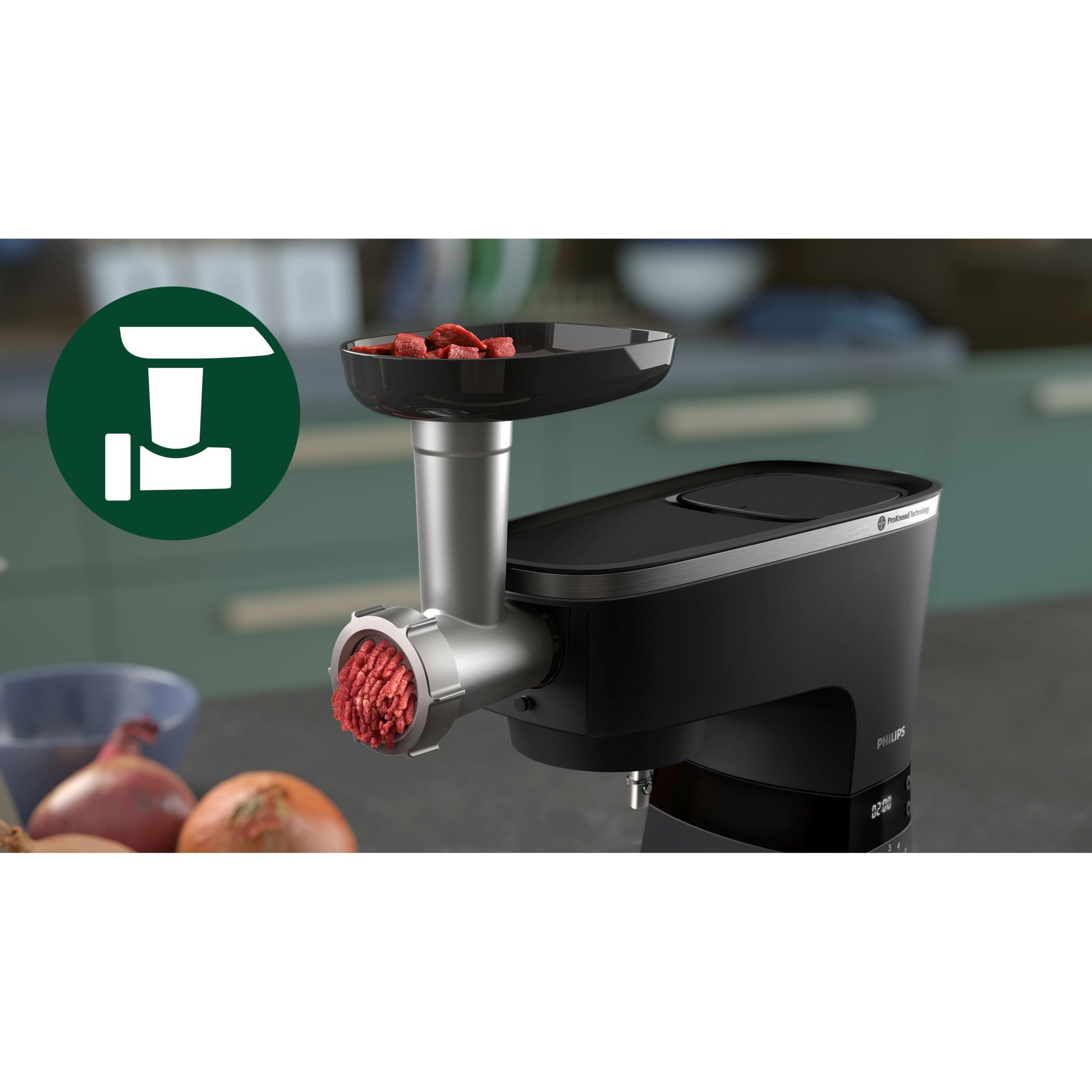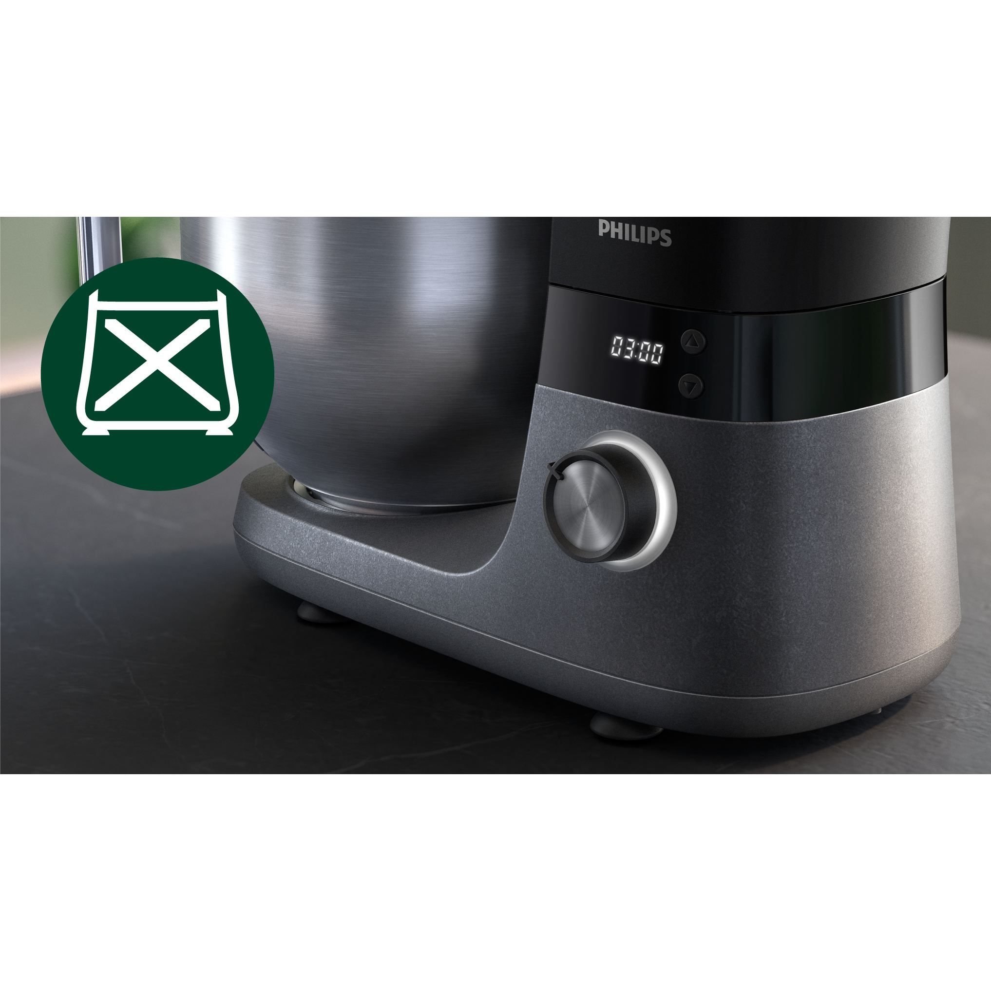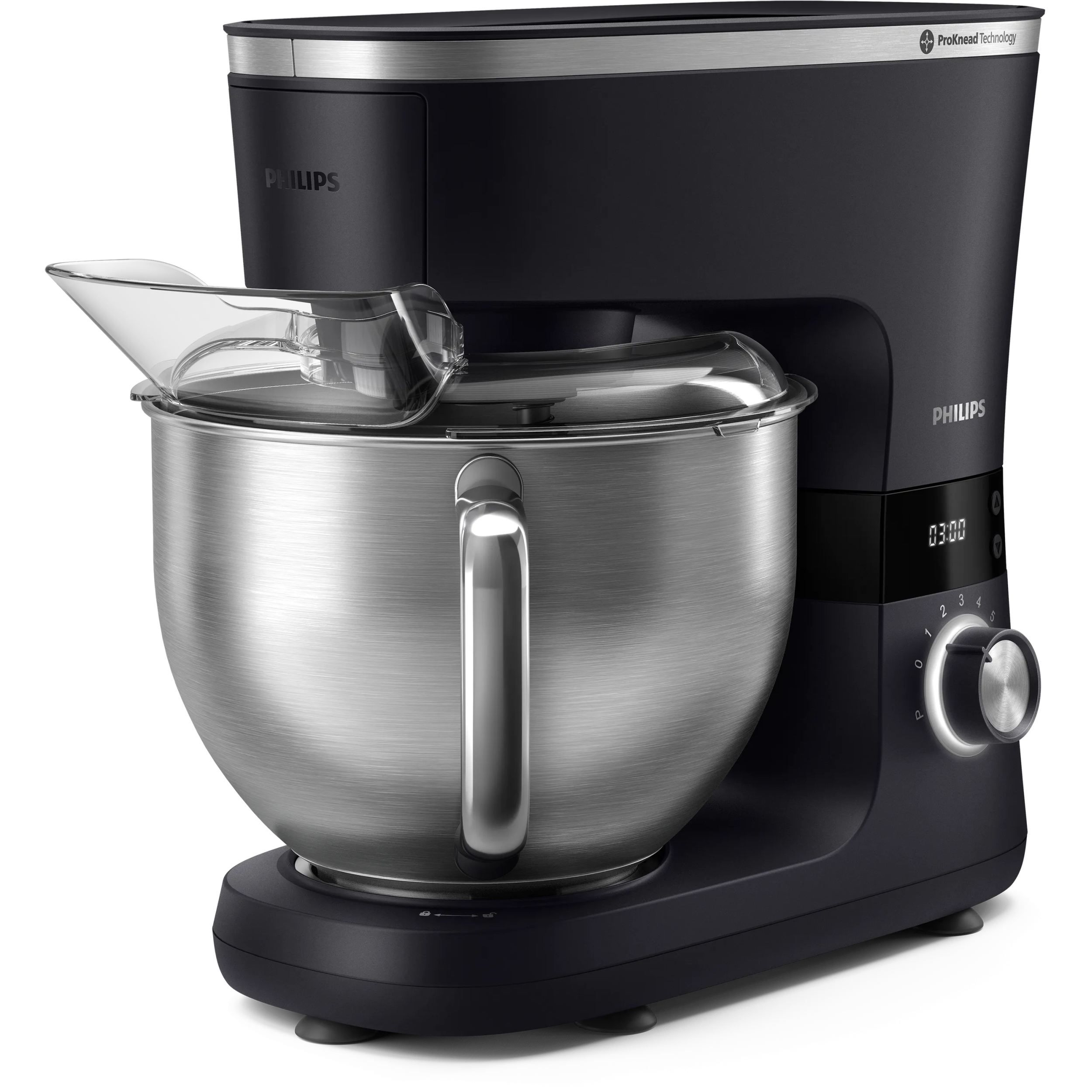 Robot de bucătărie planetar Philips Seria 7000 HR7962/21, 1000W (8 trepte, Pulse), Bol inox 5.5l, Blender sticlă 1.5l, ProKnead, Timer, Iluminare, Bază metalică, Protecție termică motor, HomeID, G9.93kg