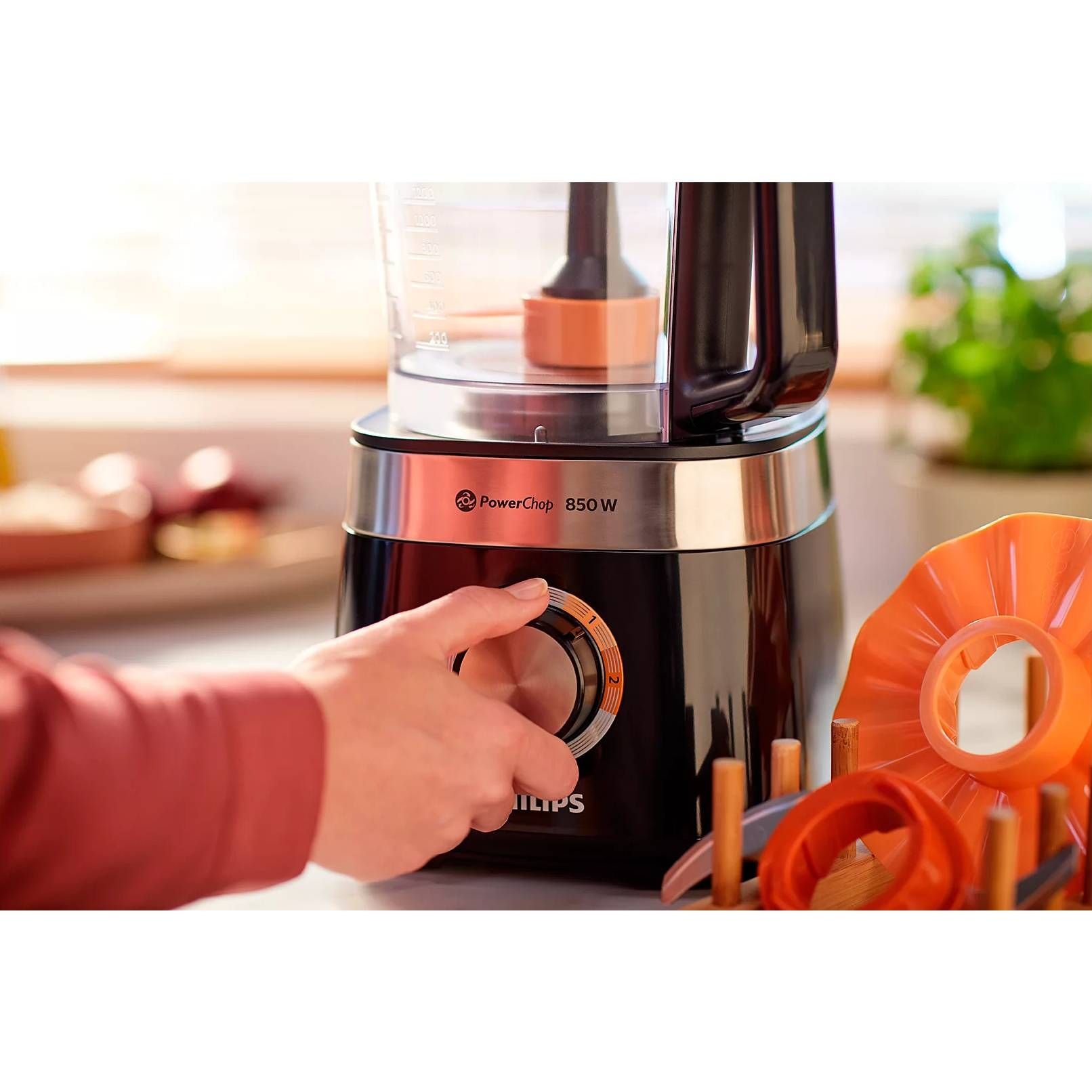 Tehnologie PowerChop pentru performanţe superioare de tocare. Tehnologia PowerChop este o combinaţie între forma lamei de tăiere, unghiul de tăiere şi castronul interior, care oferă rezultate de tocare superioare atât pentru ingredientele moi, cât şi pentru cele tari. Este, de asemenea, perfectă pentru prepararea piureurilor şi pentru amestecarea aluaturilor pentru prăjituri!