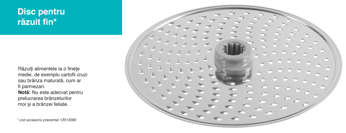 Nu te mai gândi la cum să atașezi accesoriile. Codurile de culoare de pe aparat și de pe accesorii asigură montarea ușoară a acestora. Indiferent că este vorba de burgeri, paste sau mâncare pentru copii, gama de accesorii opționale te ajută să obții preparatele pe care ți le dorești.