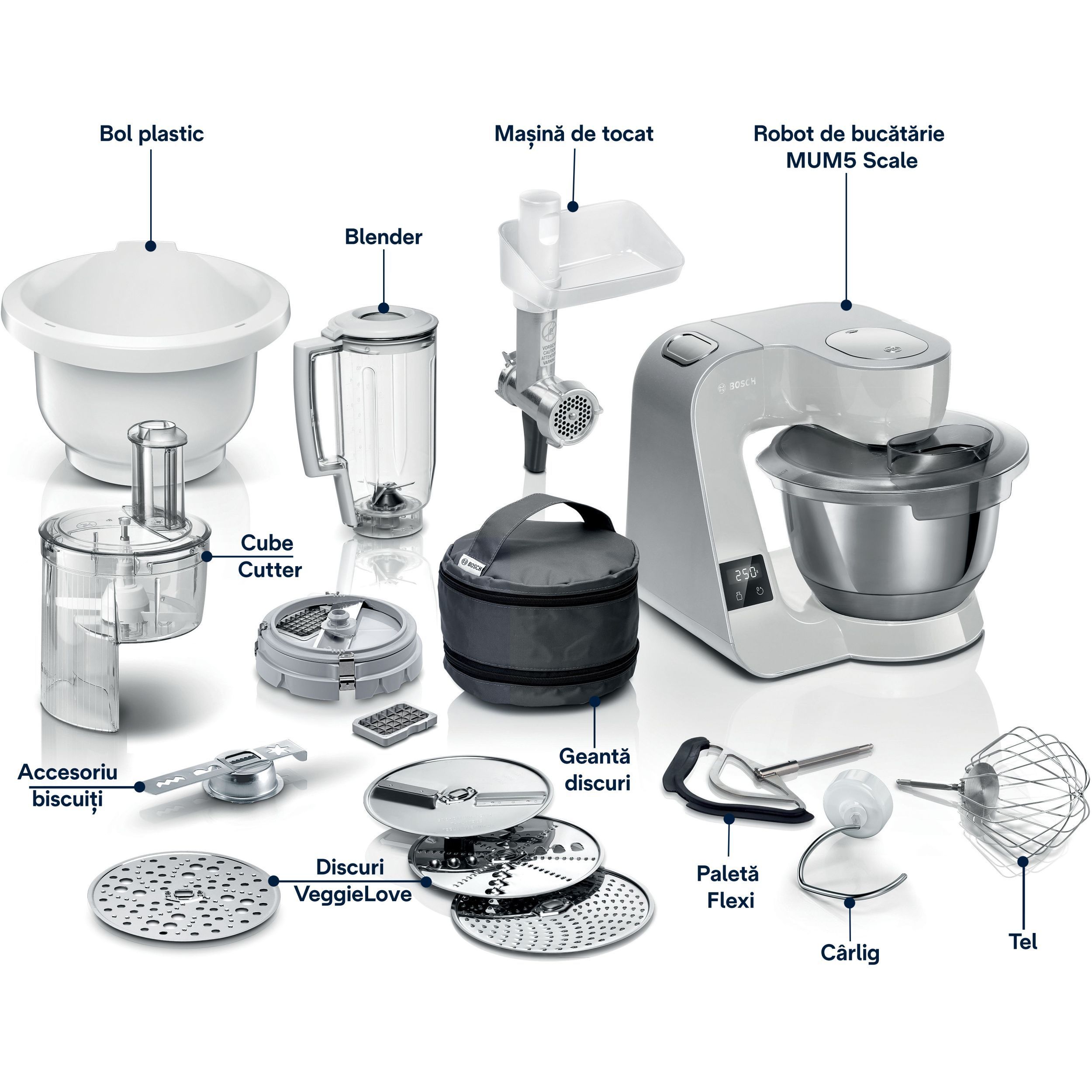 Fiecare are anumite preferințe în ceea ce privește pregătirea diferitelor compoziții. Dacă nu este deja inclus accesoriul de care ai nevoie, poți alege dintr-o gamă largă de accesorii opționale precum cel de înghețată, râșniță, accesoriu pentru fursecuri, mașină de tocat carne, Cube Cutter și altele. BOSCH are accesoriile potrivite nevoilor tale.