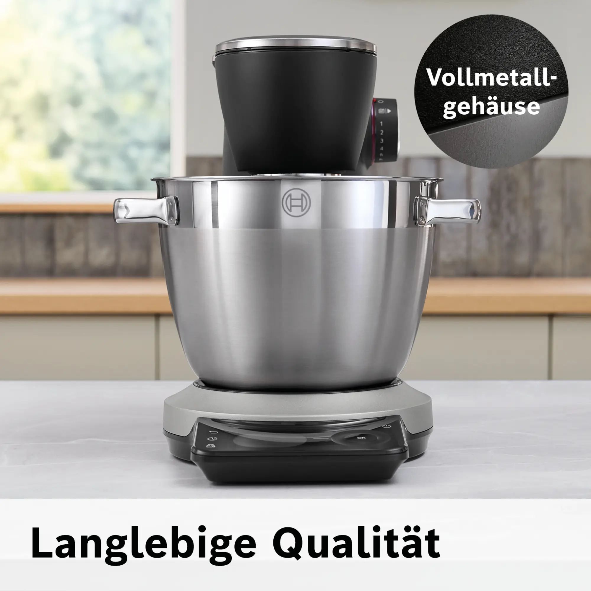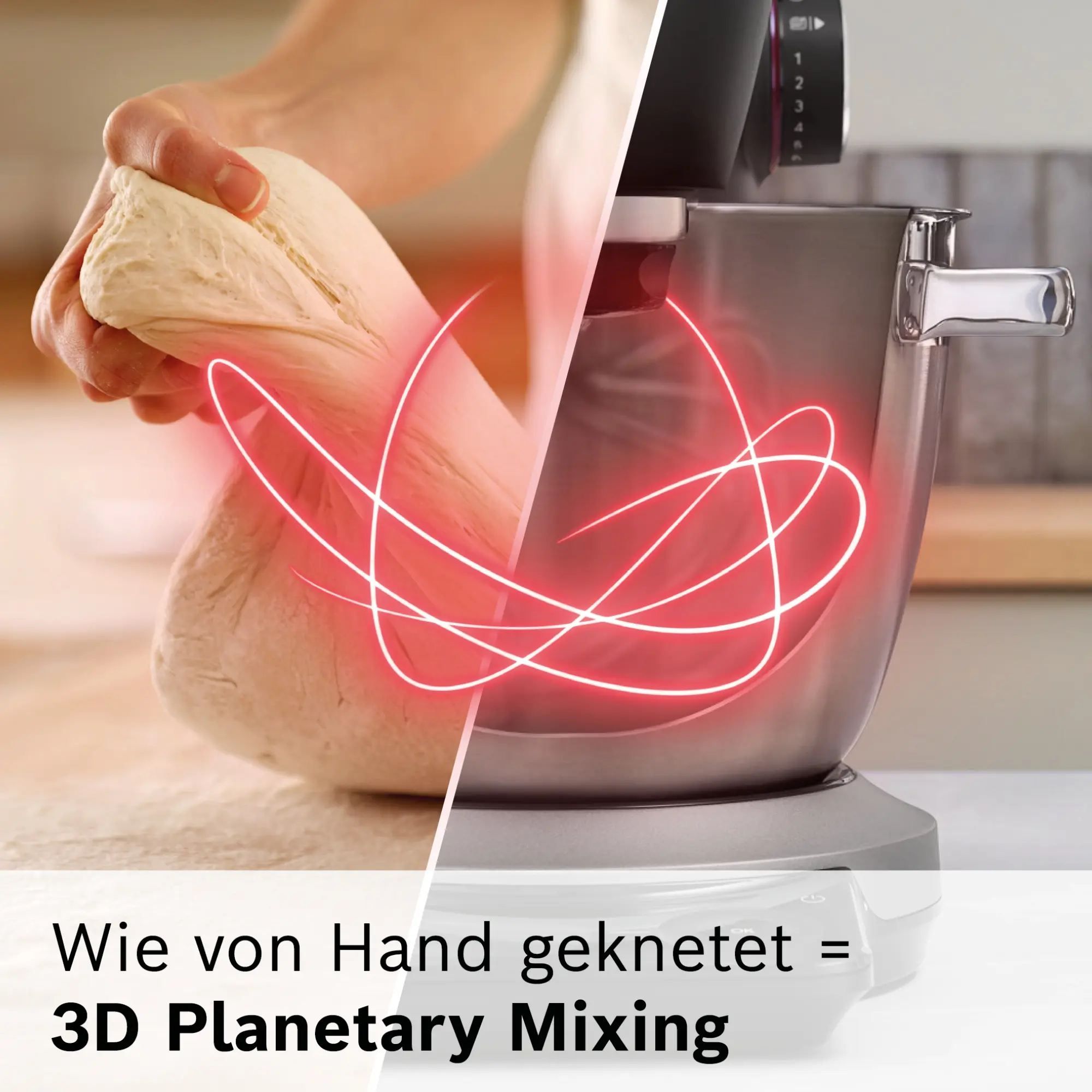 Robot de bucătărie planetar BOSCH Serie 8 MUMS8 Scale MUMS8ZS00, 1800W (7 trepte), Bol inox șlefuit 6l cu mânere, Set patiserie, Cântar, Cronometru, SoftStart, AirCooling, Carcasă metalică, Pearl Silver