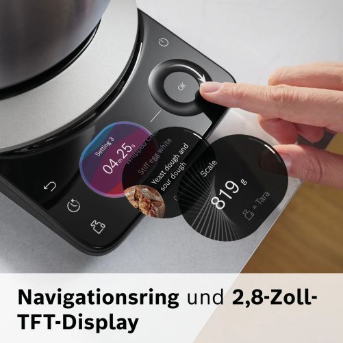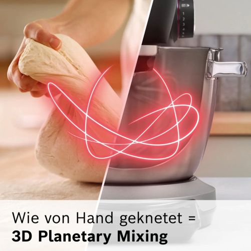 Robot de bucătărie planetar BOSCH Serie 8 MUMS8 Scale MUMS8ZS13, 1800W (7 trepte), Bol inox șlefuit 6l cu mânere, Set patiserie, Cântar, Cronometru, SoftStart, AirCooling, Carcasă metalică, Pearl Silver