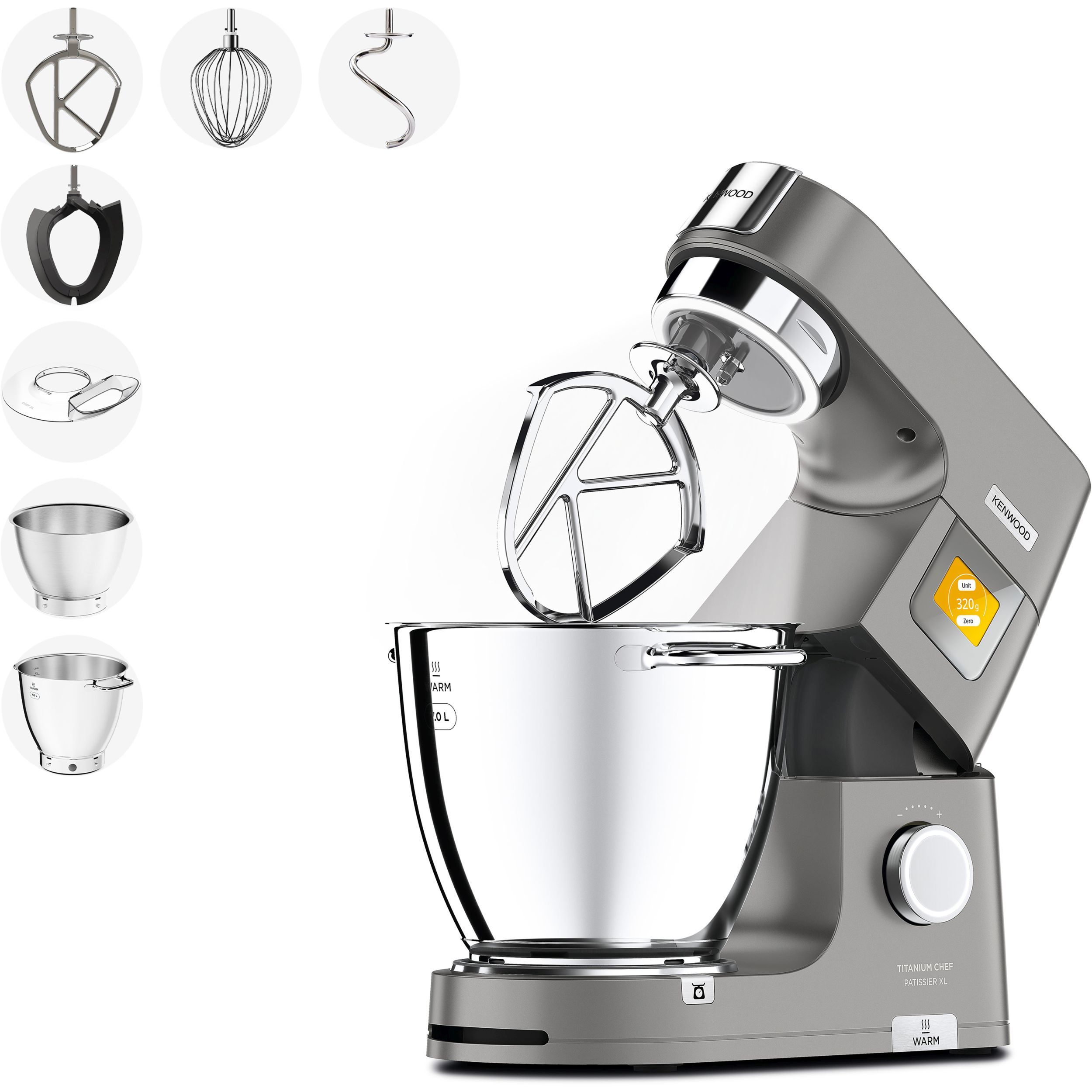 În lumea bucătăriei, inspirația și creativitatea sunt la fel de importante precum este și preparatul obținut. Astfel, robotul de bucătărie Titanium Chef Patissier XL reprezint un ajutor de nădejde în bucătărie, oferind versatilitate mâncărurilor. Chef Patissier XL este conceput pentru entuziaștii culinari care caută profesionalism și perfecțiune în bucătăria proprie. Robotul eficient, ergonomic și versatil este rezultatul anilor de cercetare în inginerie, deschizând noi orizonturi culinare în crearea unei game largi de preparate. Conectați-vă la aplicația mobilă KENWOOD World pentru inspirație culinară pas cu pas, topiți rapid ciocolata cu ajutorul sistemului de încălzire și măsurați ingredientele direct în vasul robotului cu cântarul EasyWeigh încorporat. Robust și rezistent, Titanium Chef Patissier XL va sta în siguranță pe blatul de lucru chiar și atunci cand framântați cele mai mari cantități de aluat, iar sistemul de iluminare al vasului vă ajuta să aveți 100% control asupra preparatelor.