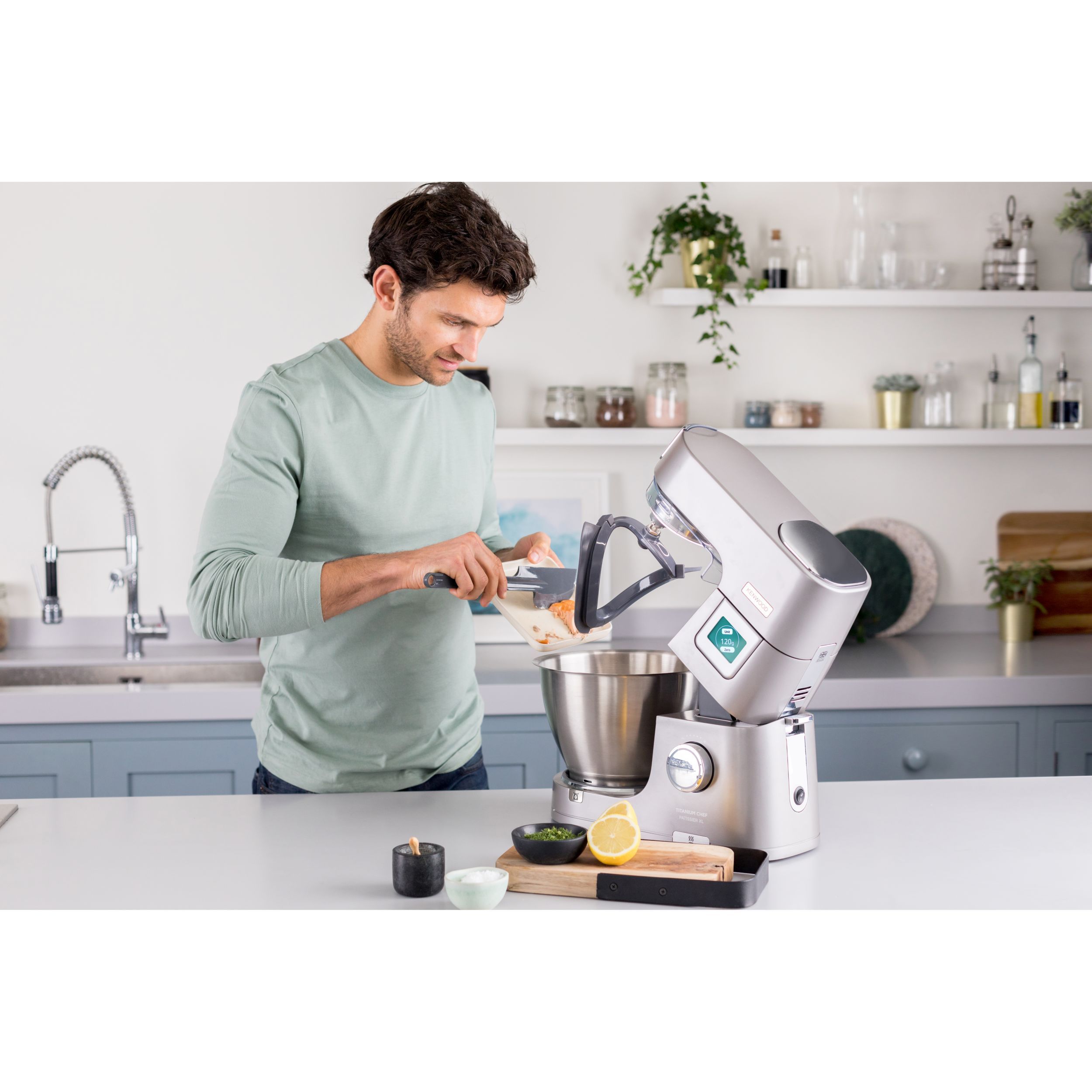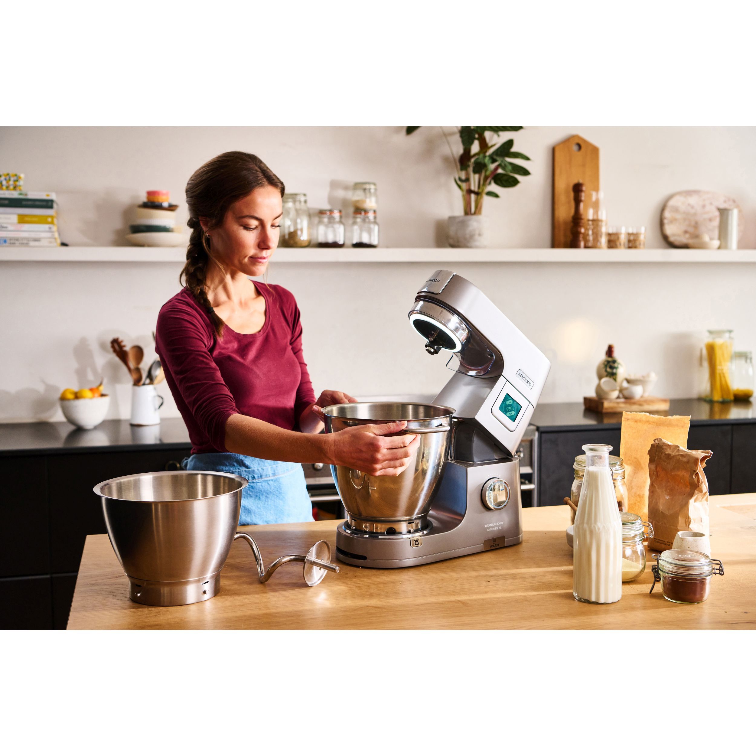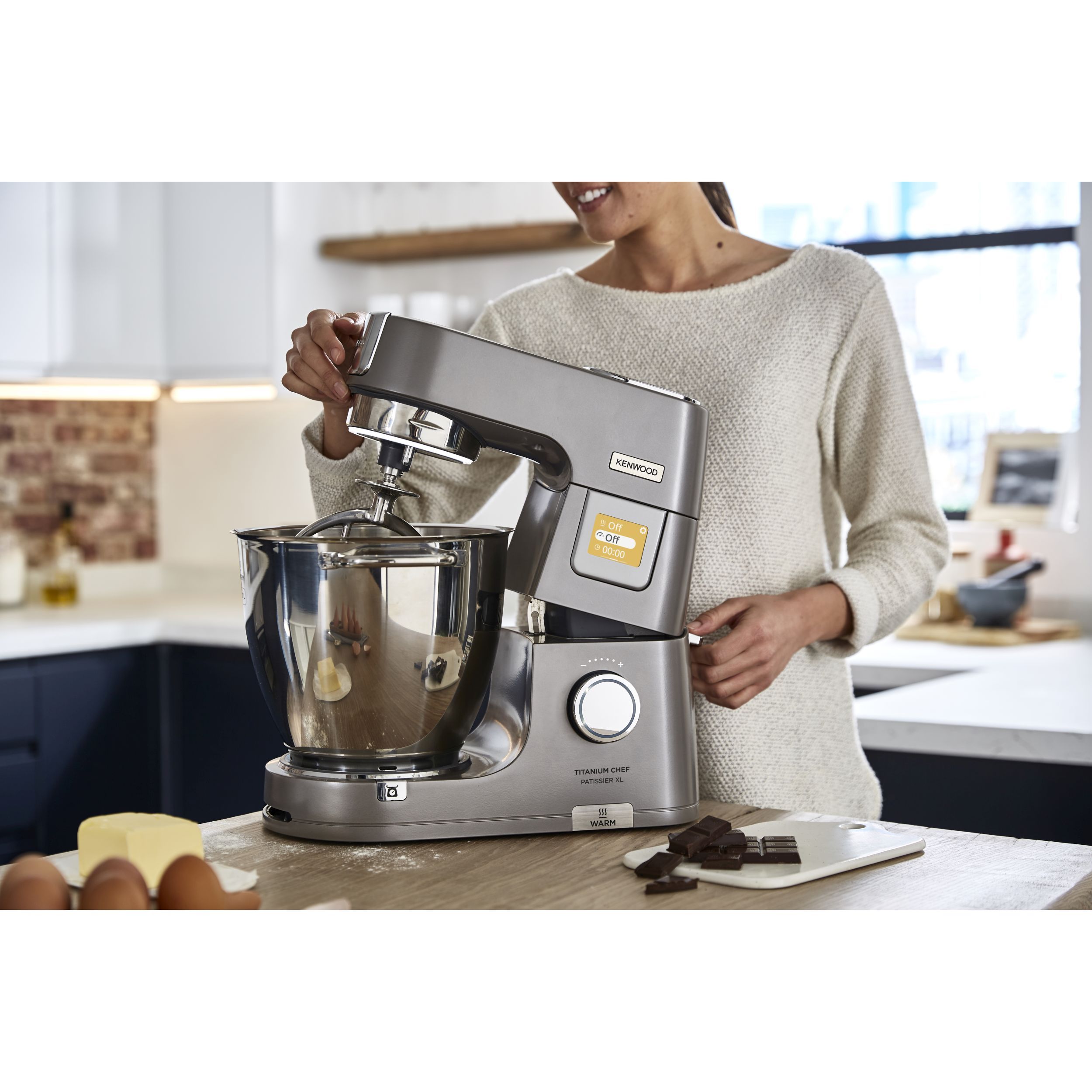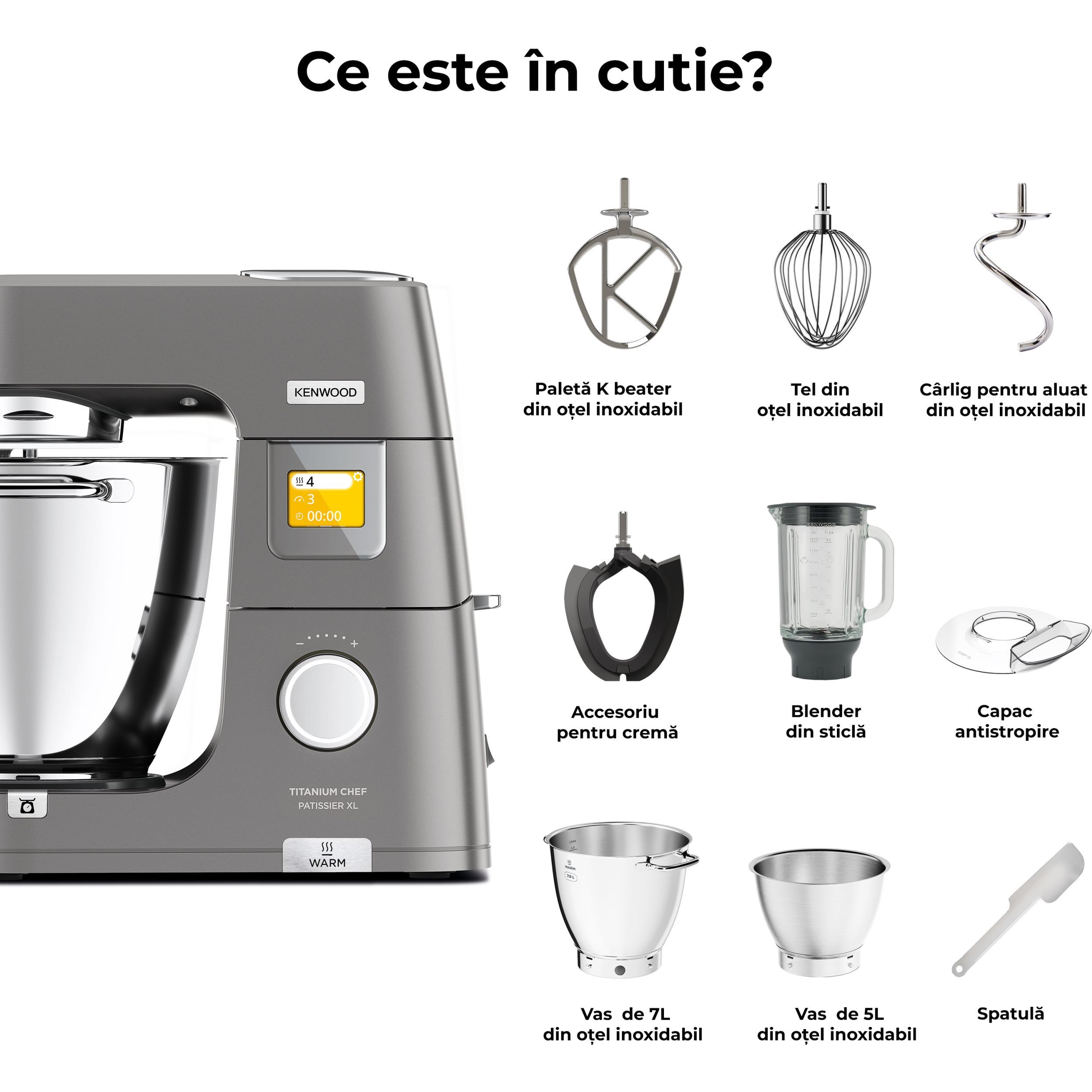 În lumea bucătăriei, inspirația și creativitatea sunt la fel de importante precum este și preparatul obținut. Astfel, robotul de bucătărie Titanium Chef Patissier XL reprezint un ajutor de nădejde în bucătărie, oferind versatilitate mâncărurilor. Chef Patissier XL este conceput pentru entuziaștii culinari care caută profesionalism și perfecțiune în bucătăria proprie. Robotul eficient, ergonomic și versatil este rezultatul anilor de cercetare în inginerie, deschizând noi orizonturi culinare în crearea unei game largi de preparate. Conectați-vă la aplicația mobilă KENWOOD World pentru inspirație culinară pas cu pas, topiți rapid ciocolata cu ajutorul sistemului de încălzire și măsurați ingredientele direct în vasul robotului cu cântarul EasyWeigh încorporat. Robust și rezistent, Titanium Chef Patissier XL va sta în siguranță pe blatul de lucru chiar și atunci cand framântați cele mai mari cantități de aluat, iar sistemul de iluminare al vasului vă ajuta să aveți 100% control asupra preparatelor.