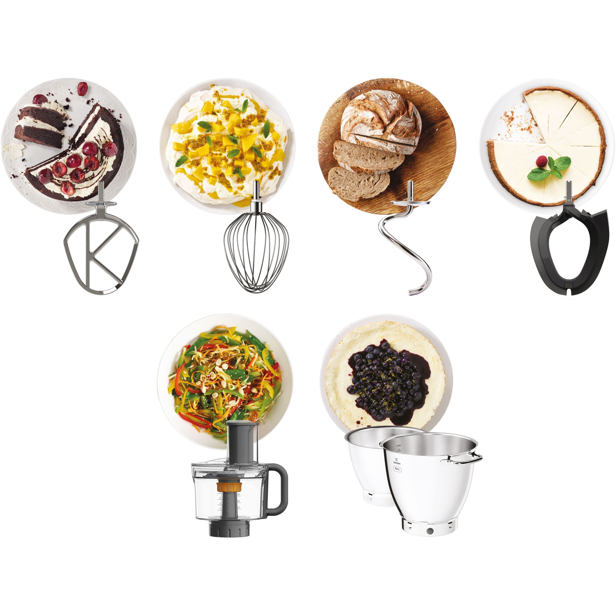 K-Beater semnătura noastră, însoțește încă două unelte de gătit din oțel inoxidabil, un instrument pentru aluat și tel. În plus, un bătător pentru cremă. Abordați cu încredere orice sarcină. Toate pot fi spălate în maşina de spălat vase pentru o curăţare uşoară.