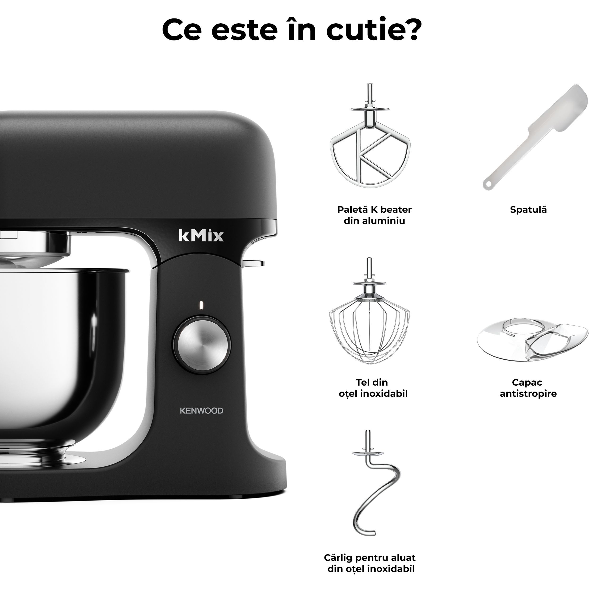 Robot de bucătărie planetar KENWOOD kMix Special Edition KMX760ABC - 0W20011396, 1000W (6 trepte și Turbo), Vas inox 5l, Set patiserie (tel 16 brațe, cârlig, paletă K), G9.3kg, Black Chrome