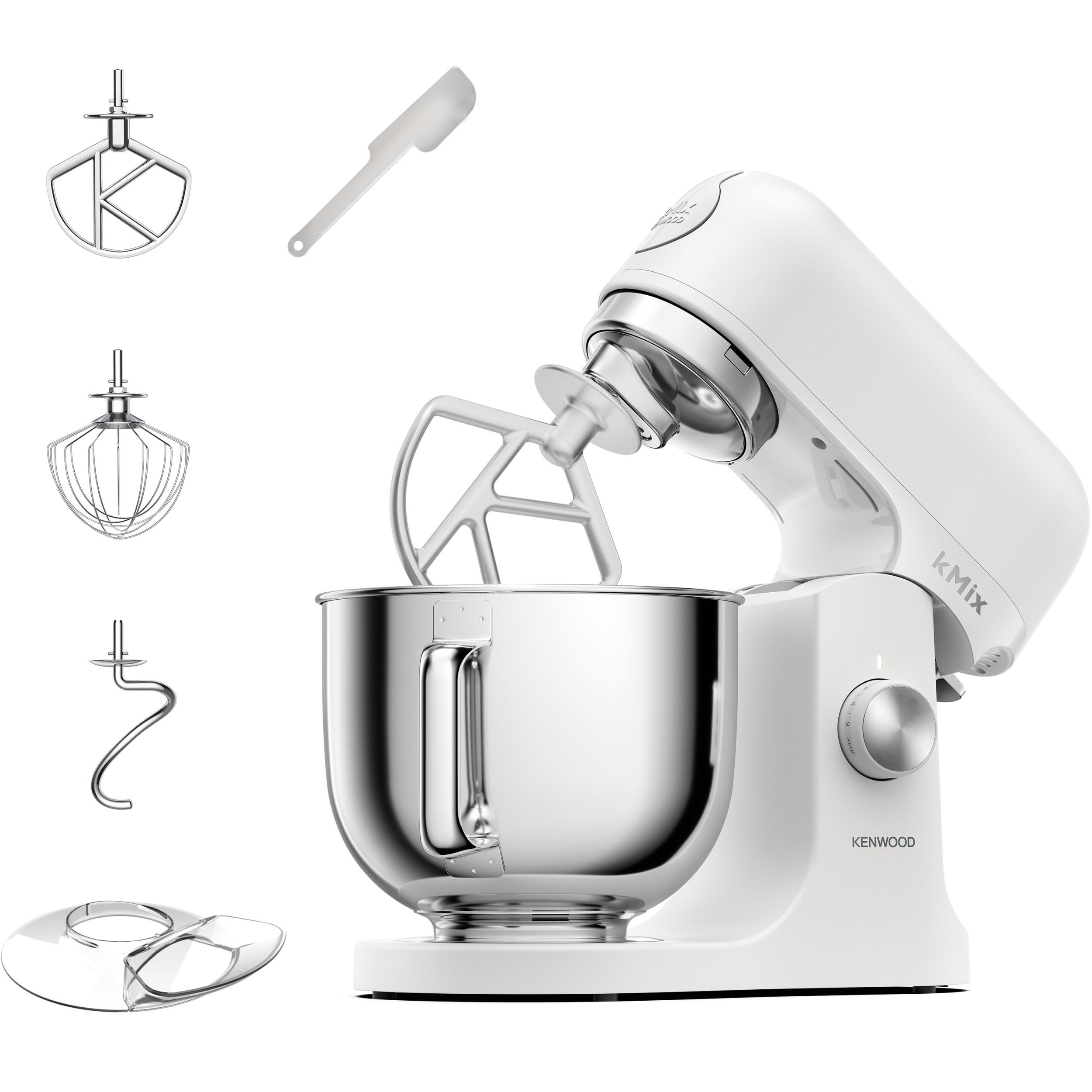 (EOL) Robot de bucătărie planetar KENWOOD kMix KMX750AAW - 0W20011426, 1000W (6 trepte și Turbo), Vas inox 5l, Set patiserie (tel 16 brațe, cârlig, paletă K), Soft Start, G9.26kg, All White