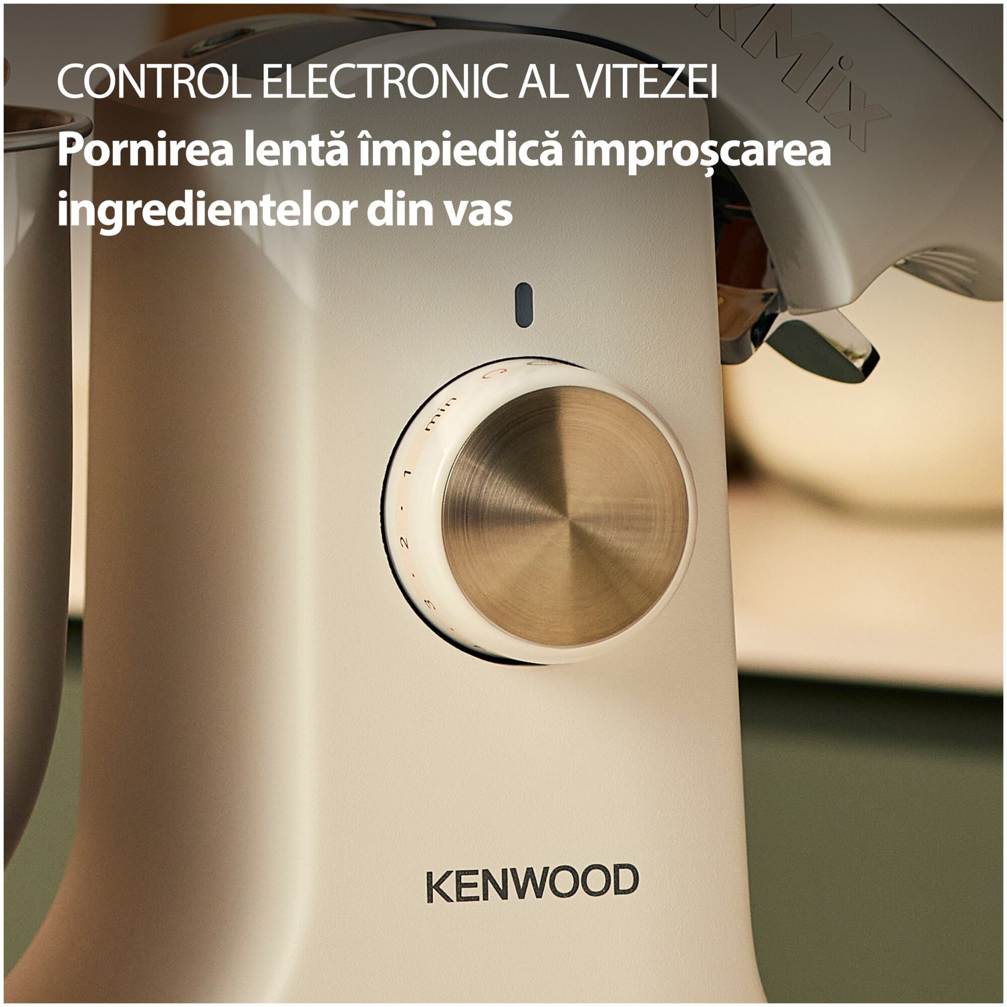 Robot de bucătărie planetar KENWOOD kMix KMX751ACR - 0W20011522, 1000W (6 trepte și Turbo), Vas inox 5l, Corp aluminiu turnat, Set patiserie (tel 16 brațe, cârlig, paletă K), G8.86kg, Calm Cream