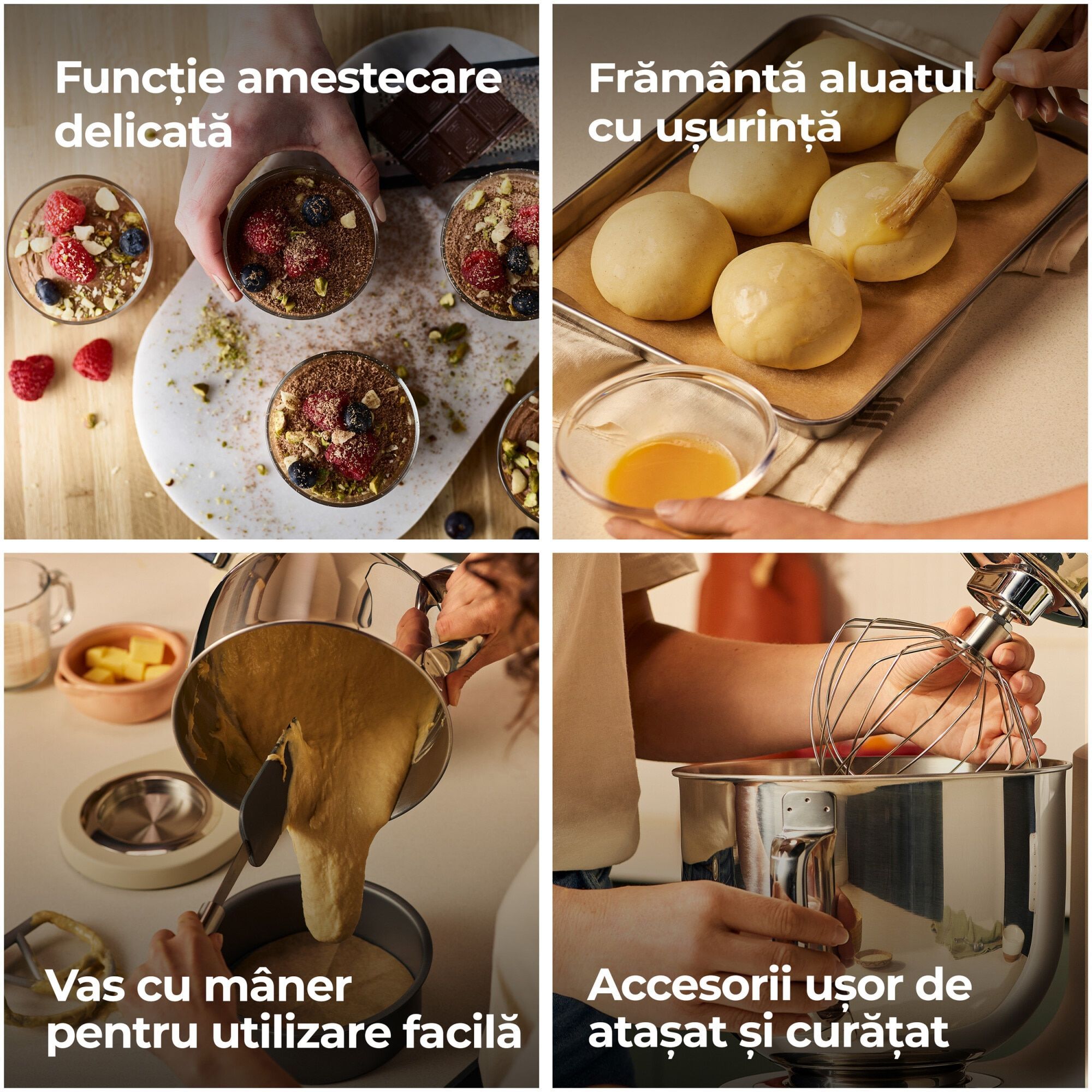 Să începeți este la fel de ușor ca număratul până la trei cu ajutorul unui tel, un cârlig pentru aluat și legendarei palete K-Beater. Indiferent de meniu, creați gustări delicioase în cel mai scurt timp.