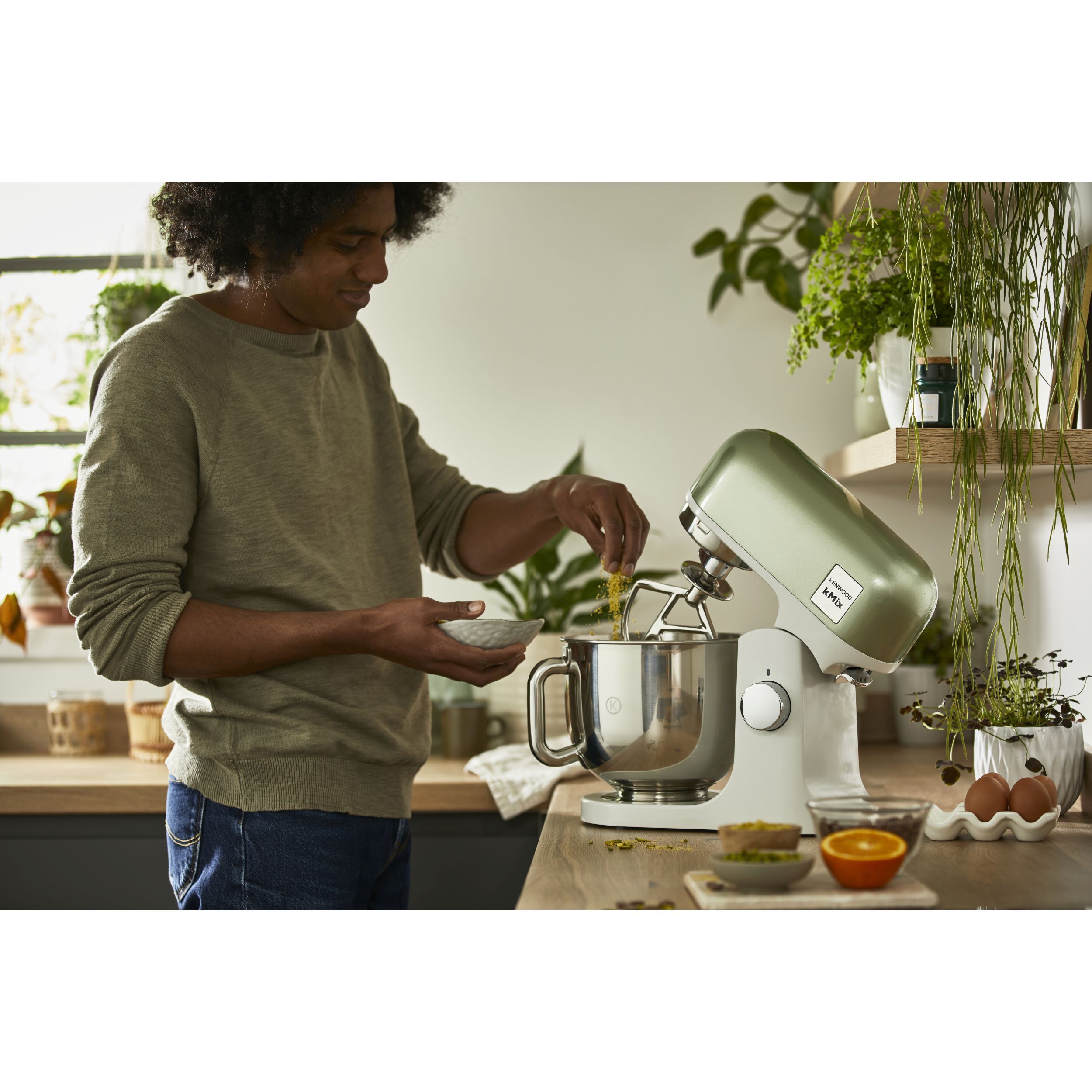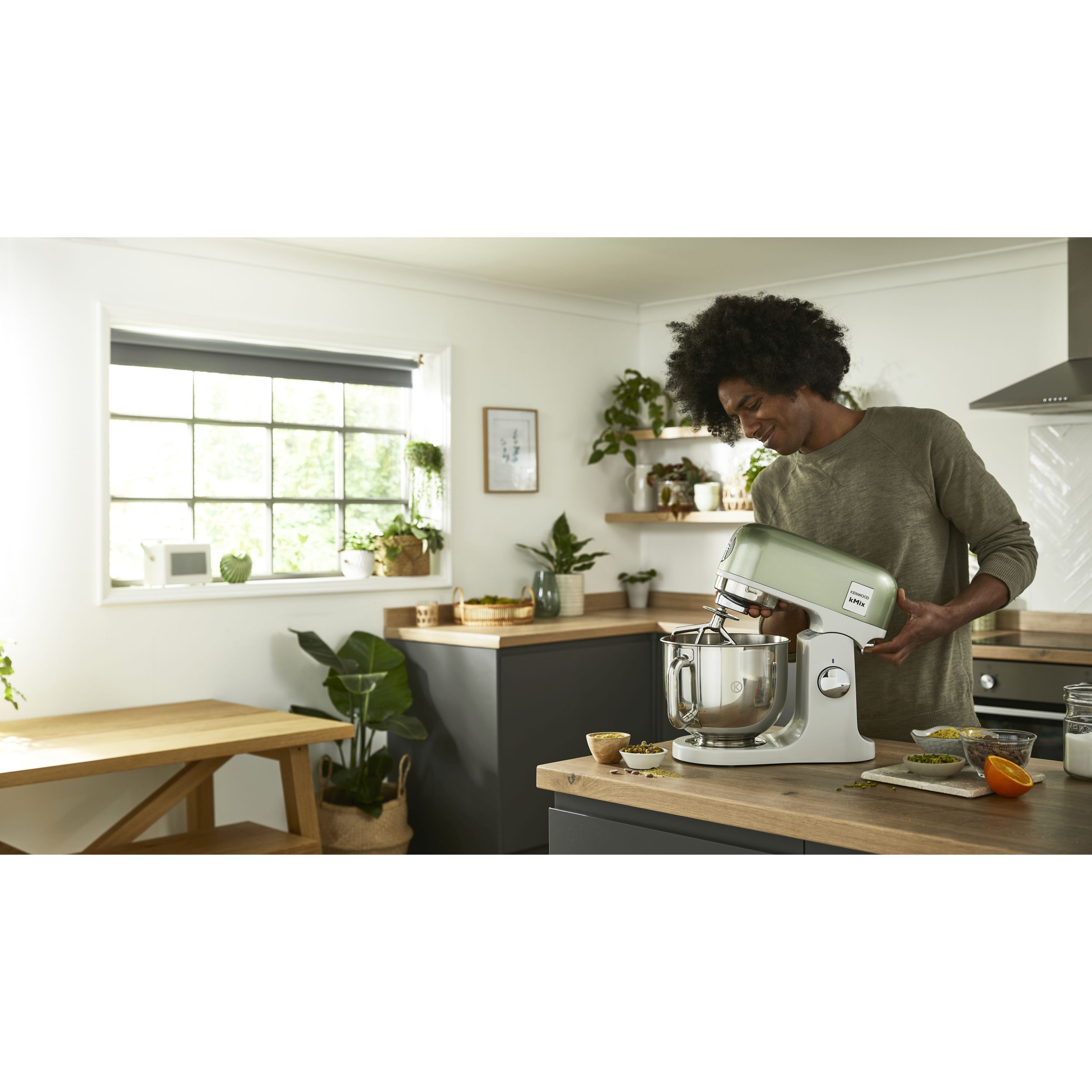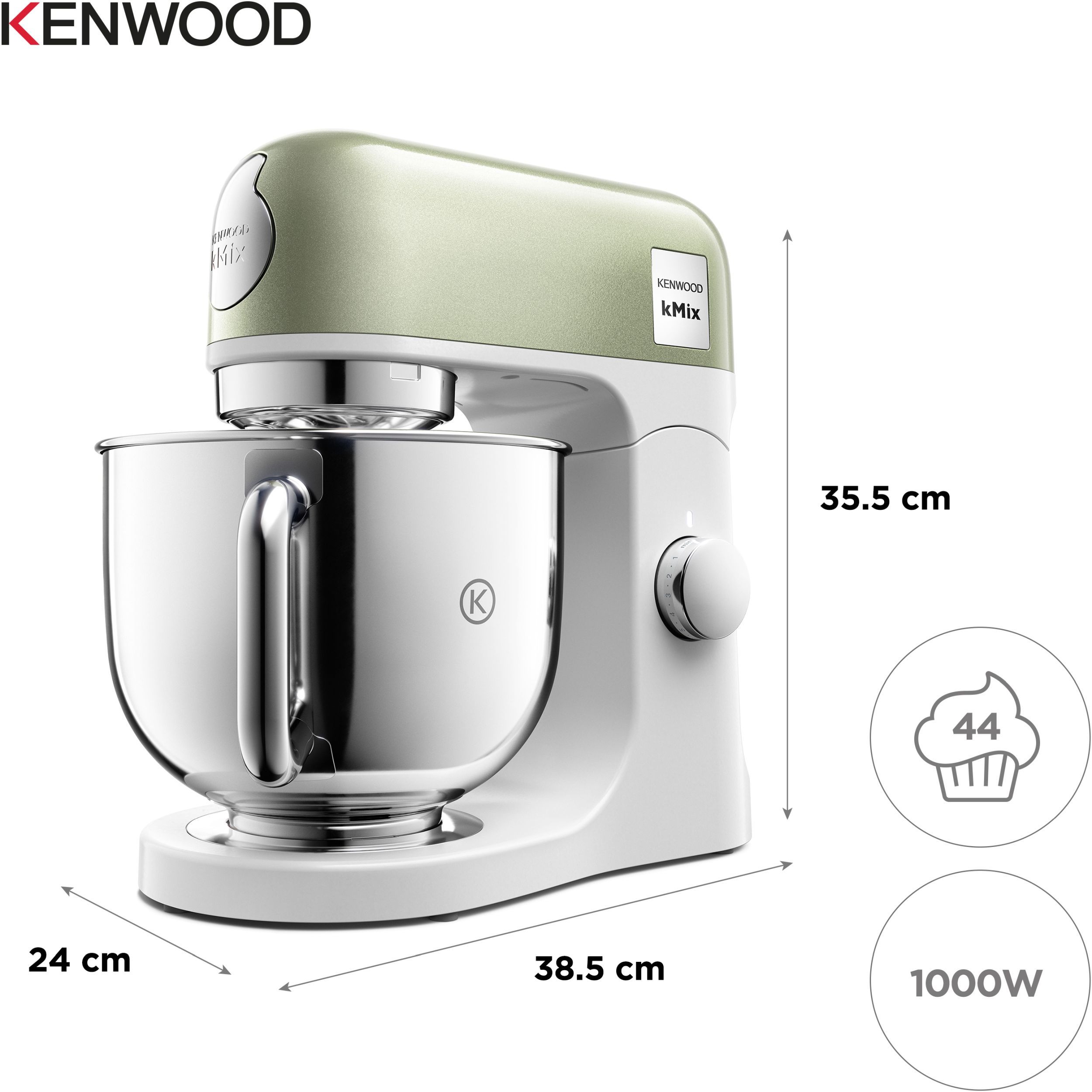 Robot de bucătărie planetar KENWOOD kMix Special Edition KMX760AGR - 0W20011442, 1000W (6 trepte și Turbo), Vas inox 5l, Set patiserie (tel 16 brațe, cârlig, paletă K), G9.3kg, Sage Green
