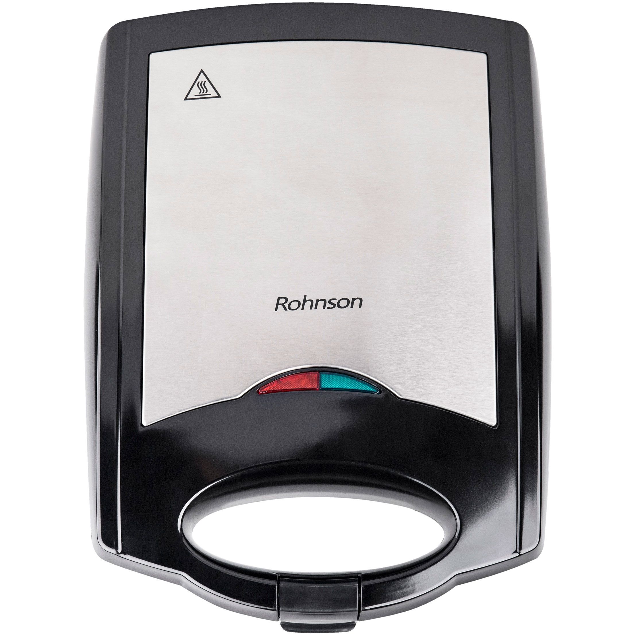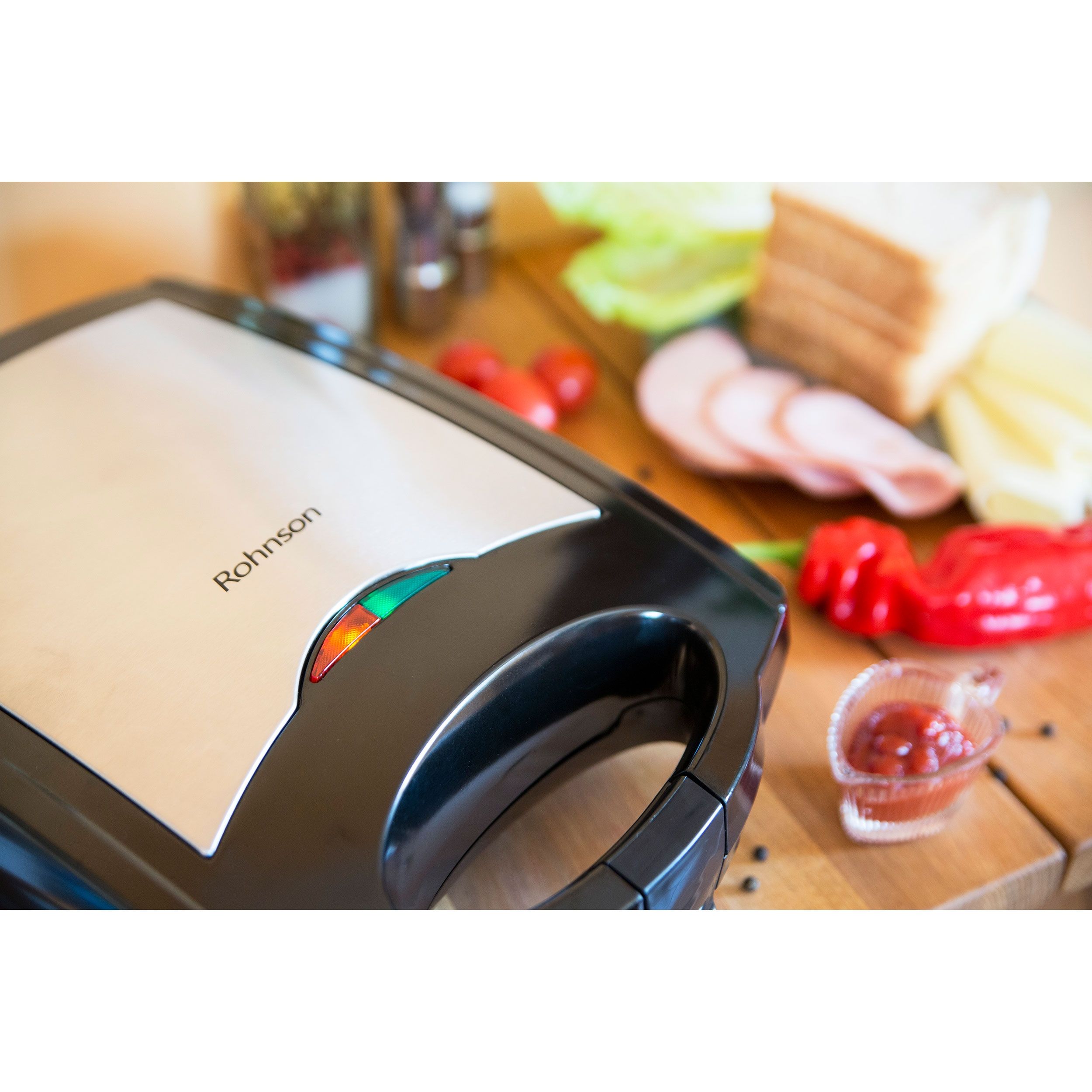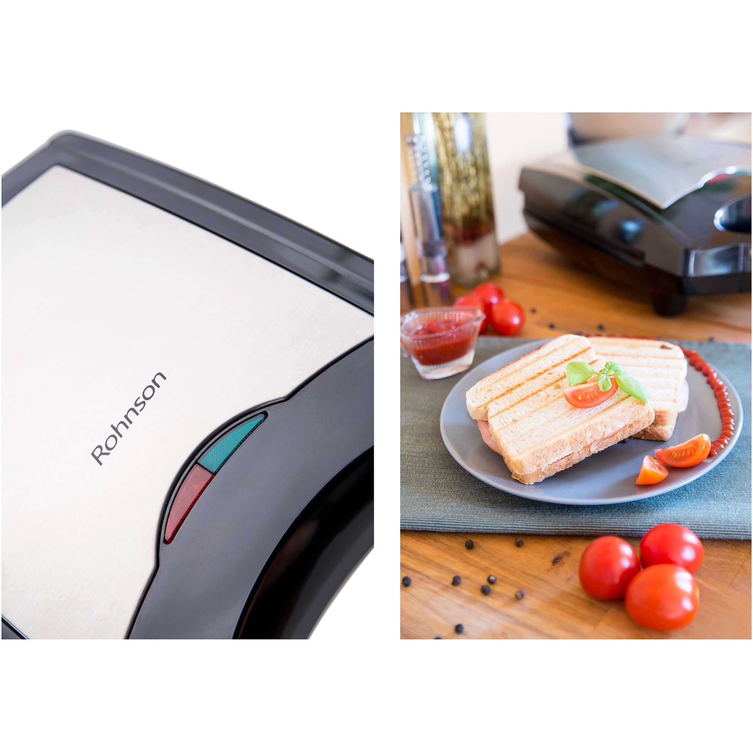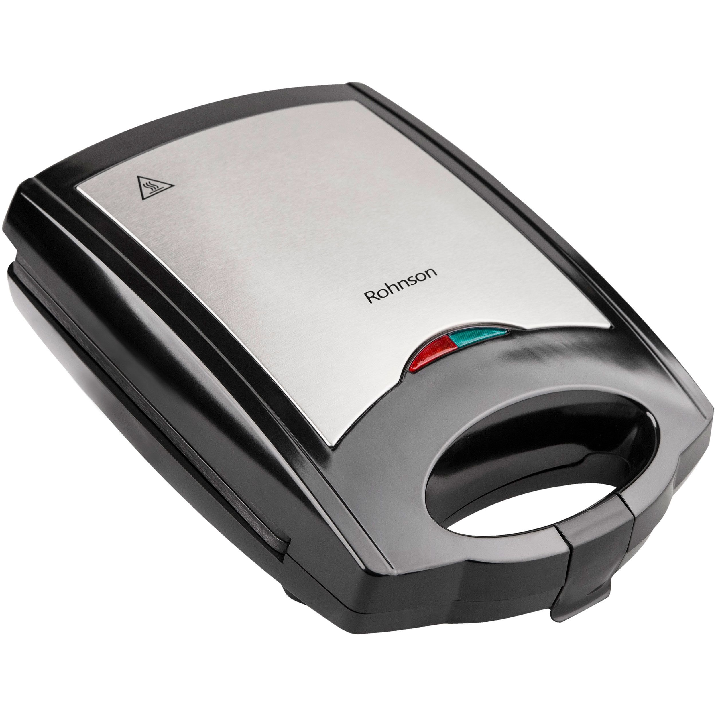 Aparat pentru sandvişuri Rohnson R2108, Putere 1000W, Plăci antiaderente, Suprafață 23.6x22.5cm, Pentru 4 felii