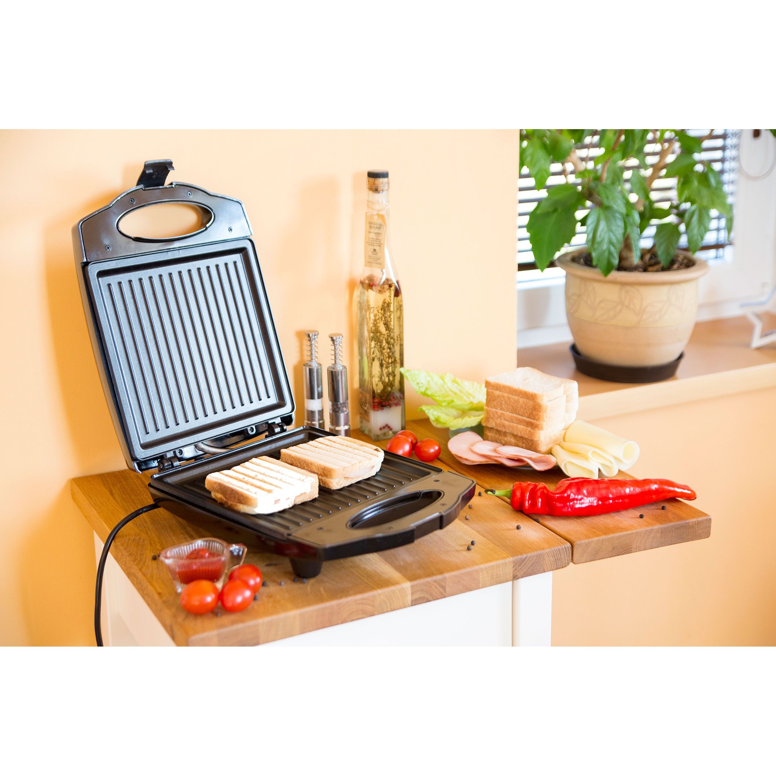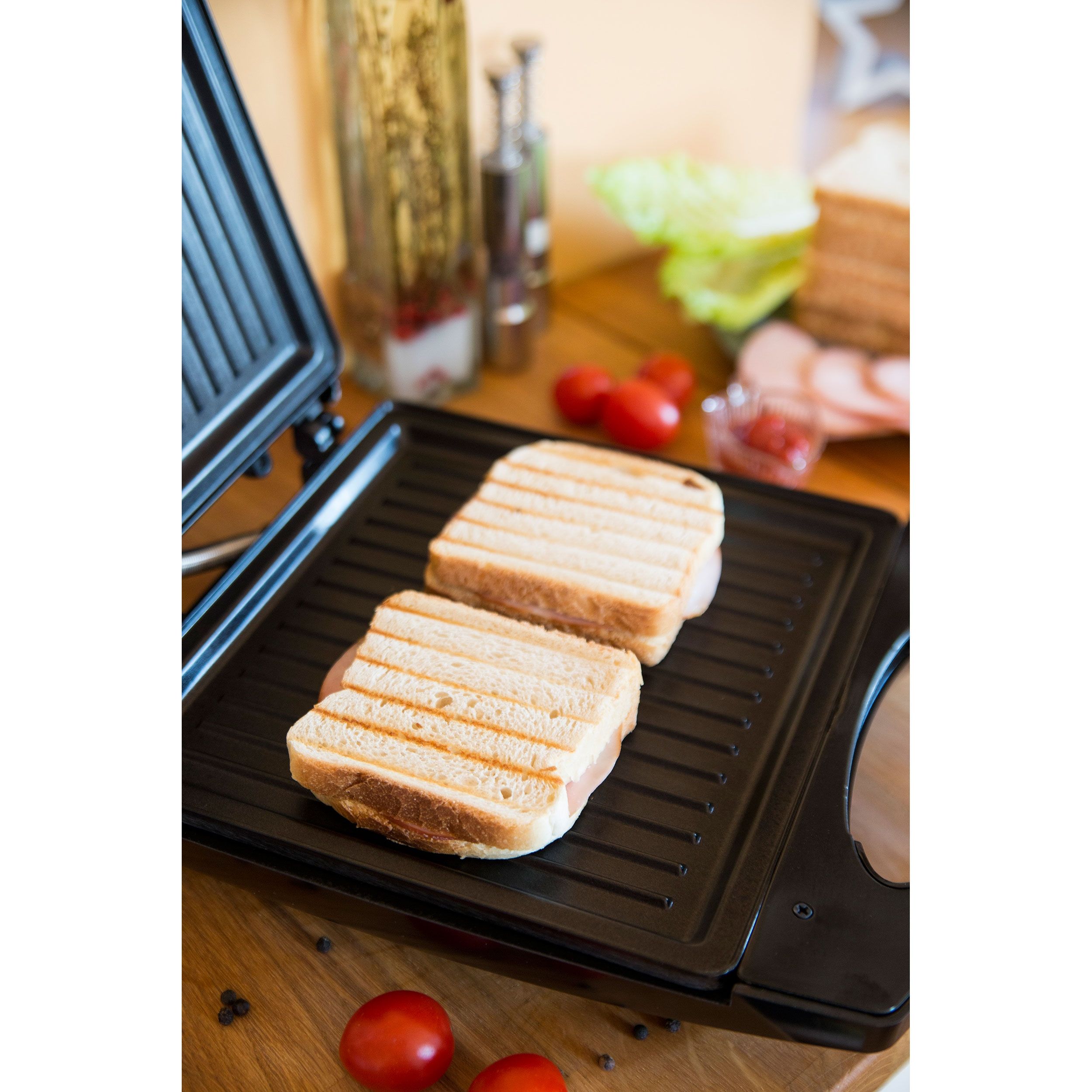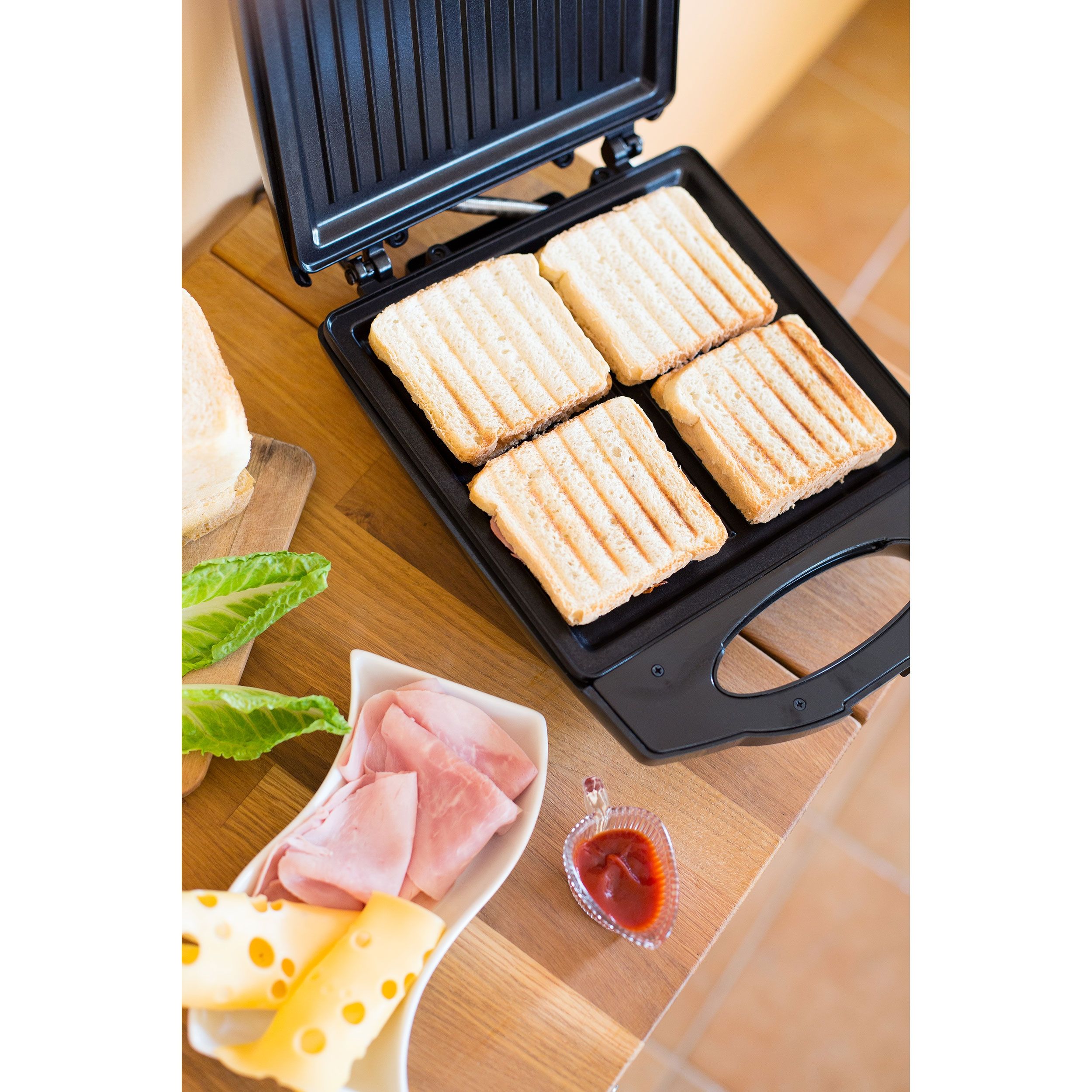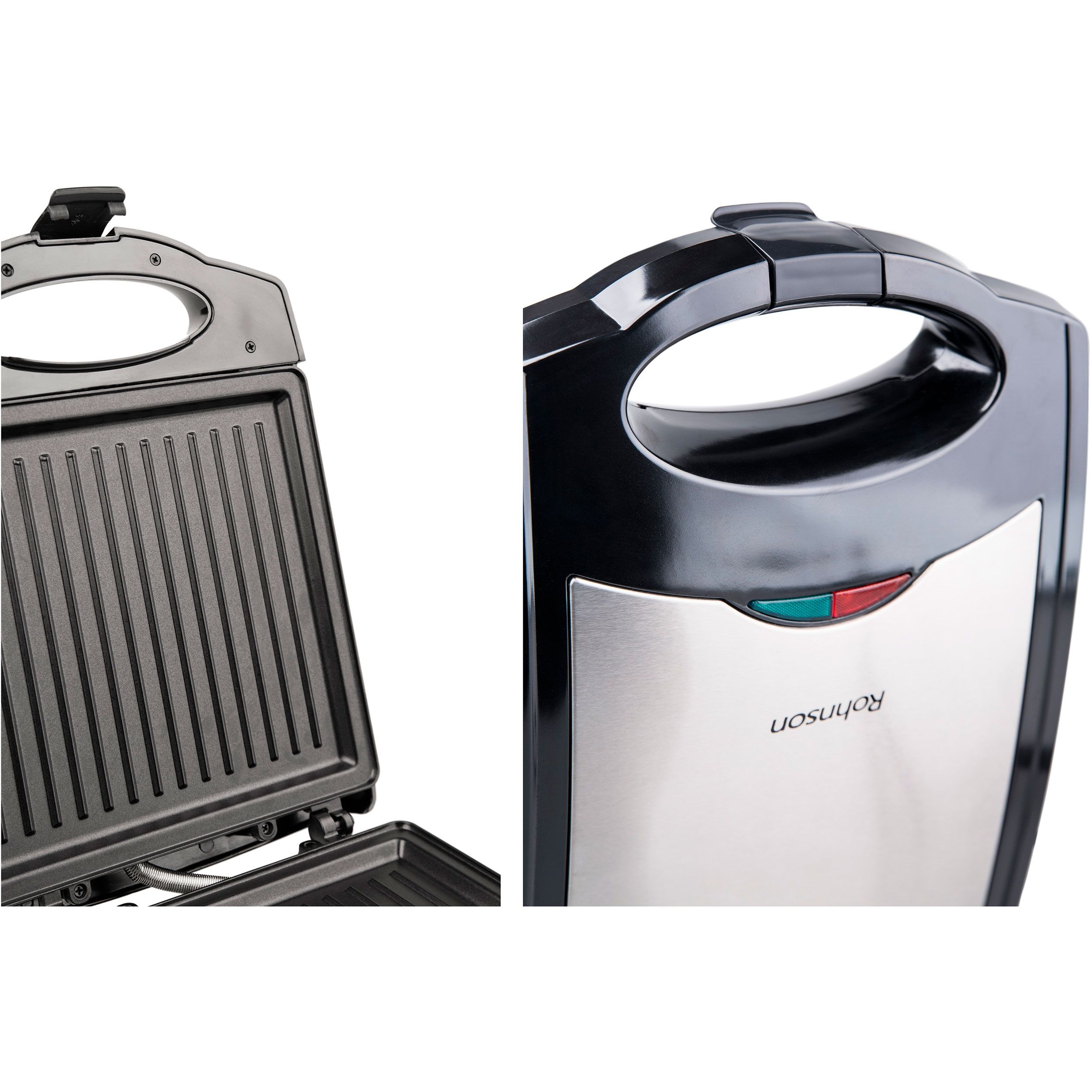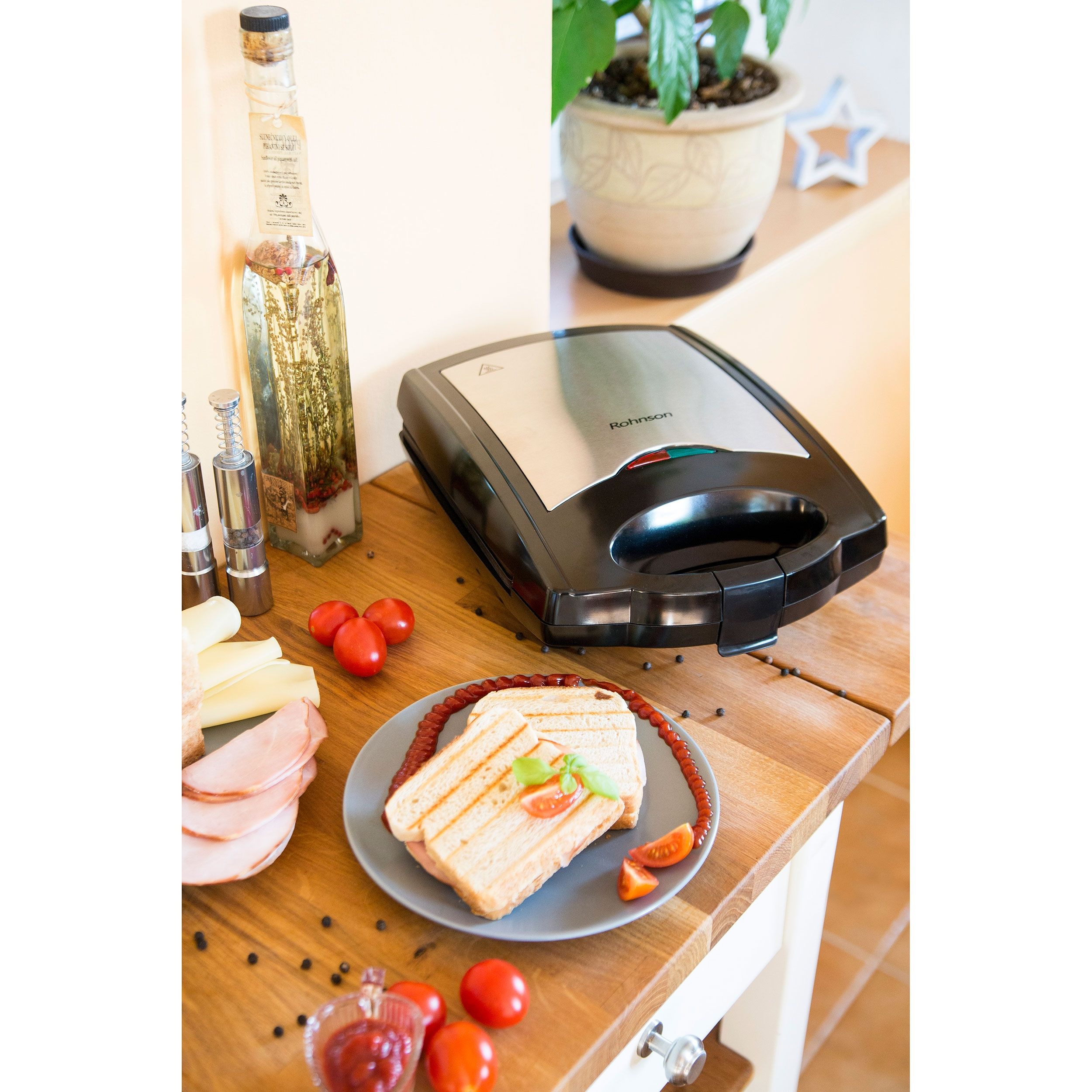Aparat pentru sandvişuri Rohnson R2108, Putere 1000W, Plăci antiaderente, Suprafață 23.6x22.5cm, Pentru 4 felii