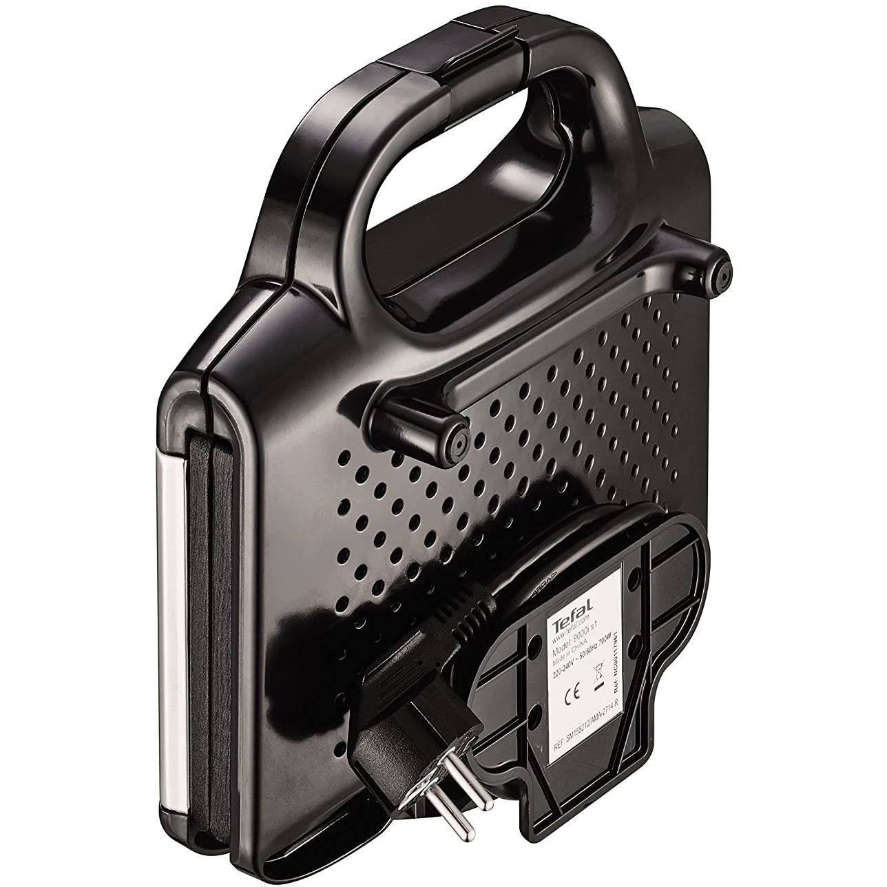 Datorită plăcilor sale cu înveliş antiaderent, curăţarea este de acum mult mai simplă. Depozitarea pe verticală a aparatului şi depozitarea cablului transformă aparatul într-un produs perfect: mic şi practic, devine uşor de păstrat şi de depozitat în bucătăria ta.