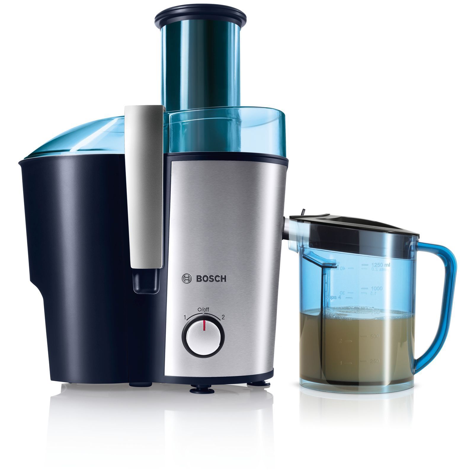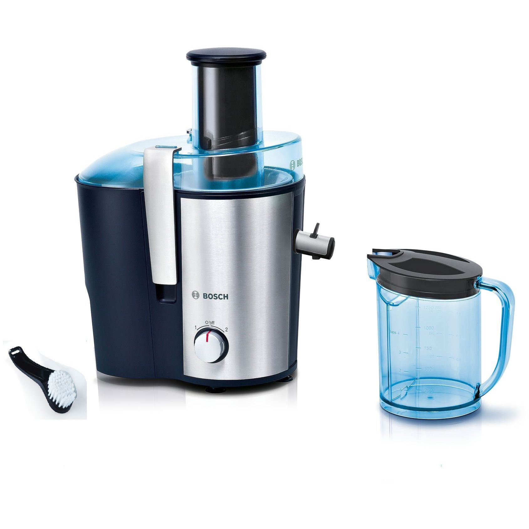 Accesorii incluse: recipient pentru suc cu o capacitate de 1,25 litri, cu separator de spumă, perie inclusă pentru curăţarea uşoară a sitei.
