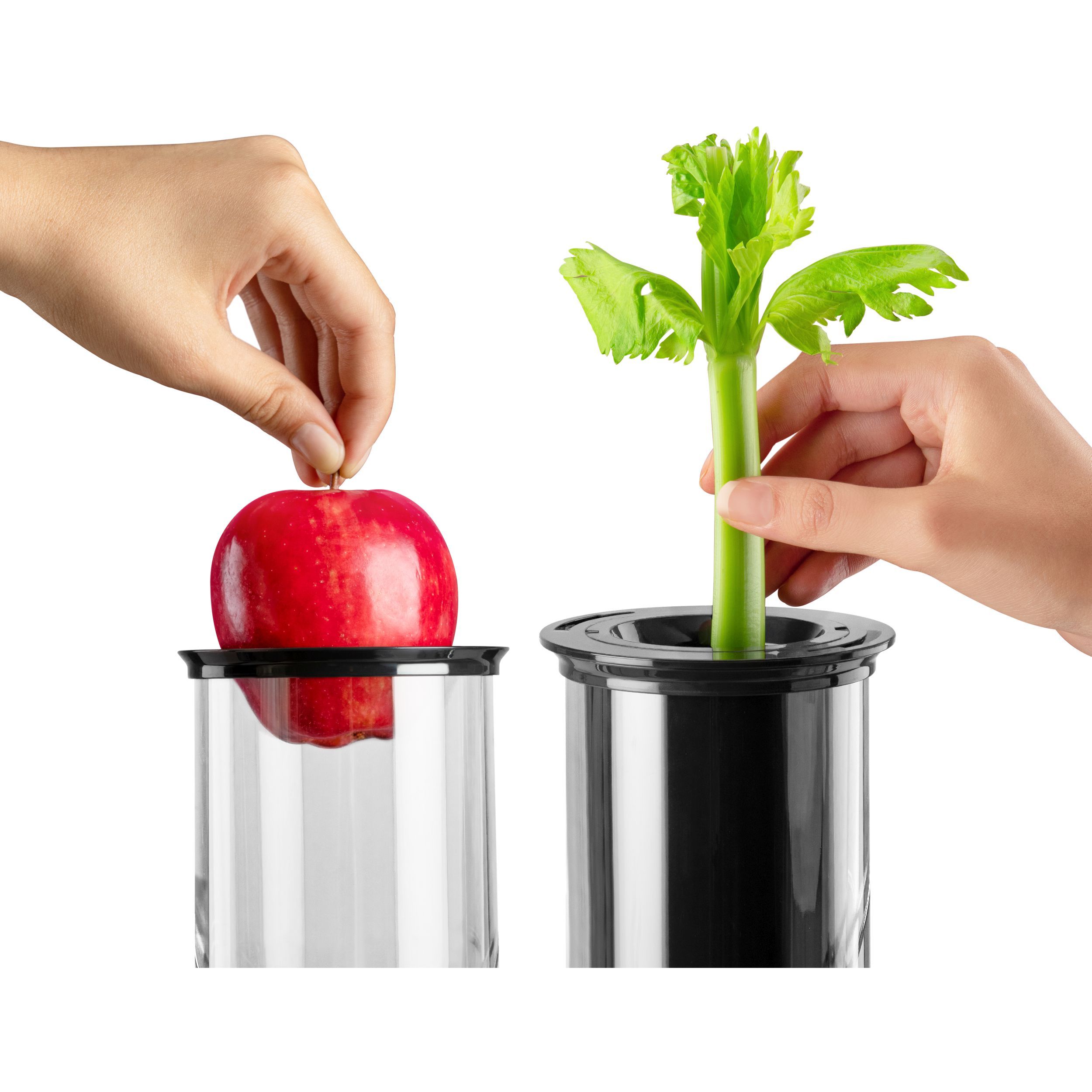 Trei viteze de precizie vă ajută să profitați la maximum de fiecare ingredient. Alegeți viteză mică pentru fructele de pădure moi și kiwi, viteză mare pentru ananas și castraveți, sau viteză Turbo pentru morcovi și sfeclă.