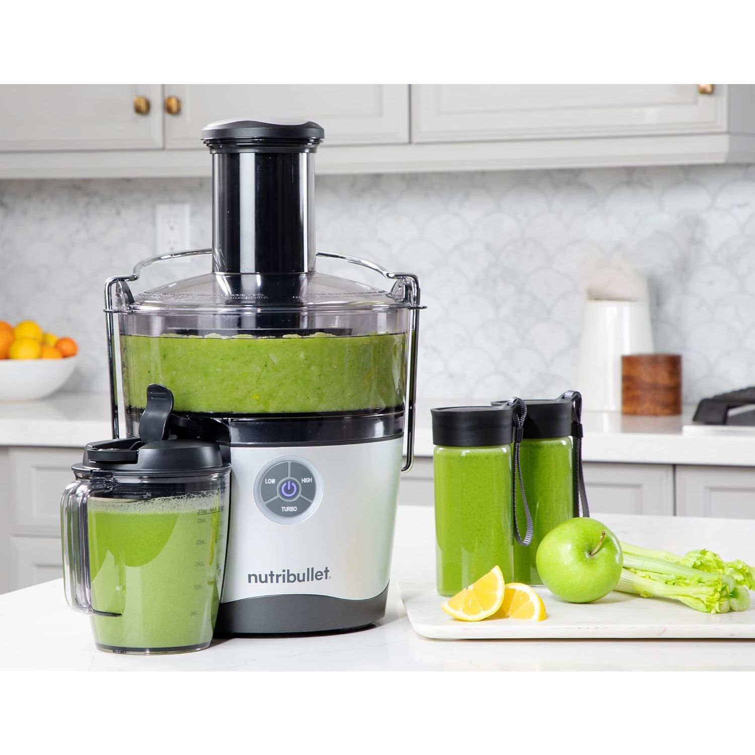 Cine a spus că pregătirea sucului natural necesită multă muncă? Cu două viteze pentru a se adapta oricărui tip de ingredient, o gură largă pentru a procesa fructe și legume întregi și un set de piese ușor de curățat, care pot fi spălate în mașina de spălat vase, acest storcător nutribullet Juicer Pro de 1000W este proiectat pentru a maximiza eficiența și confortul. Accesoriile incluse vă permit să colectați, să turnați și să depozitați sucurile proaspete. Include: