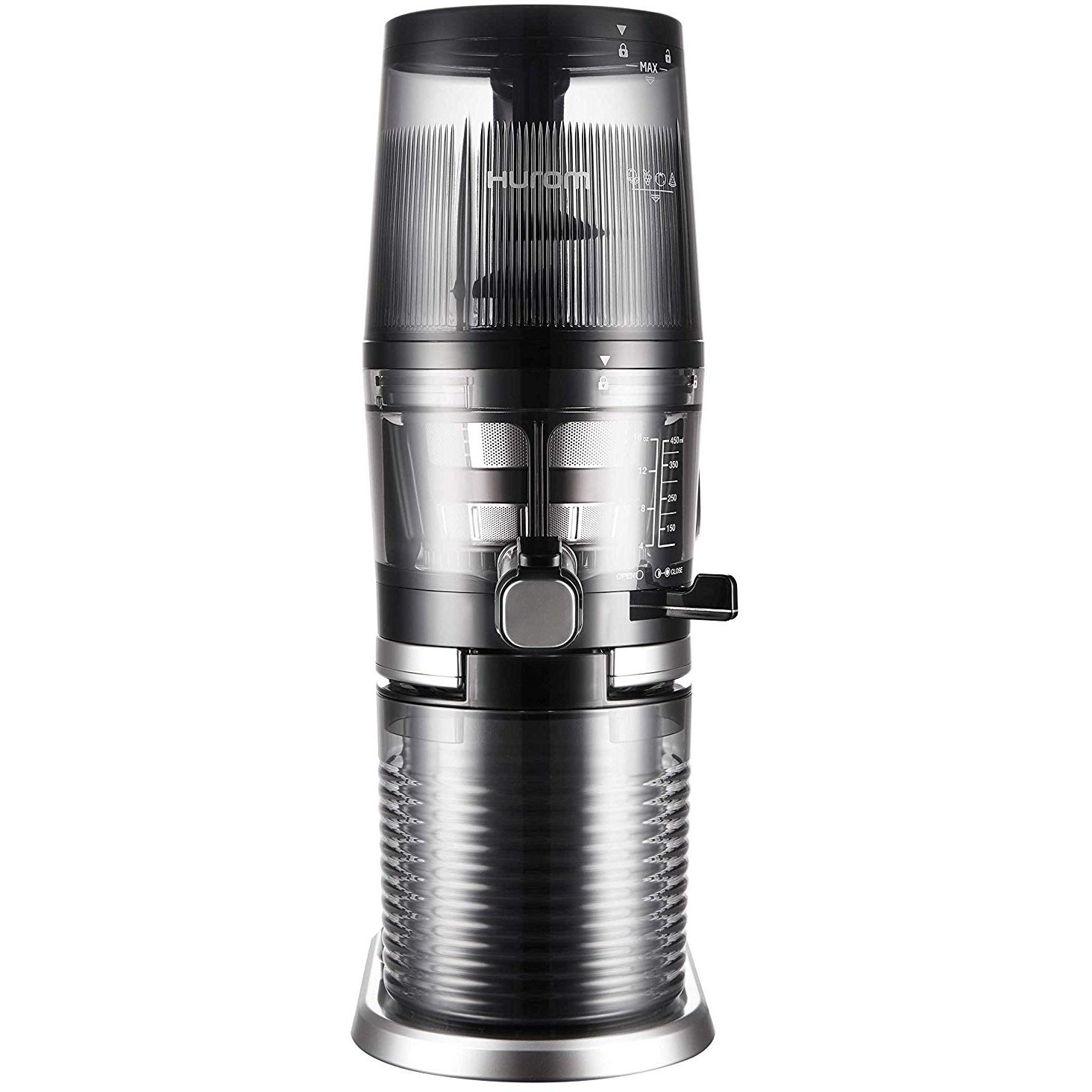 Buncăr cu autoalimentare: Lama automată din interiorul buncărului cu auto-alimentare va tăia și împinge în jos ingredientele pentru dvs. Când faceți lapte de nuci - sau dacă preferați să introduceți ingrediente de unul singur - utilizați buncărul Alpha obișnuit pentru cea mai bună experiență de suc.Cameră înclinată și ieșire pentru suc: Inclinarea de 3 grade în interiorul camerei și ieșirea sucului vă va permite să turnați mai ușor sucul și să lăsați mai puțină mizerie în storcător.