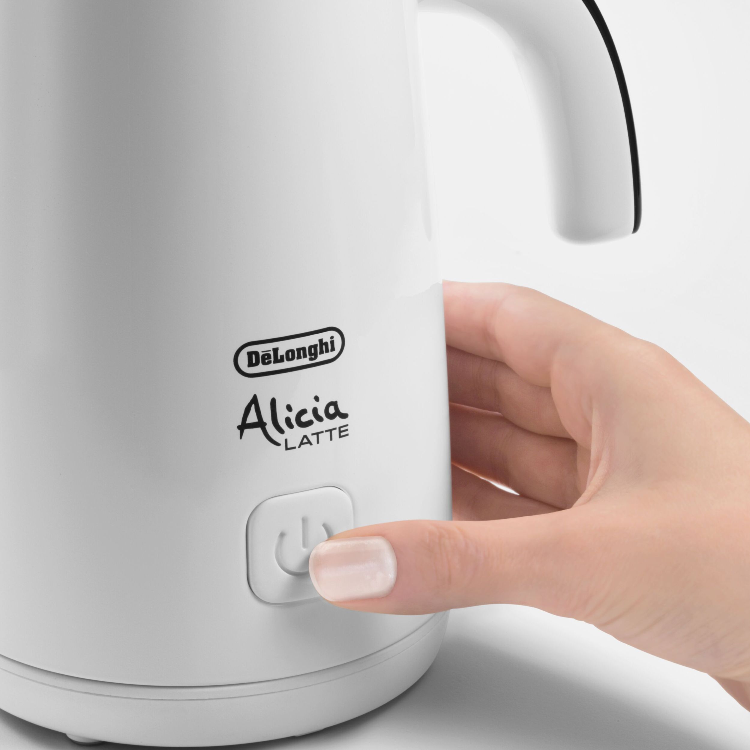 Aparat pentru spumarea laptelui De'Longhi Alicia Latte EMF2.W - 0132043000, 420~500W, Spumă caldă sau rece 140ml, Cald nespumat 250ml, Bază 360°, Capac transparent, Cablu 75cm, Glossy White