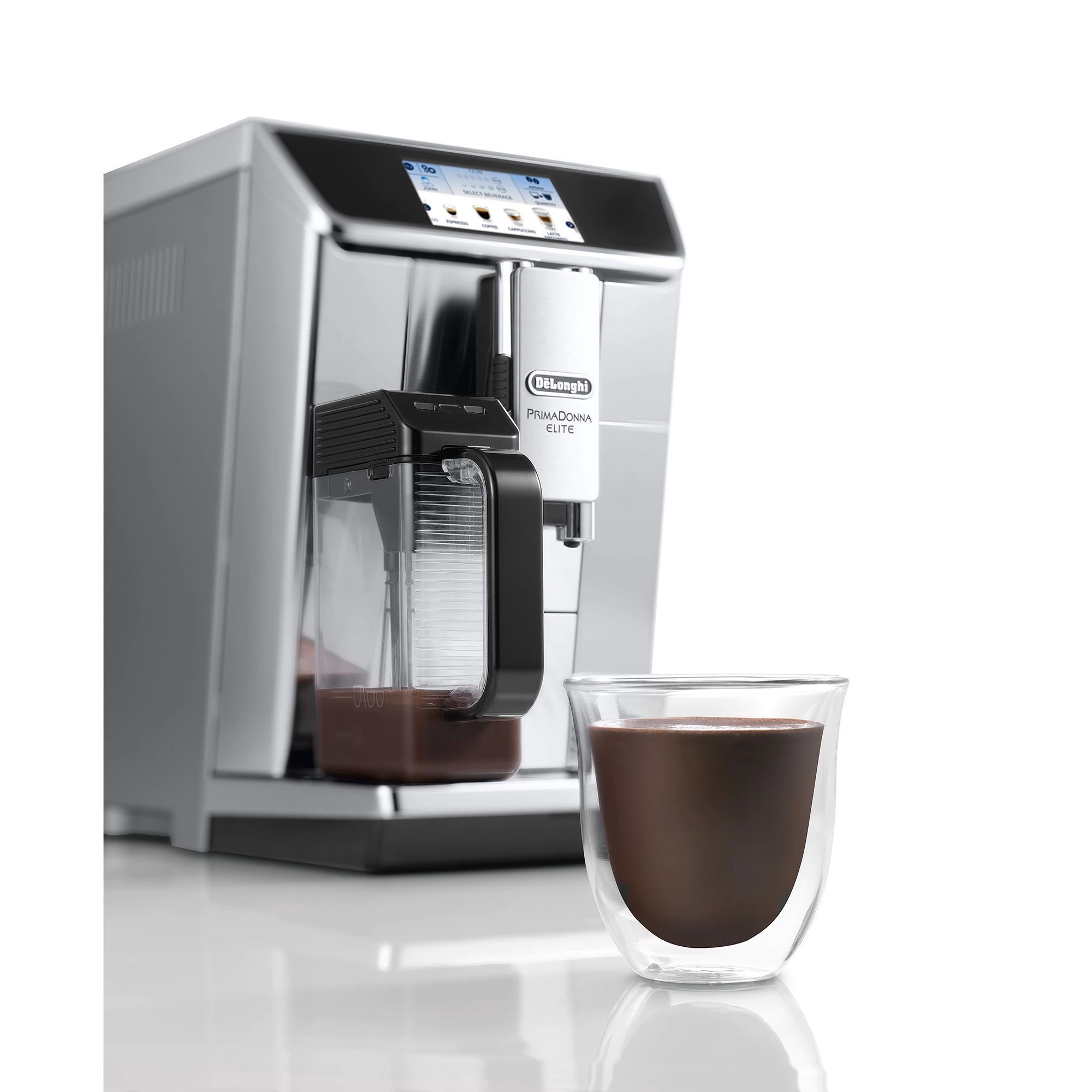 - Cană specială pentru spumarea laptelui, pentru prepararea ciocolatei calde, a cafelei cu gheață, a bazei de Espresso Martini și a spumei reci de lapte.