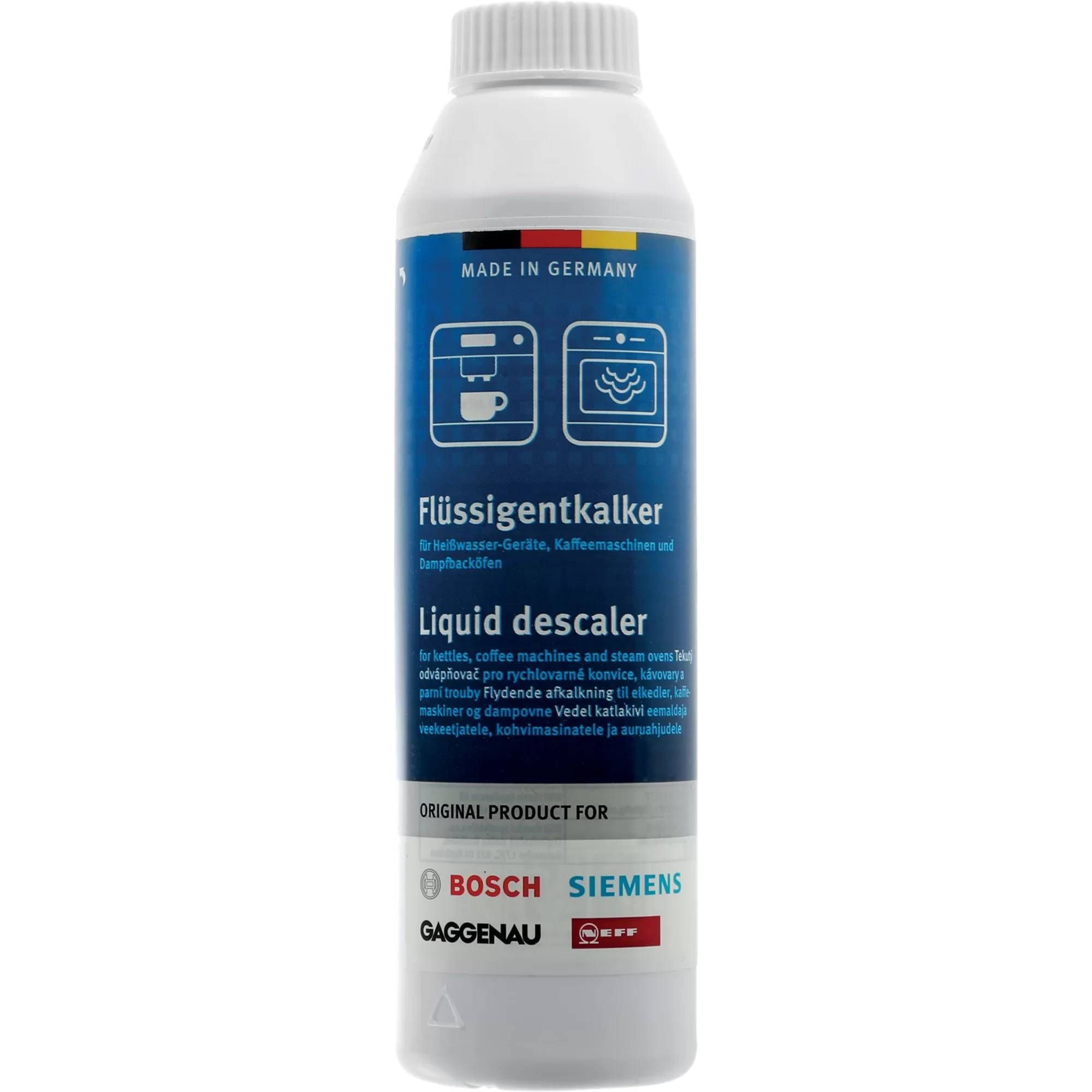 Instrucțiuni de folosire: Consultați manualul de utilizare sau programul de decalcifiere al aparatului atunci când efectuați operațiunea. Se diluează conținutul flaconului cu 250 ml de apă. Pentru fierbătoare de apă și aparate de cafea dacă este necesar, soluția obținută se încălzește. Nu fierbeți! Clătiți de trei ori cu apă proaspătă după finalizarea operațiunii.