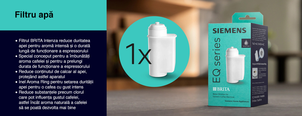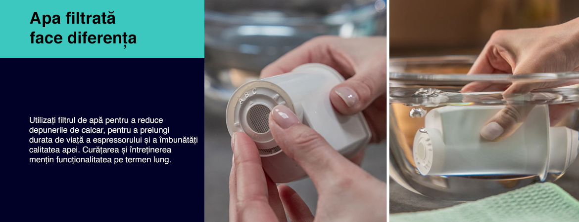 • Filtrul BRITA Intenza reduce duritatea apei pentru aromă intensă și o durată lungă de funcționare a espressorului