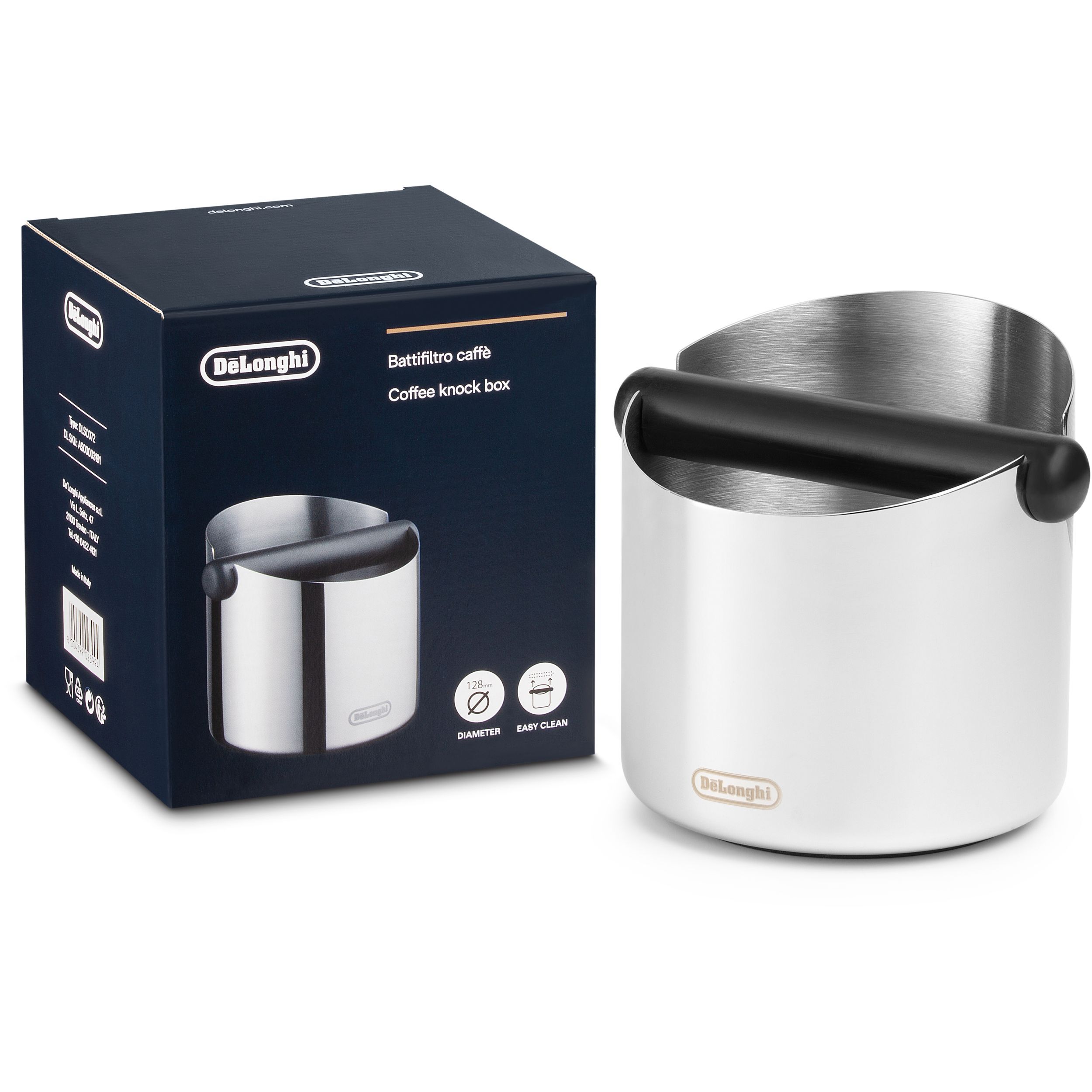 Eliminați cu ușurință cafeaua măcinată folosită cu ajutorul knock box-ului pentru zaț De'Longhi.