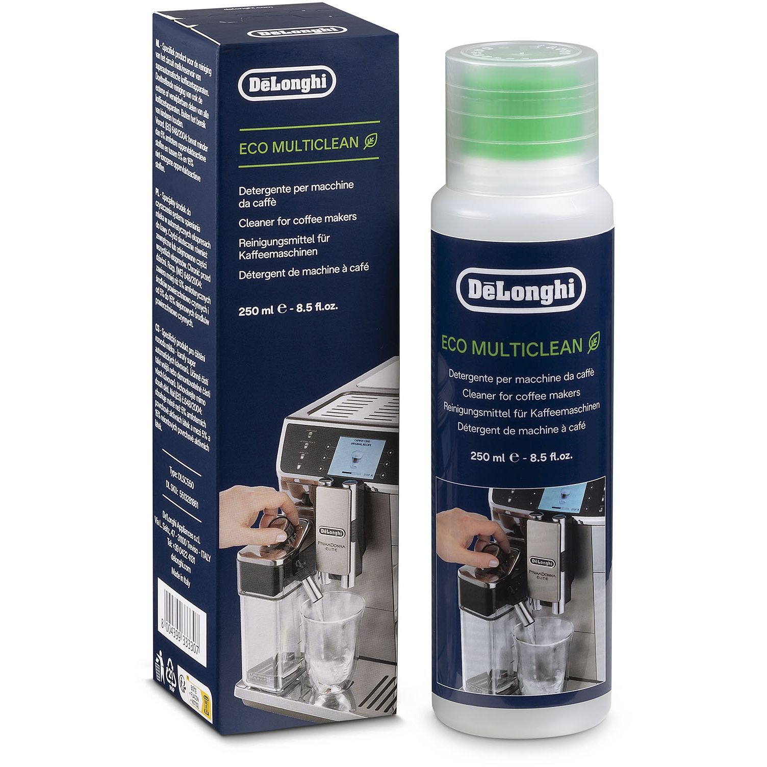 De'Longhi Eco MultiClean este o soluție de curățare eficientă și ecologică pentru toate espressoarele. Este concepută pentru a curăța în profunzime circuitele de lapte, inclusiv carafa și duza de abur, pentru a îndepărta proteinele și grăsimile din lapte. În plus, este adecvată pentru curățarea reziduurilor de lapte de pe toate componentele detașabile ale espressorului care pot fi clătite.