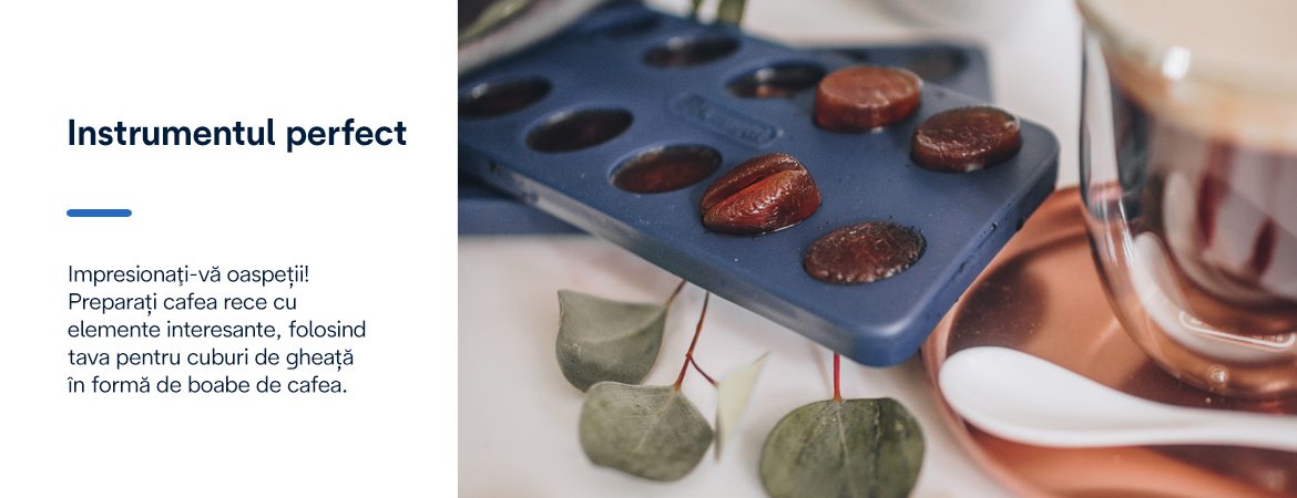 Impresionaţi-vă oaspeții! Preparați cafea rece cu elemente interesante, folosind tava pentru cuburi de gheață în formă de boabe de cafea.