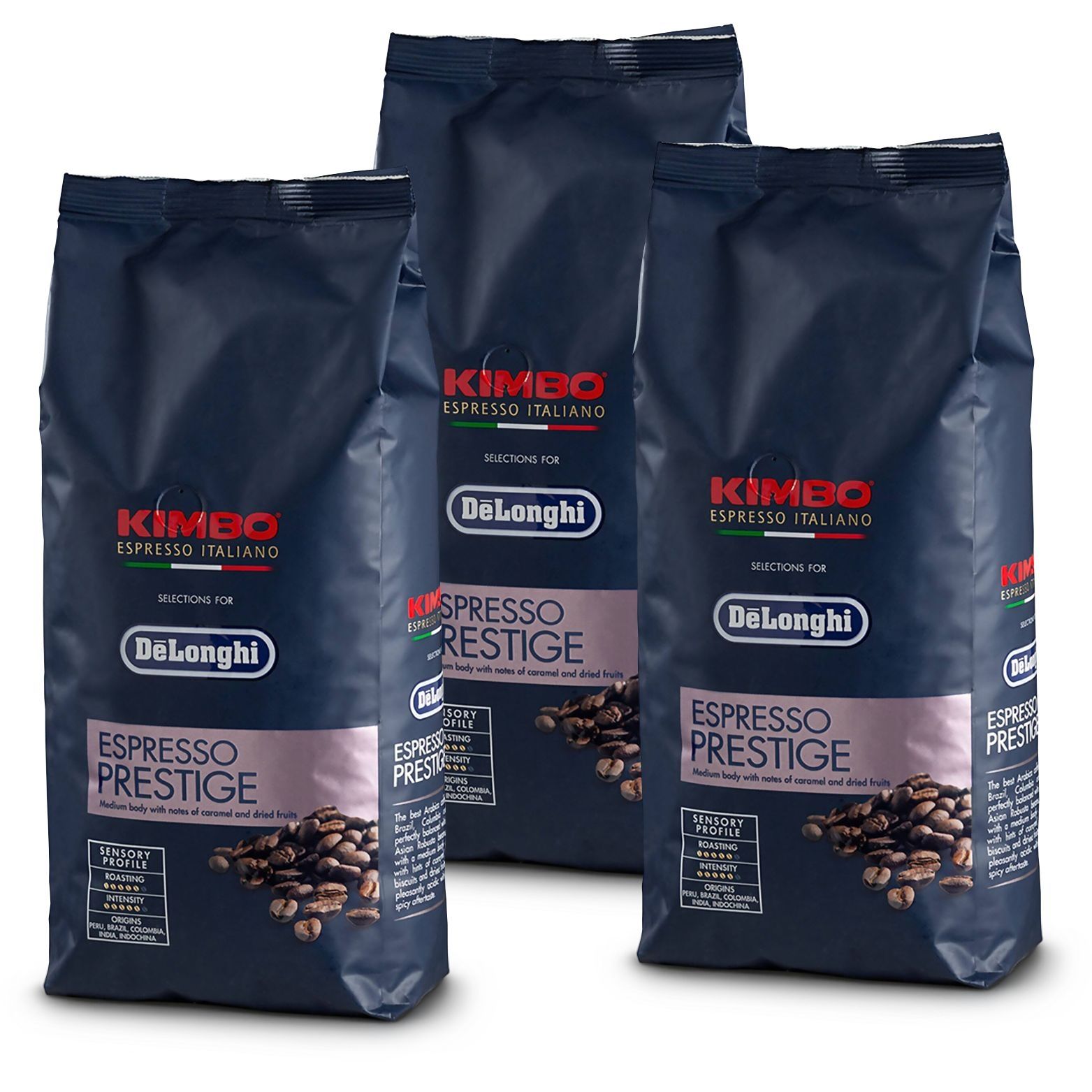 Pachet 3 pungi cafea boabe DeLonghi Kimbo Espresso Prestige DLSC615, Total 3kg