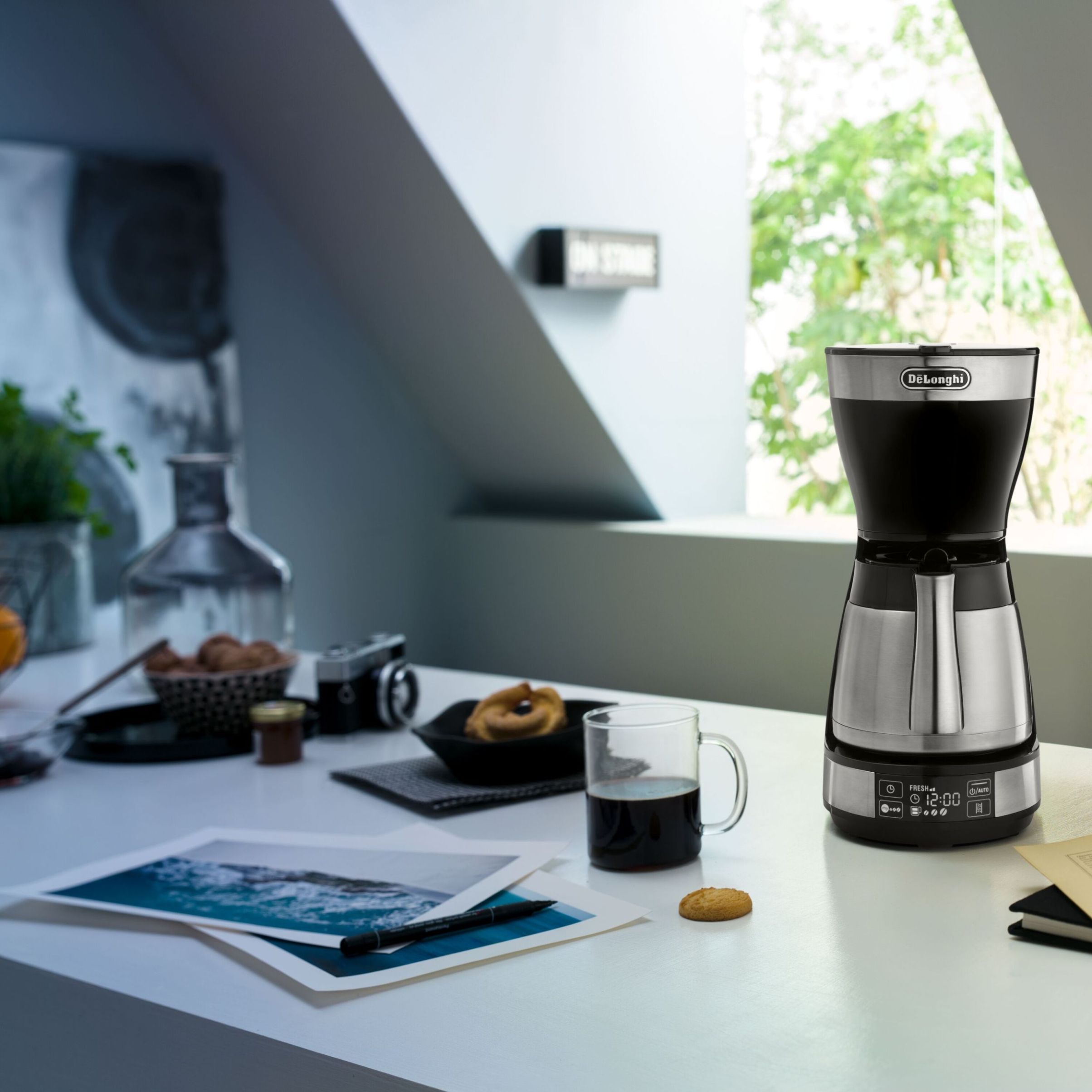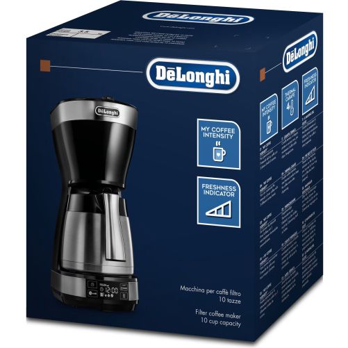 Cafetieră DeLonghi ICM16731 - 0132301134, 1200W, Carafă termică din oțel inoxidabil, Rezervor 1.25l, 10 cești, Ecran LCD, Timer, Selector Aroma, Sistem anti-picurare, Oprire automată, Inox