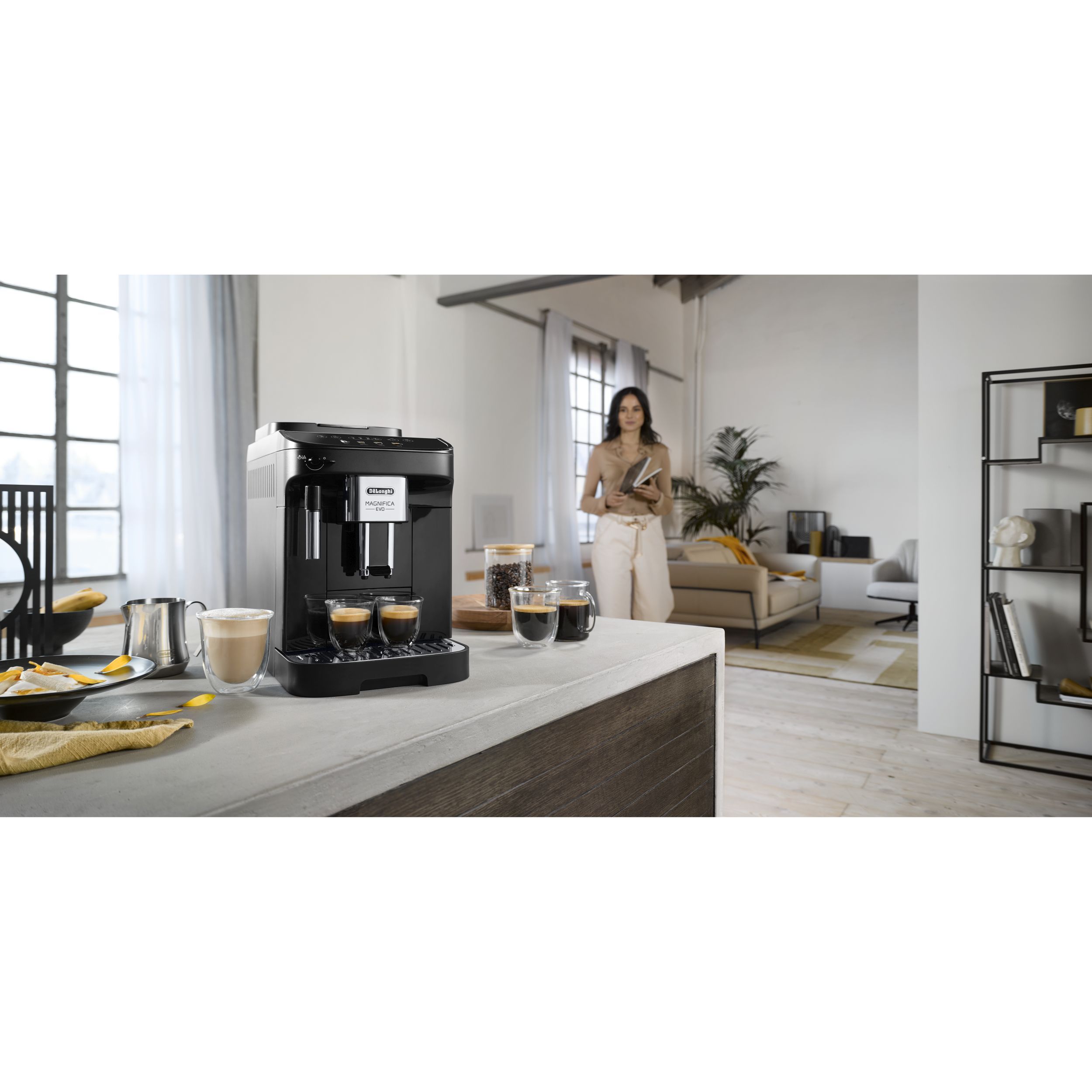Bucurați-vă de o experiență supremă a cafelei în confortul propriei locuințe cu De'Longhi Magnifica Evo. Preparați espresso-ul perfect din boabe de cafea proaspăt măcinate, una dintre cele 3 rețete disponibile cu o singură atingere. Dispune de un afișaj tactil intuitiv, cu pictograme color pentru fiecare rețetă. Finisajul său elegant, negru este completarea perfectă a oricărei bucătării moderne.