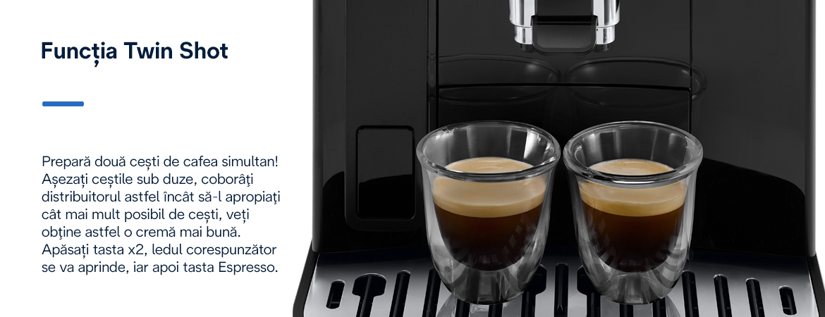 - Panoul de control inteligent cu pictograme tactile colorate, inclusiv 5 băuturi cu o singură atingere;